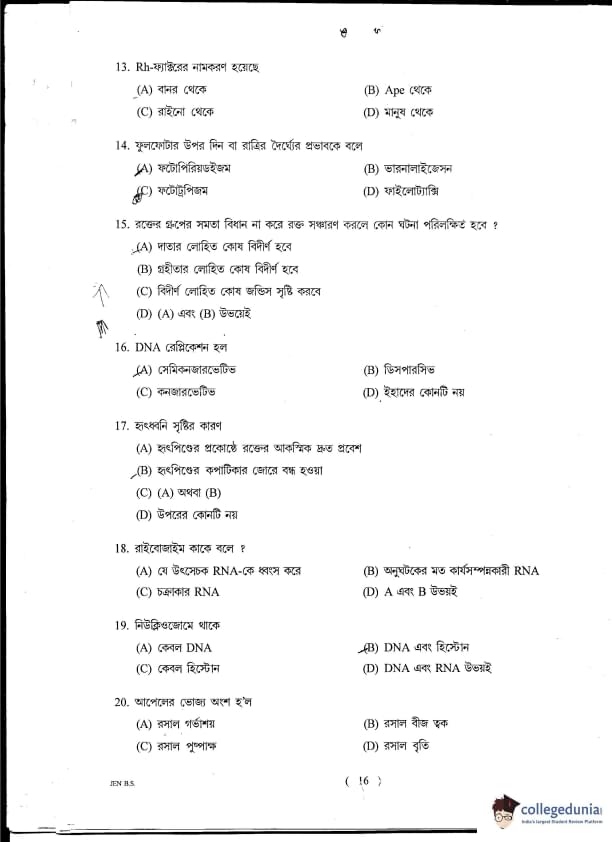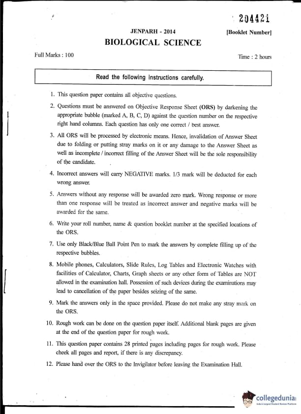 | WBJEE JENPAS UG 2014 Biological Sciences Question Paper PDF | WBJEE JENPAS UG 2014 Biological Sciences Answer Key PDF |