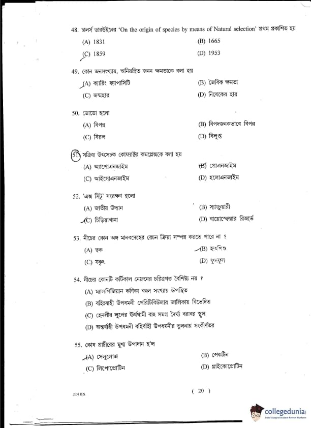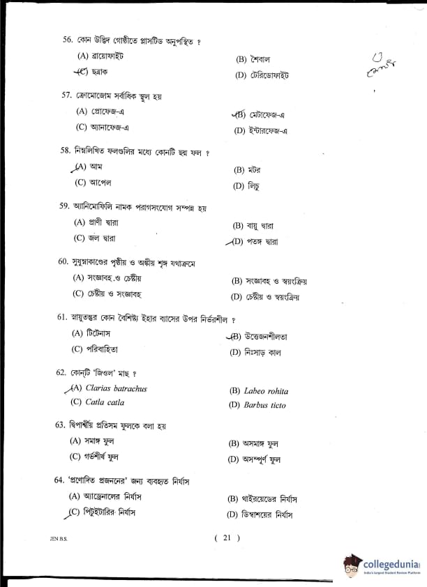 WBJEE JENPAS UG 2014 Biological Sciences Question paper with answer key pdf is available for download. The exam was successfully organized by West Bengal Joint Entrance Examination Board (WBJEEB). The question paper comprised a total of 100 questions.