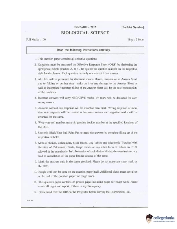 | WBJEE JENPAS UG 2015 Biological Sciences Question Paper PDF | WBJEE JENPAS UG 2015 Biological Sciences Answer Key PDF |