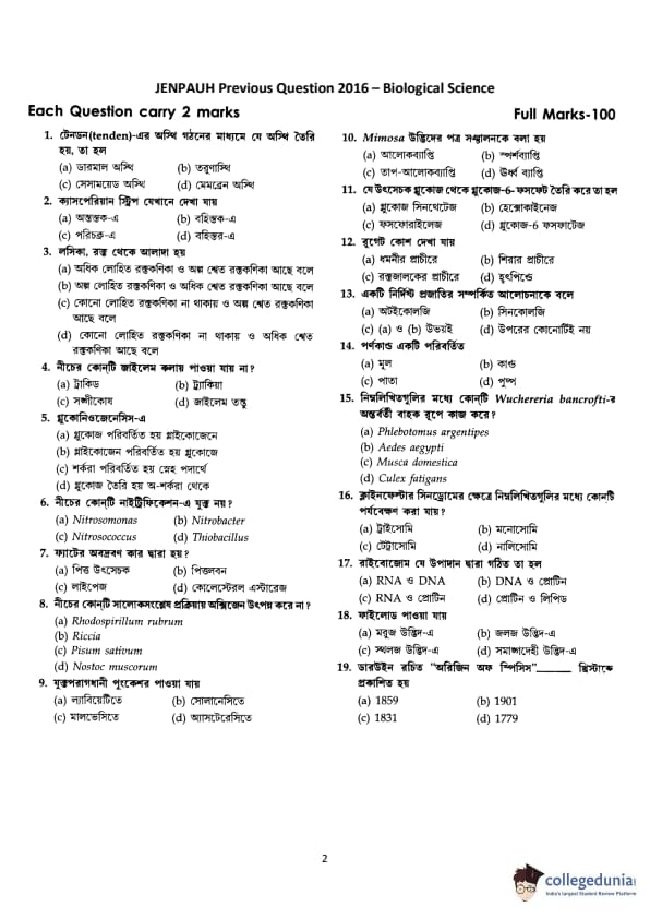 | WBJEE JENPAS UG 2016 Biological Sciences Question Paper PDF | WBJEE JENPAS UG 2016 Biological Sciences Answer Key PDF |