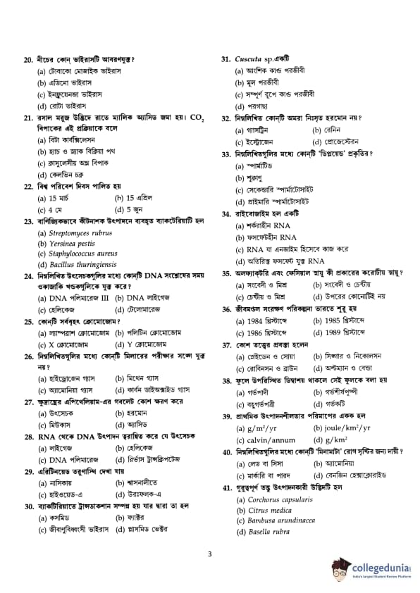 WBJEE JENPAS UG 2016 Biological Sciences Question paper with answer key pdf conducted on July 16, 2016 in Forenoon Session 11 AM to 1 PM is available for download. The exam was successfully organized by West Bengal Joint Entrance Examination Board (WBJEEB). The question paper comprised a total of 50 questions.