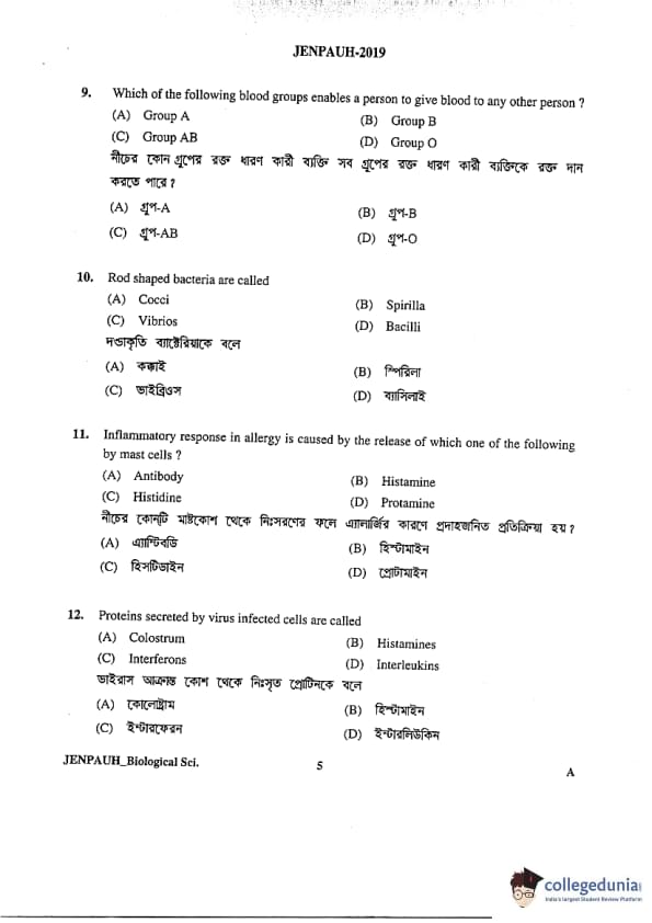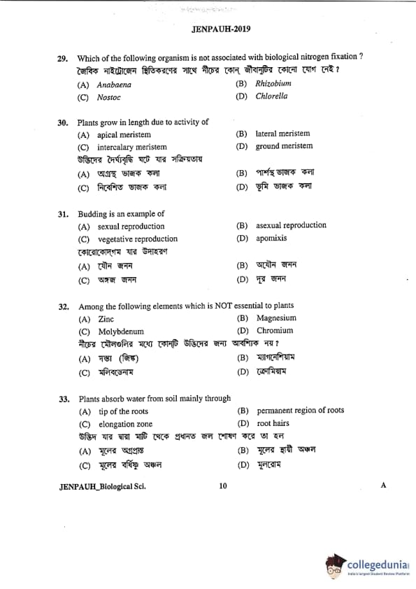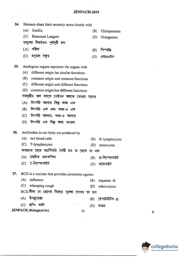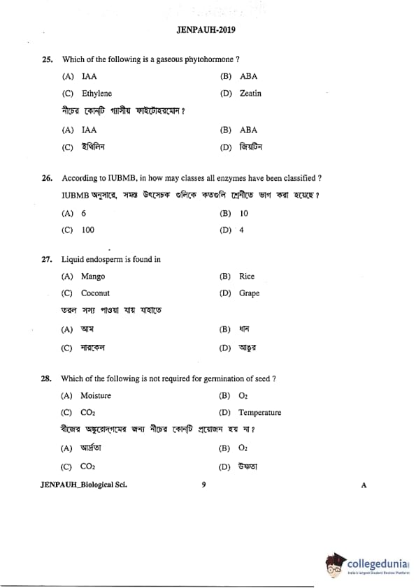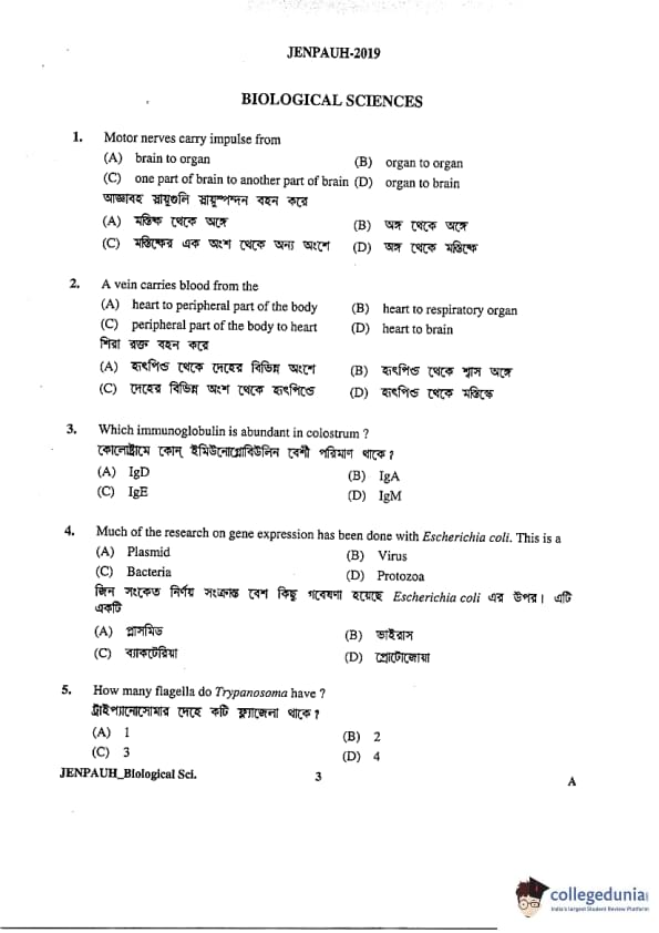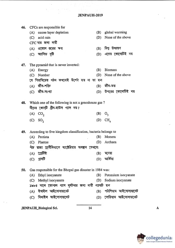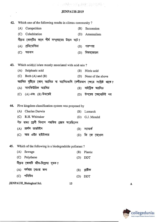 | WBJEE JENPAS UG 2019 BIOLOGICAL SCIENCES Question Paper PDF | WBJEE JENPAS UG 2019 BIOLOGICAL SCIENCES Answer Key PDF |