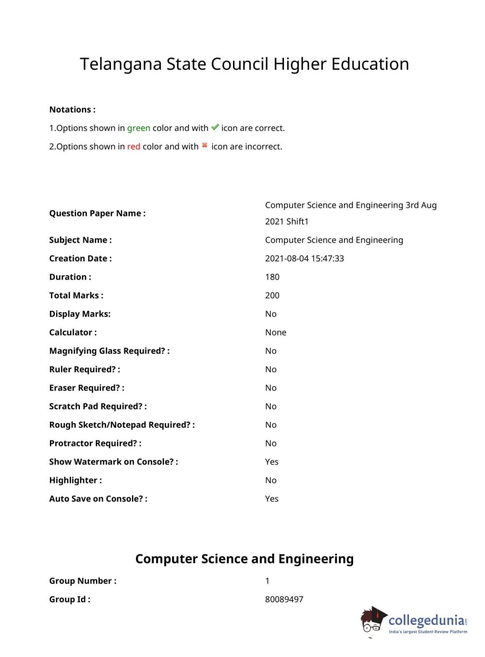 | TS ECET 2021 Computer Science and Engineering Question Paper PDF | TS ECET 2021 Computer Science and Engineering Answer Key PDF |