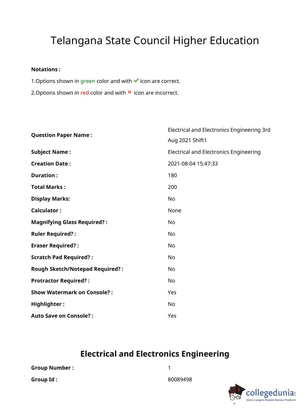 | TS ECET 2021 Electrical and Electronics Engineering Question Paper PDF | TS ECET 2021 Electrical and Electronics Engineering Answer Key PDF |