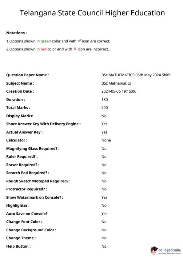 | TS ECET 2024 B.Sc. (Mathematics) Question Paper | TS ECET 2024 B.Sc. (Mathematics) Answer Key |