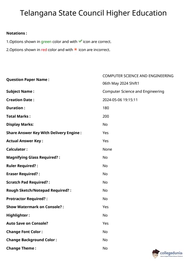 | TS ECET 2024 CSE Question Paper | TS ECET 2024 CSE Answer Key |