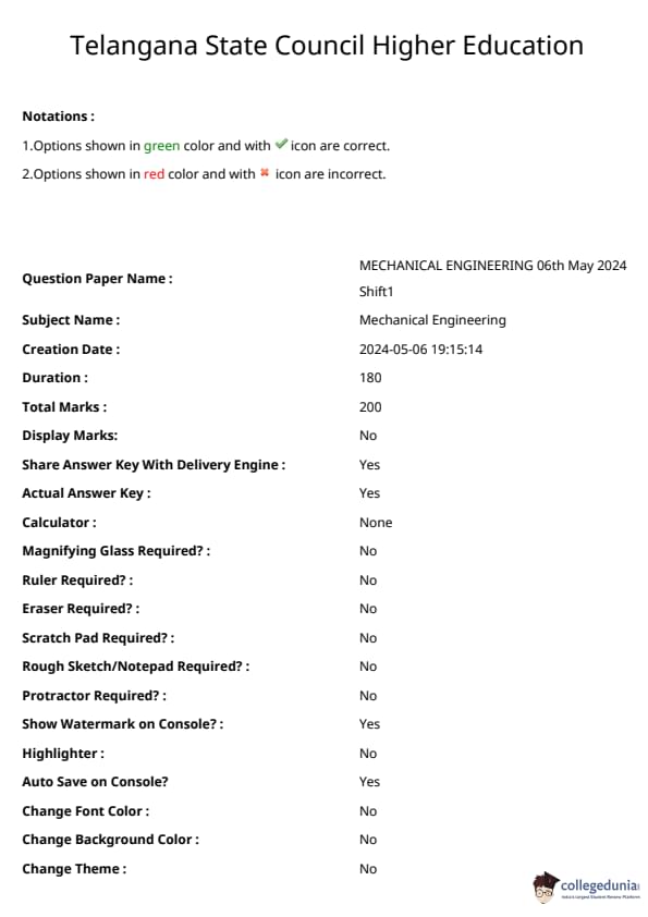 | TS ECET 2024 Mechanical Engineering Question Paper | TS ECET 2024 Mechanical Engineering Answer Key |