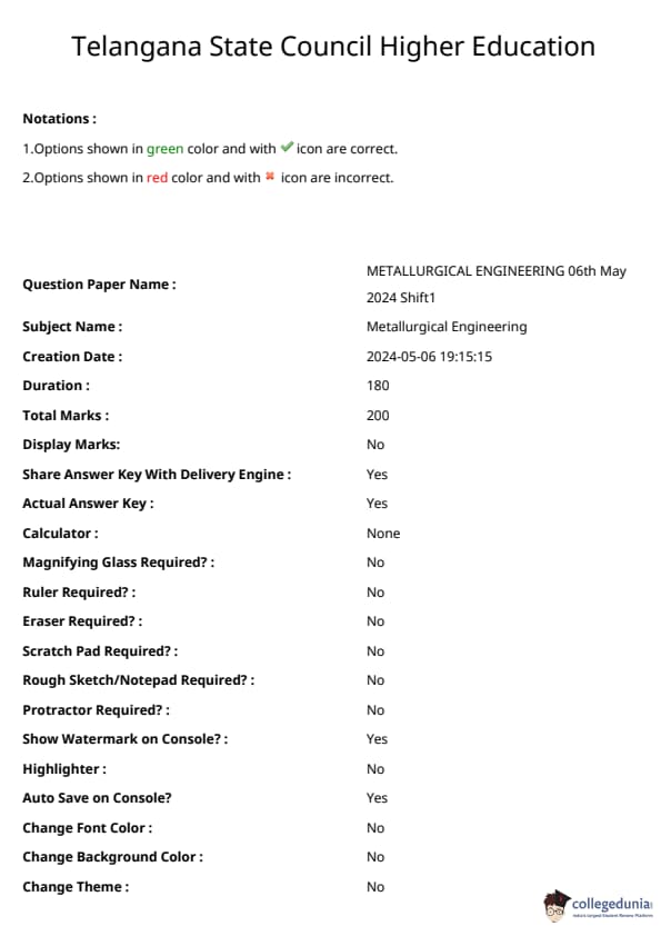 | TS ECET 2024 Metallurgical Engineering Question Paper | TS ECET 2024 Metallurgical Engineering Answer Key |