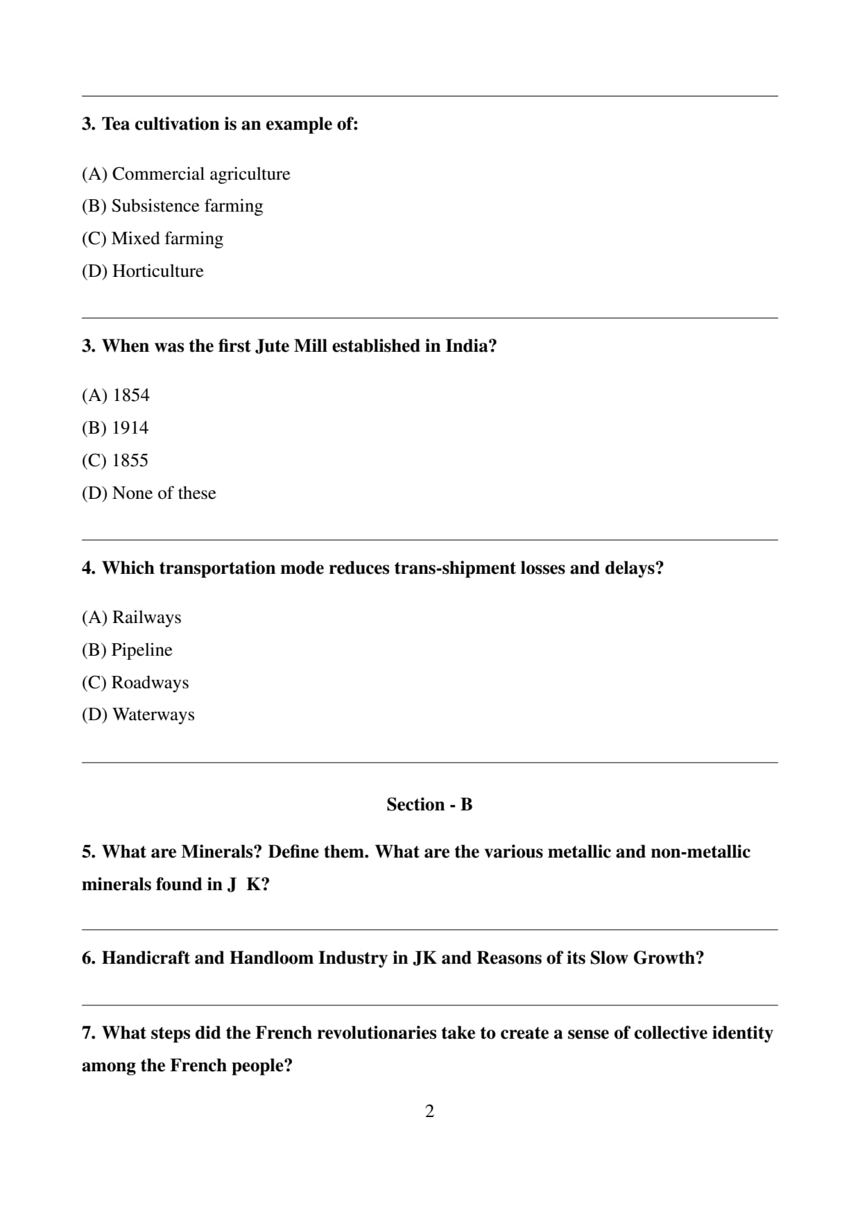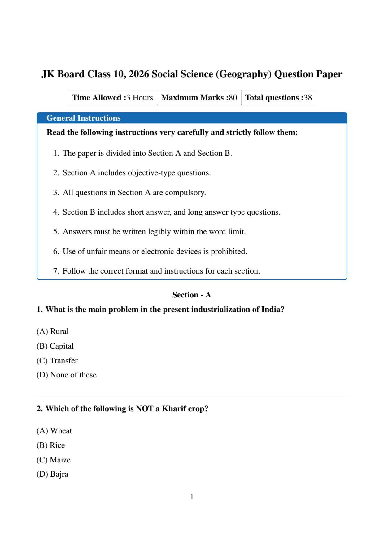 The official question paper of JK Board Class 10 Geography Board Exam 2026 is provided below. Students can download the official paper in PDF format for reference.