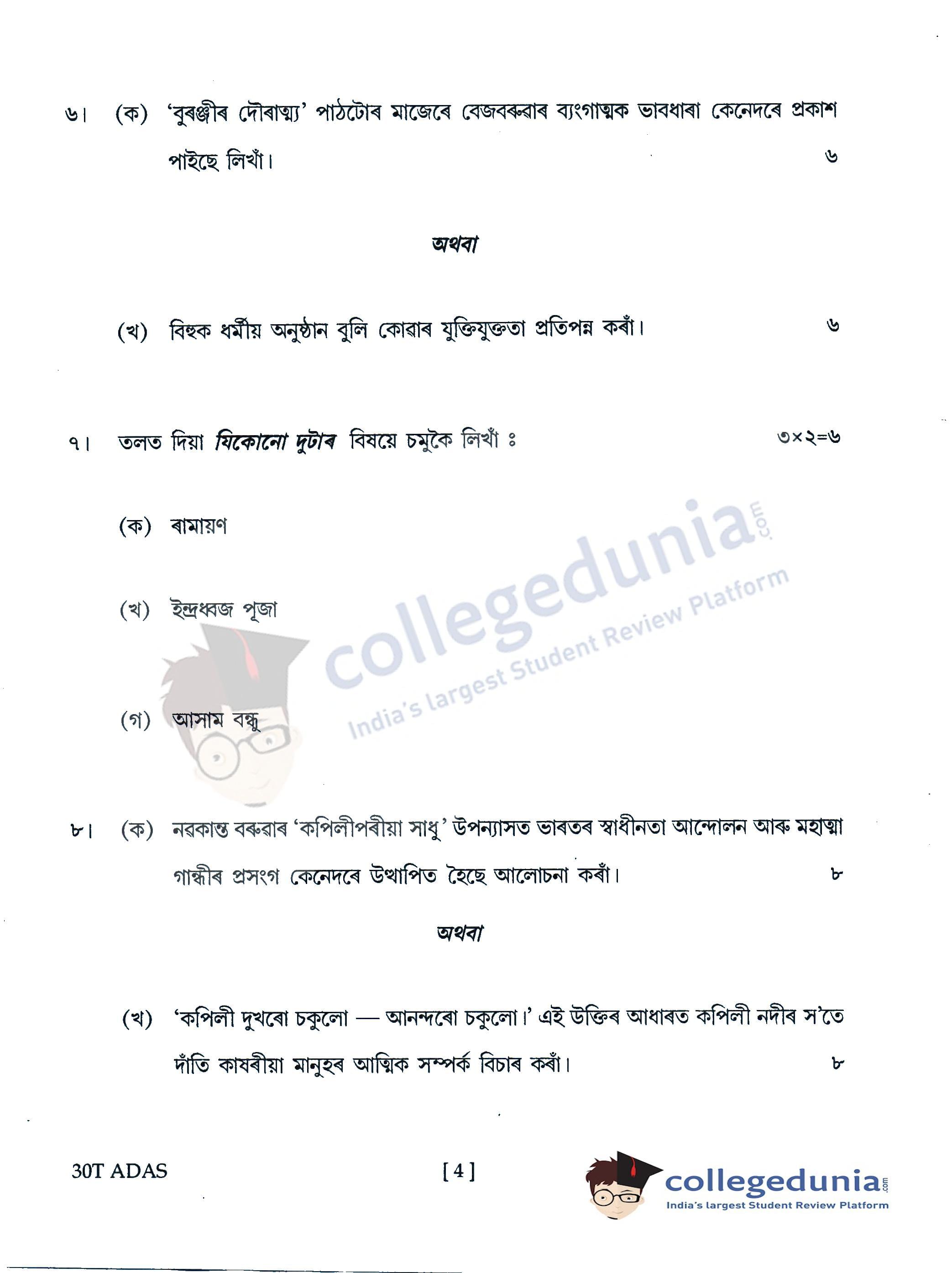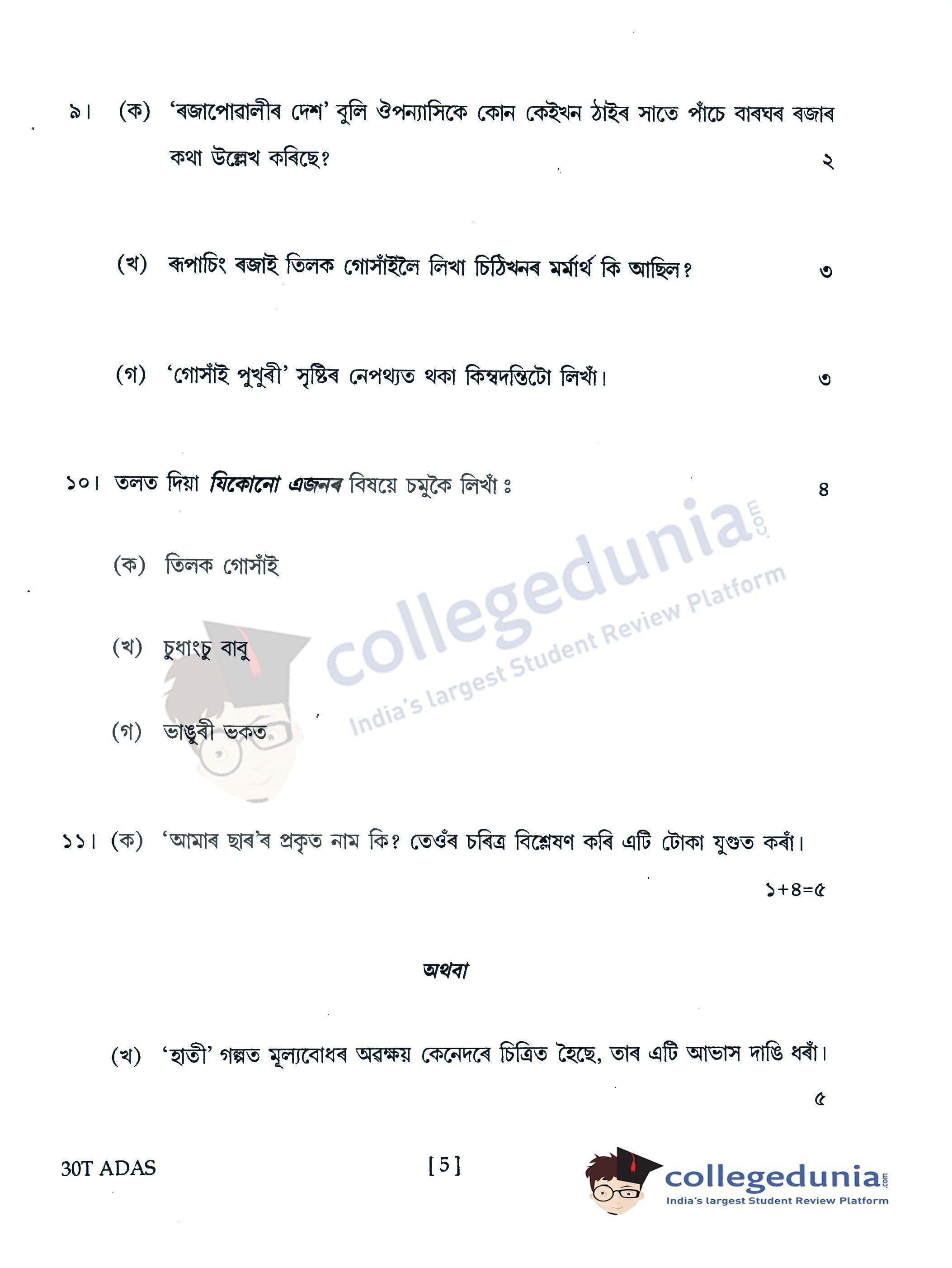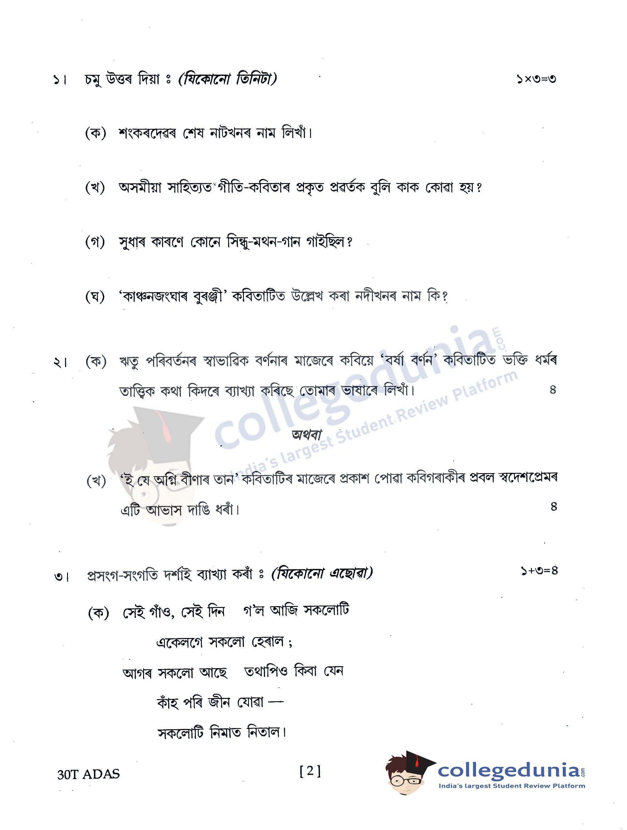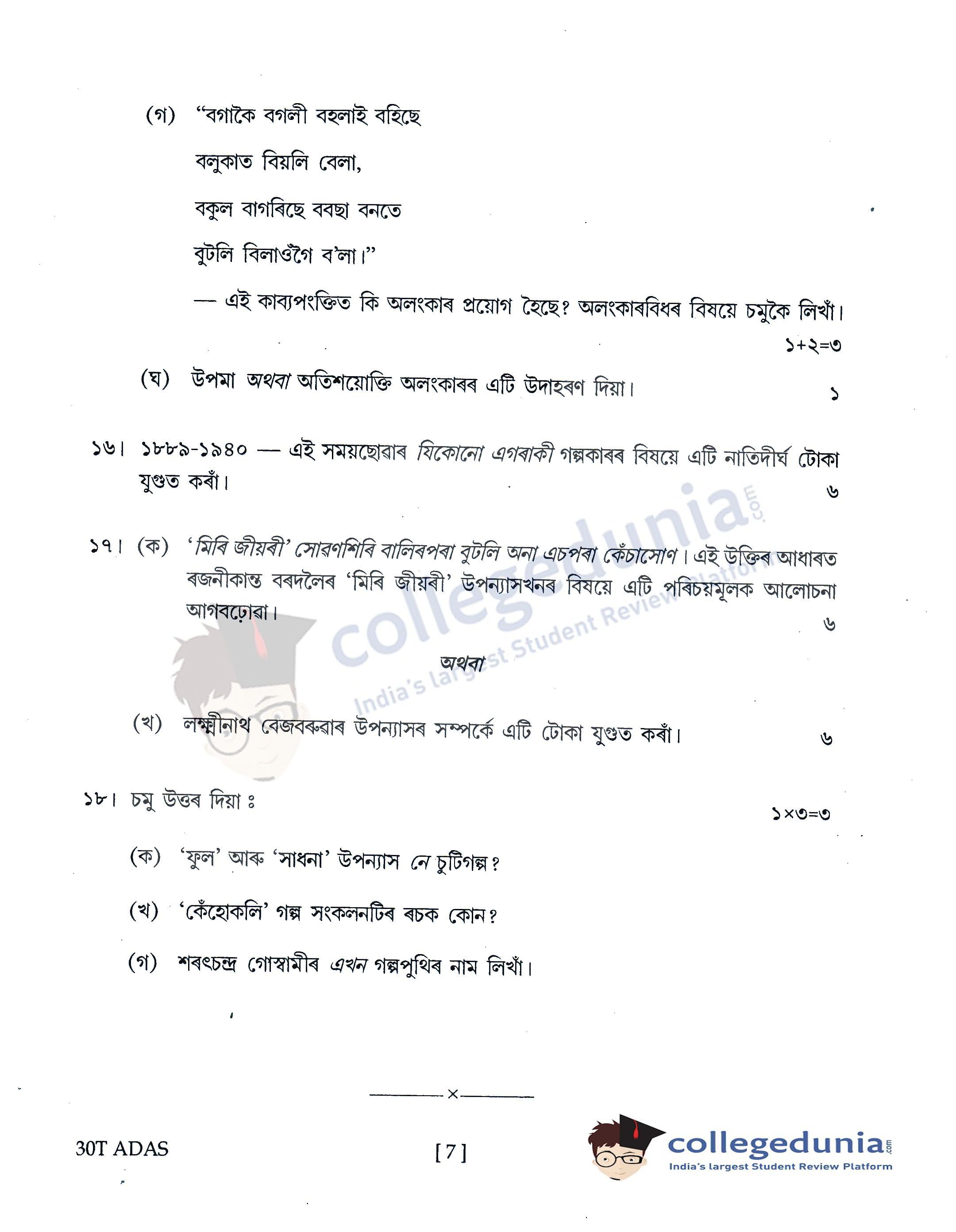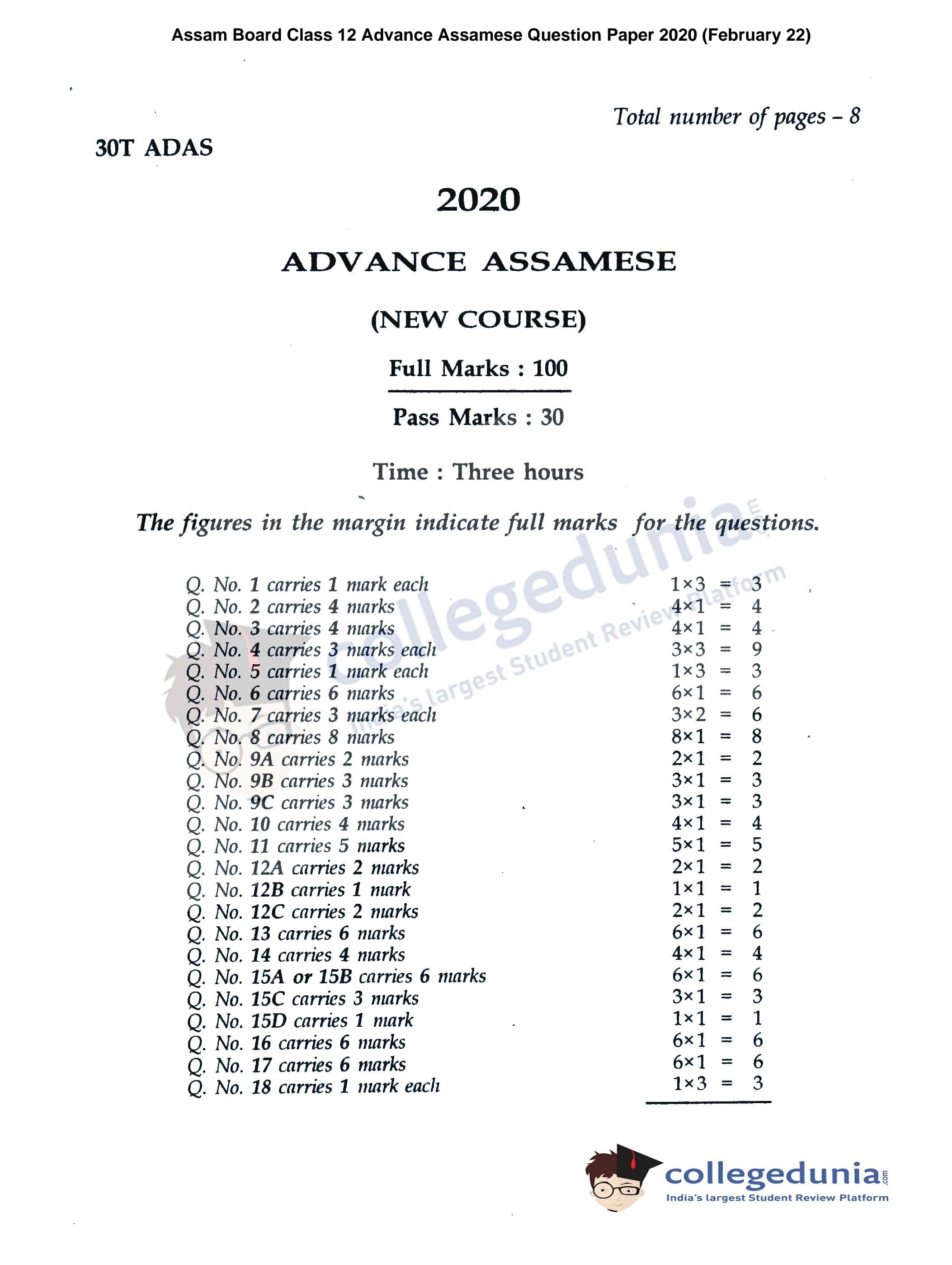 Assam HS 2nd Year Advance Assamese Question Paper 2020 with Answer Key (February 22)