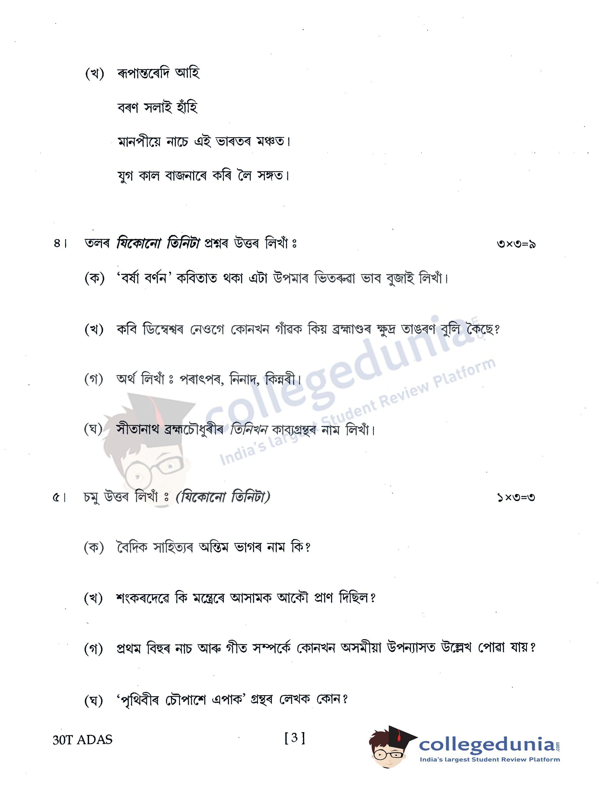 Assam HS 2nd Year Advance Assamese Question Paper 2020 with Answer Key is available for download. The exam was conducted by the Assam Higher Secondary Education Council (AHSEC) on February 22, 2020 in the Afternoon Session 1:30 PM to 4:30 PM. The medium of paper was Assamese. The question paper comprised a total of 18 questions.