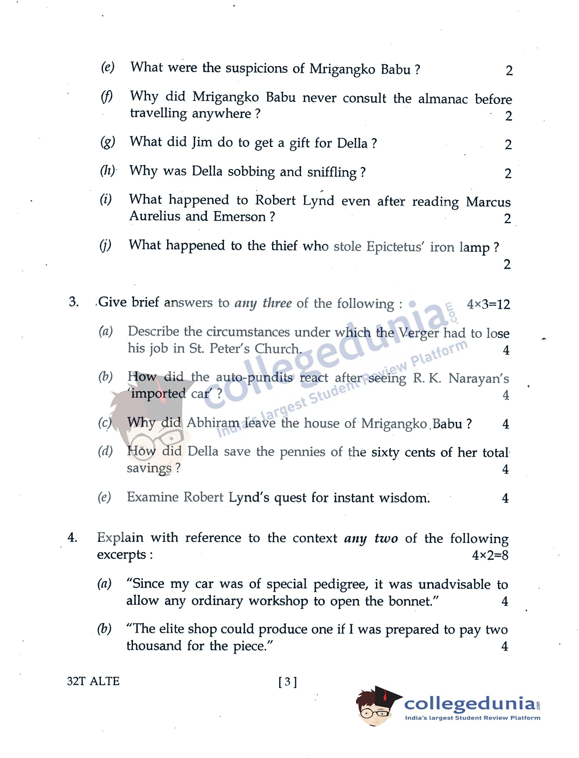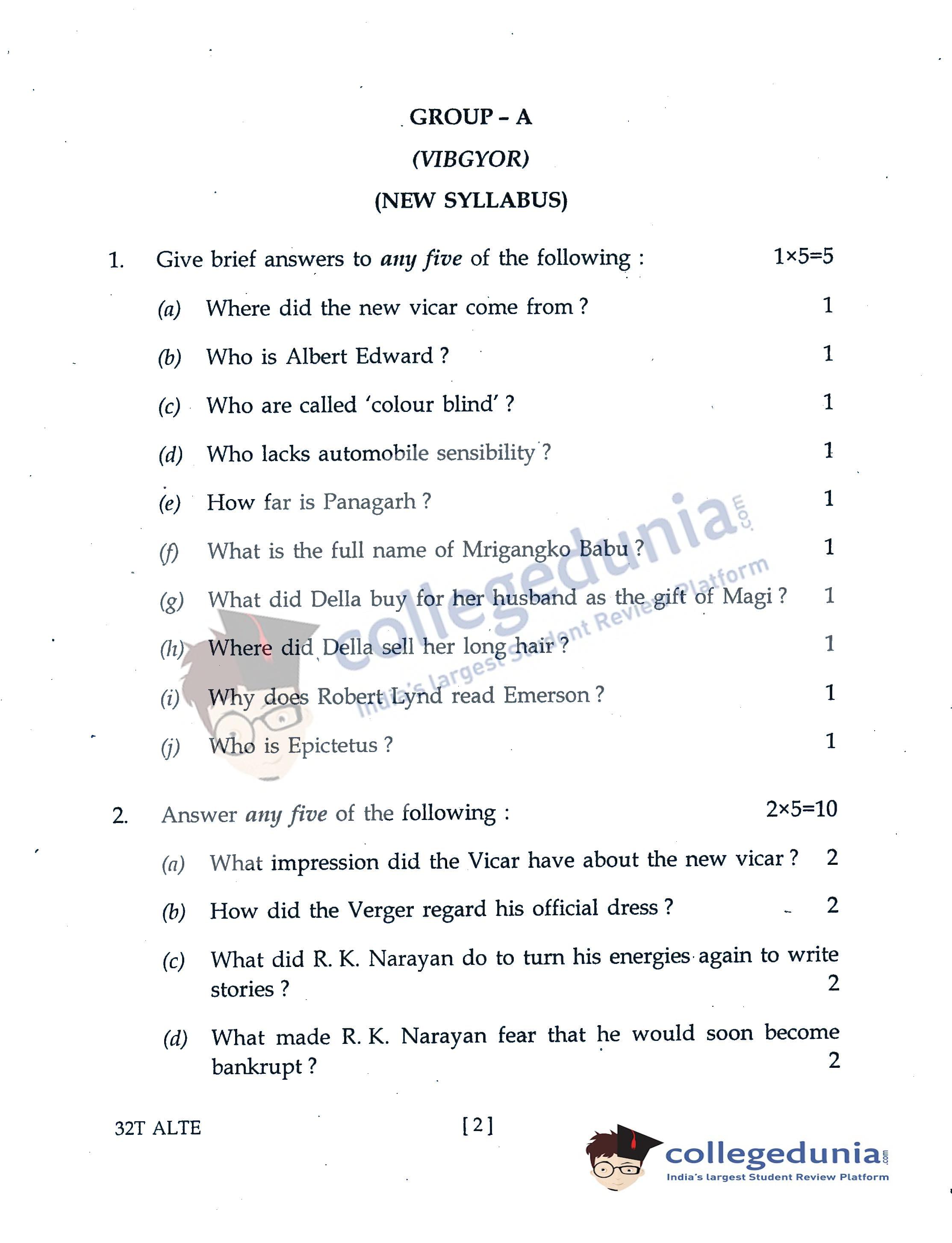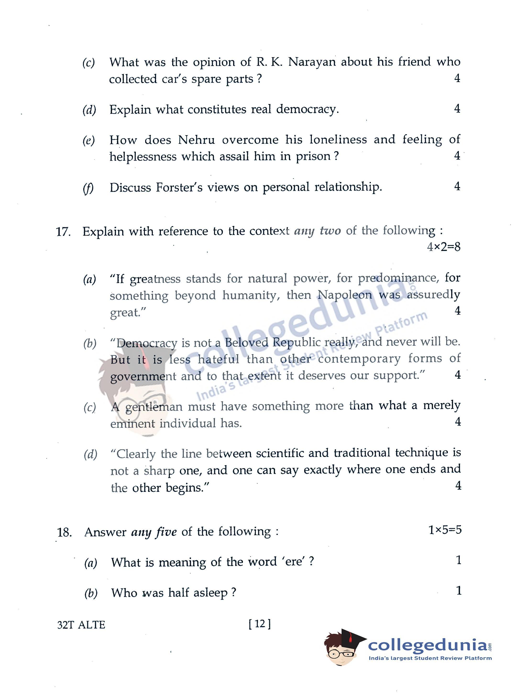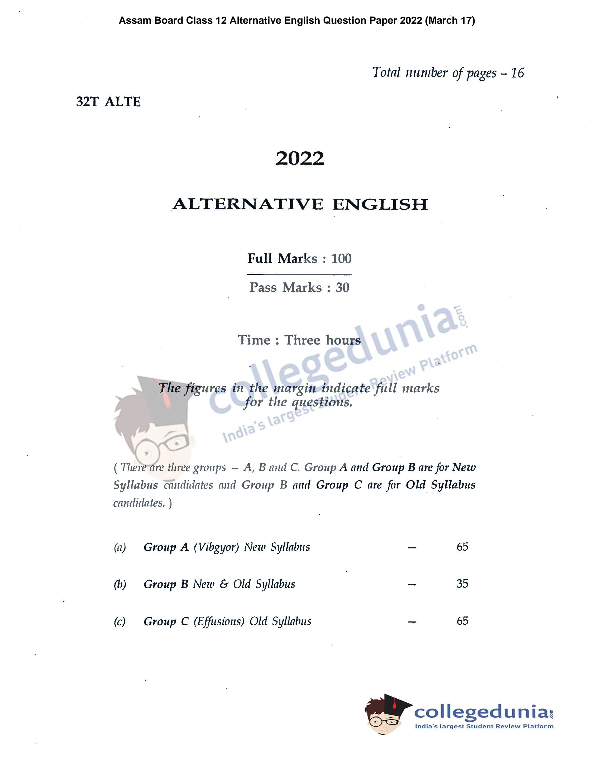 Assam HS 2nd Year Alternative English Question Paper 2022 with Answer Key (March 17)
