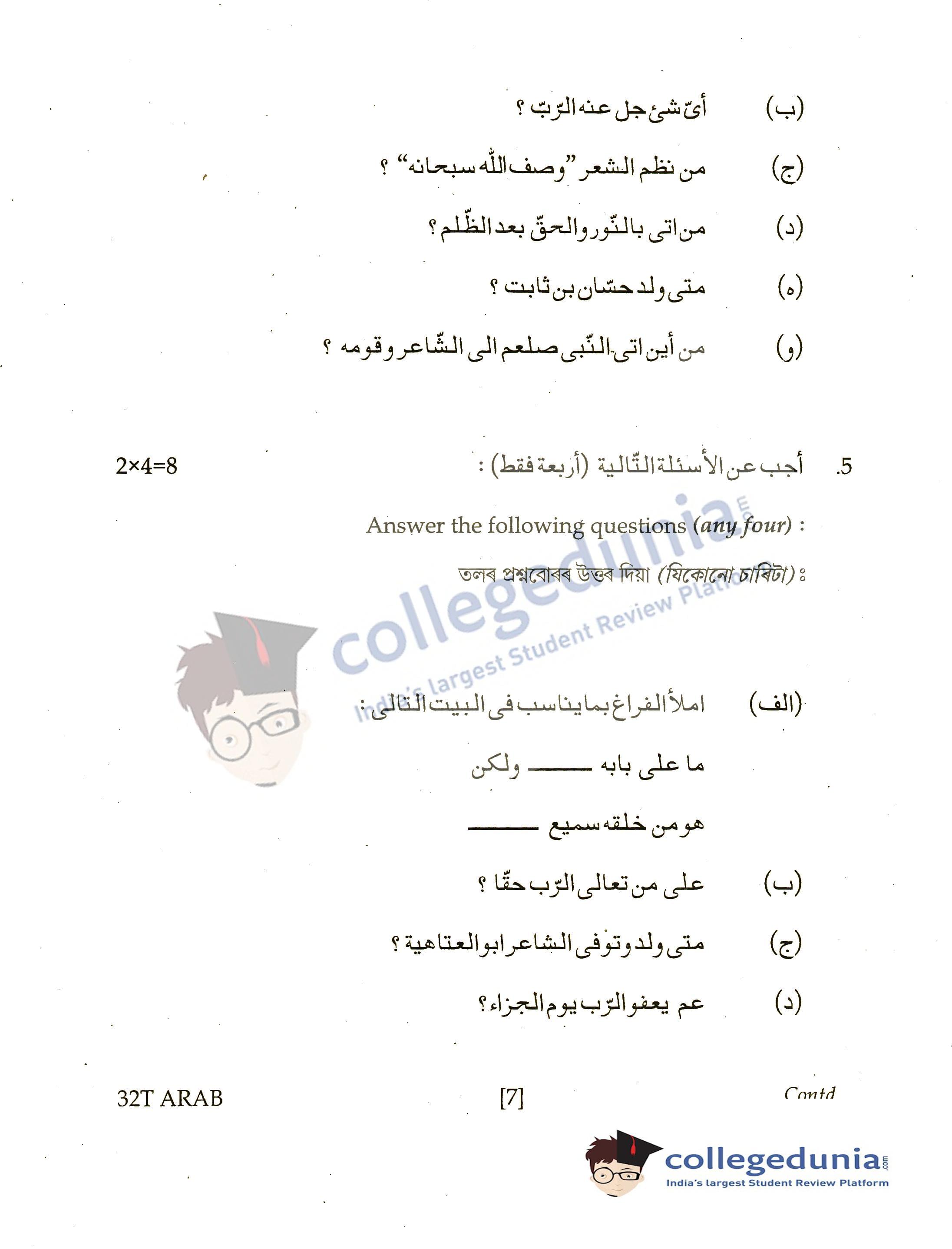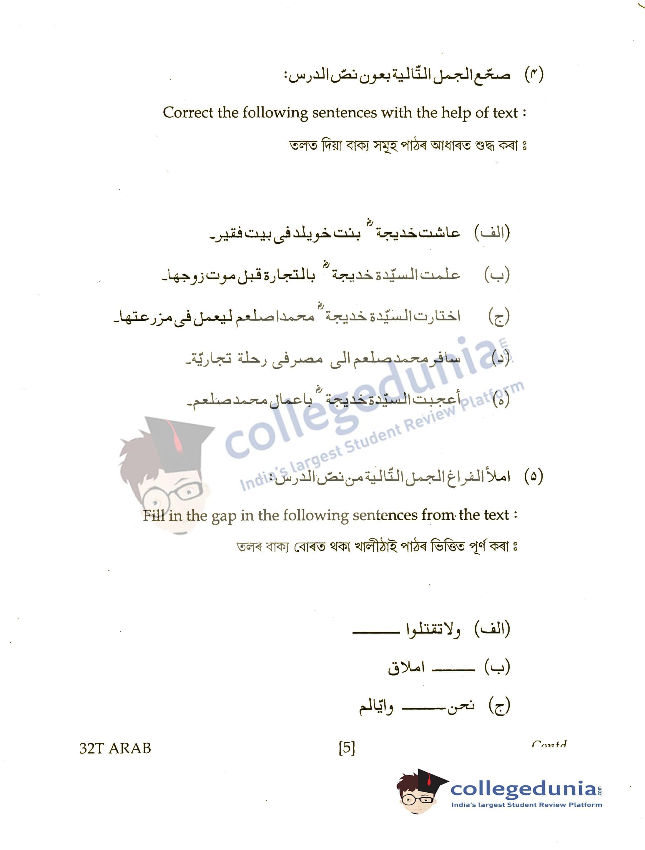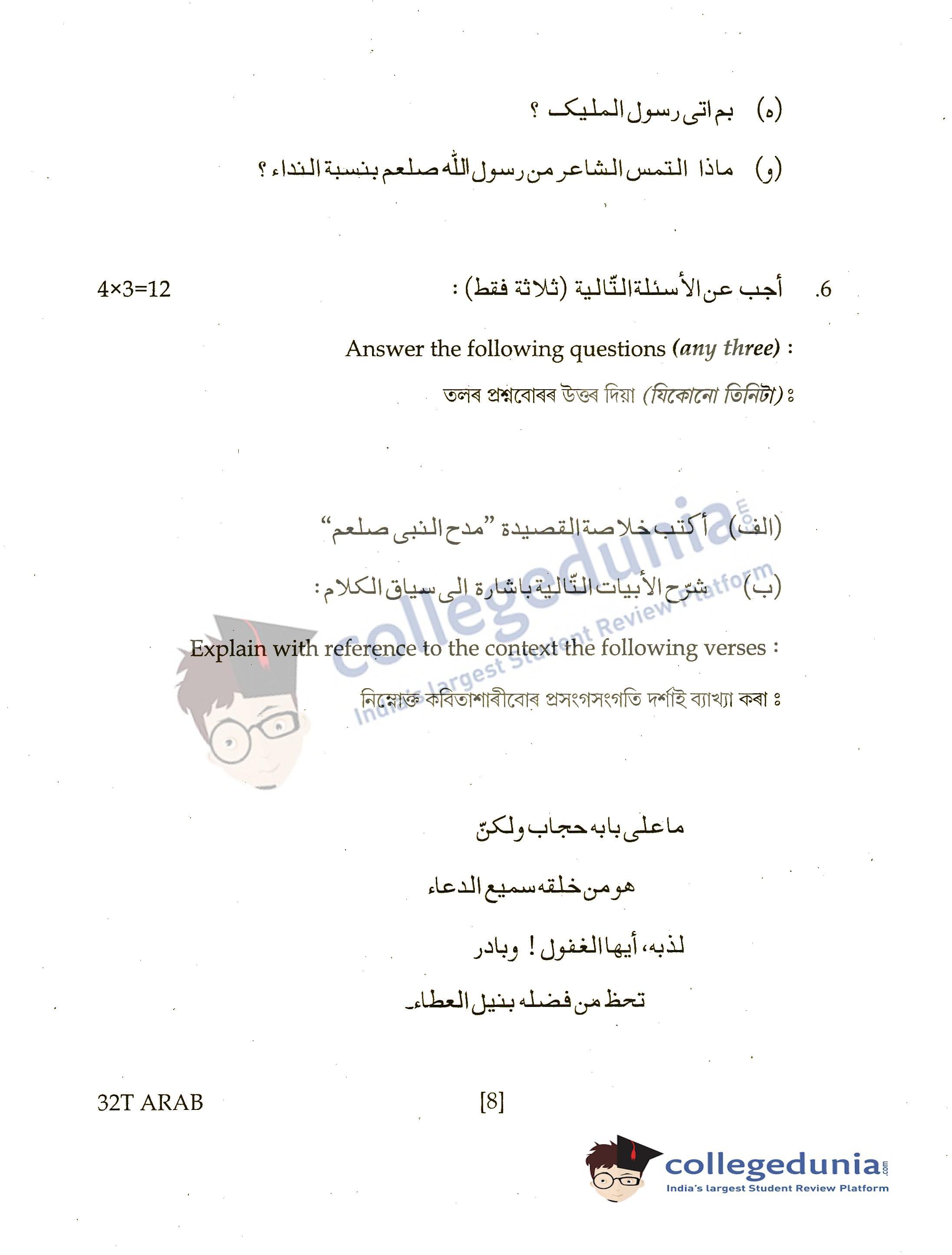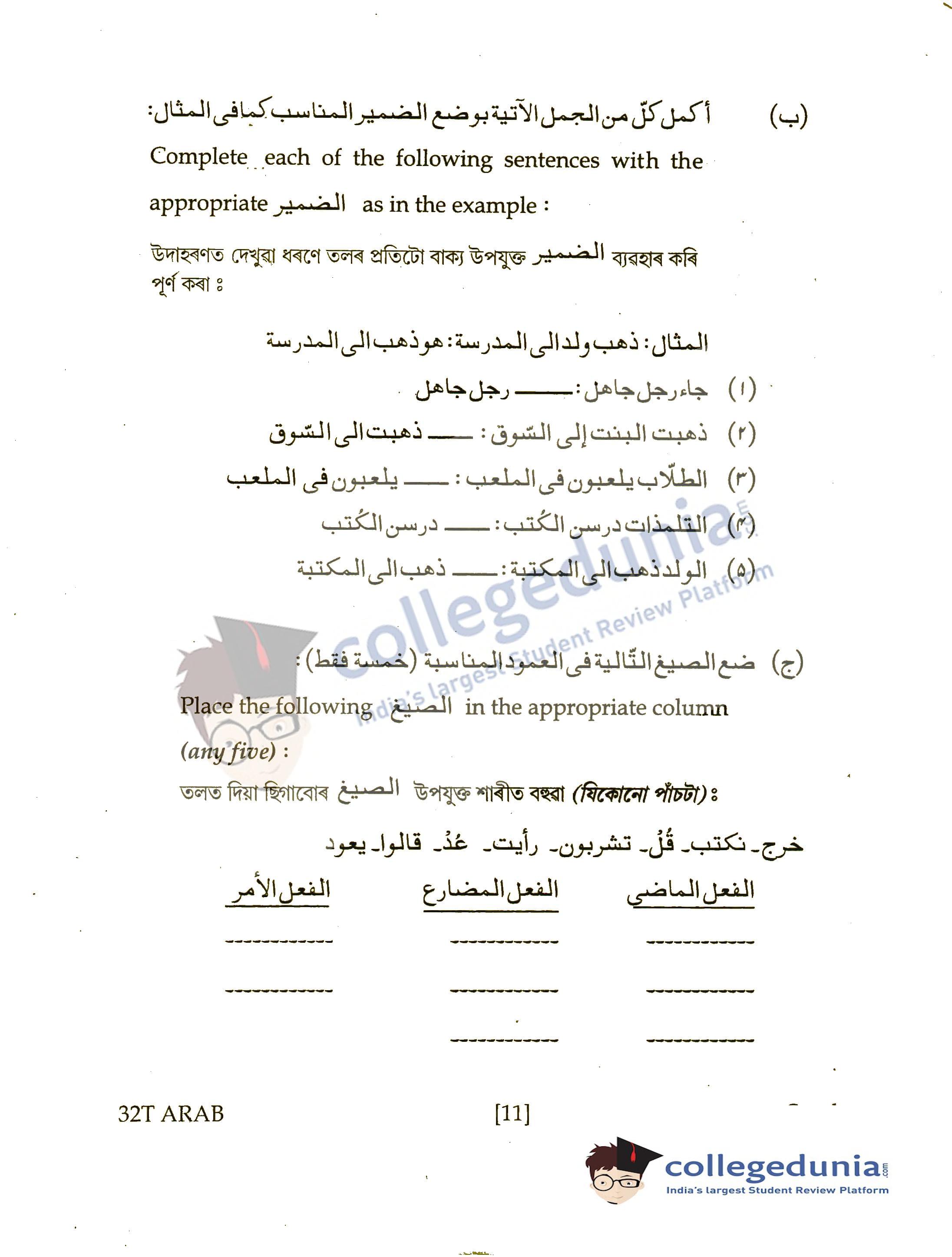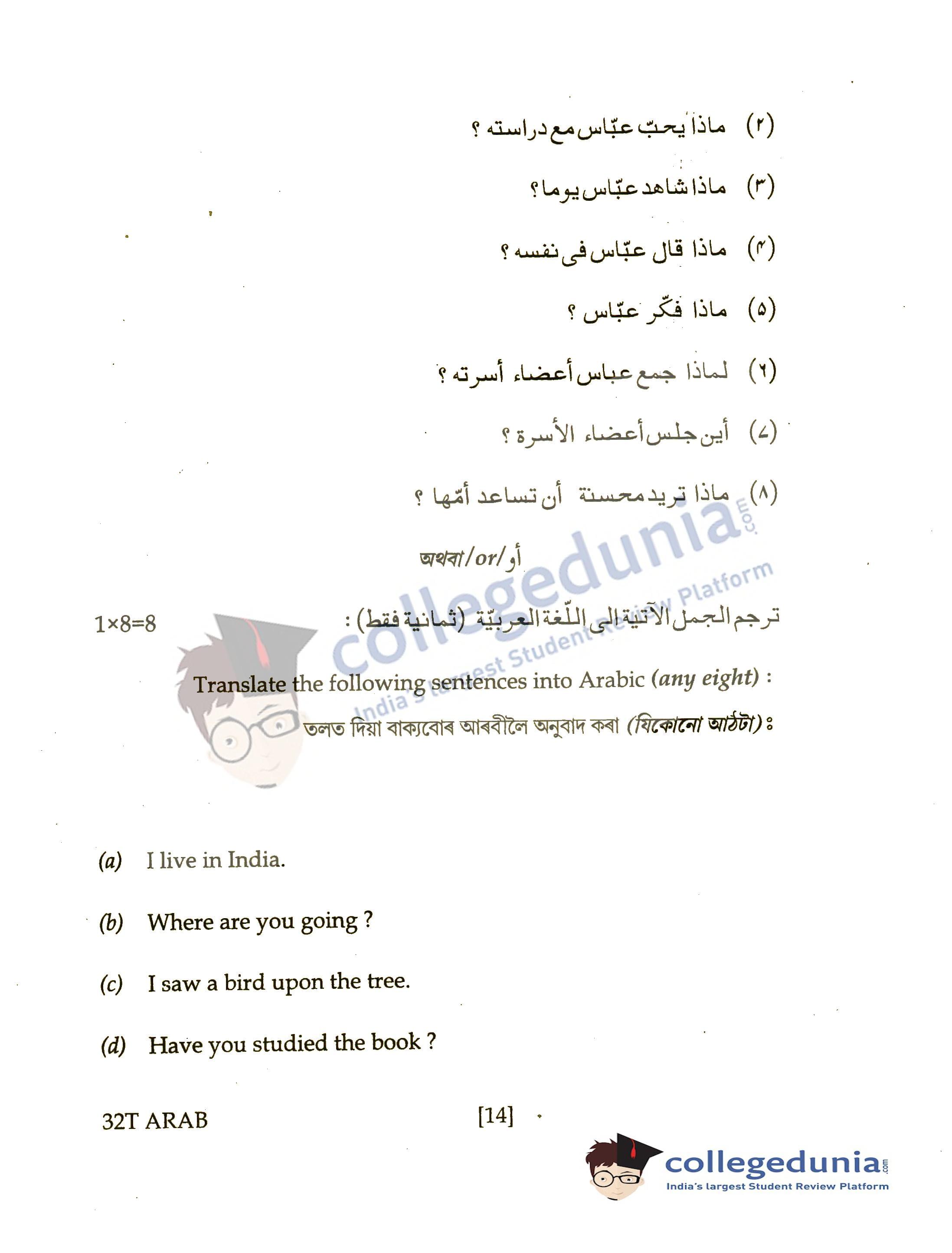 Assam HS 2nd Year Arabic Question Paper 2022 with Answer Key (April 9)