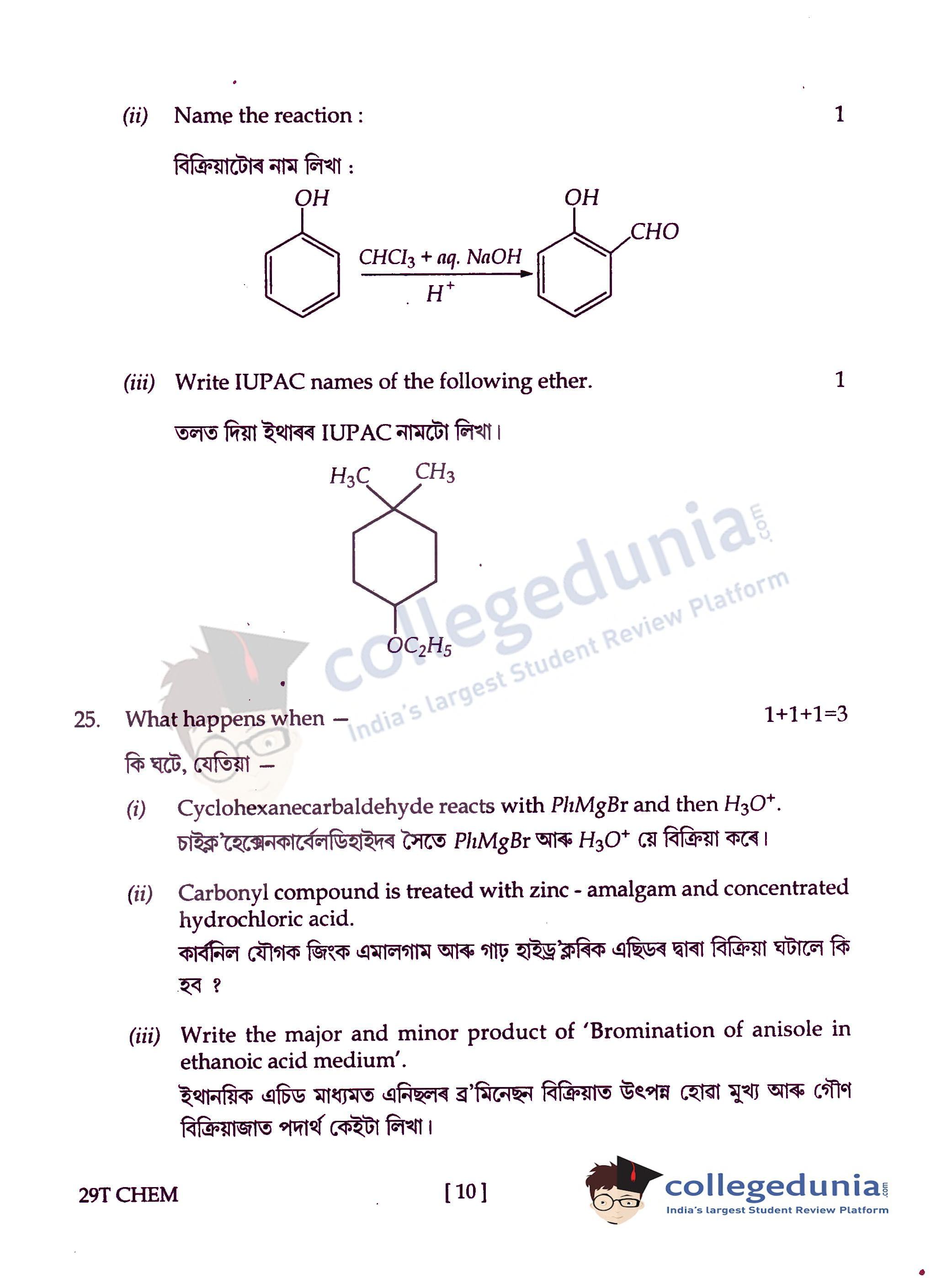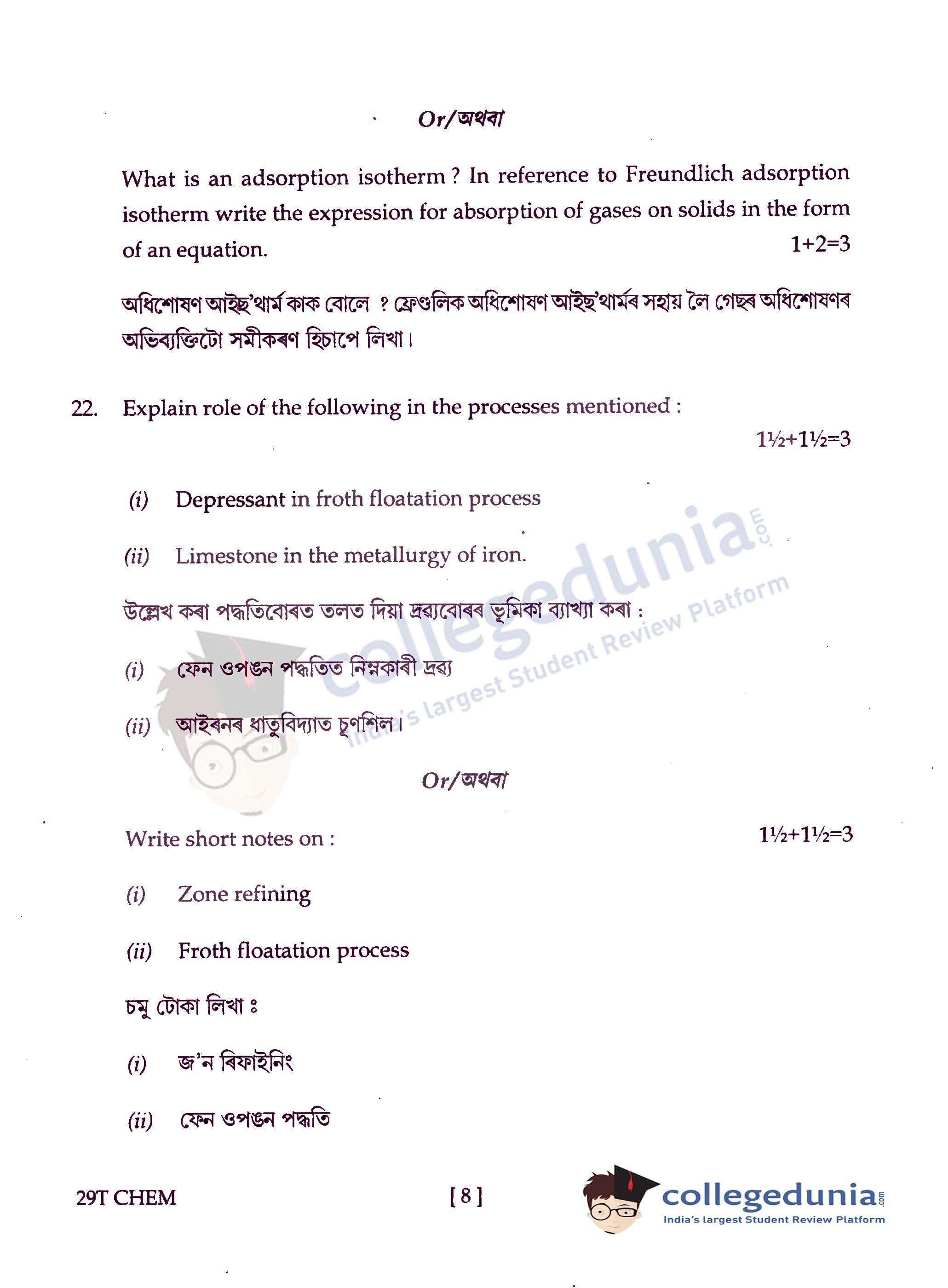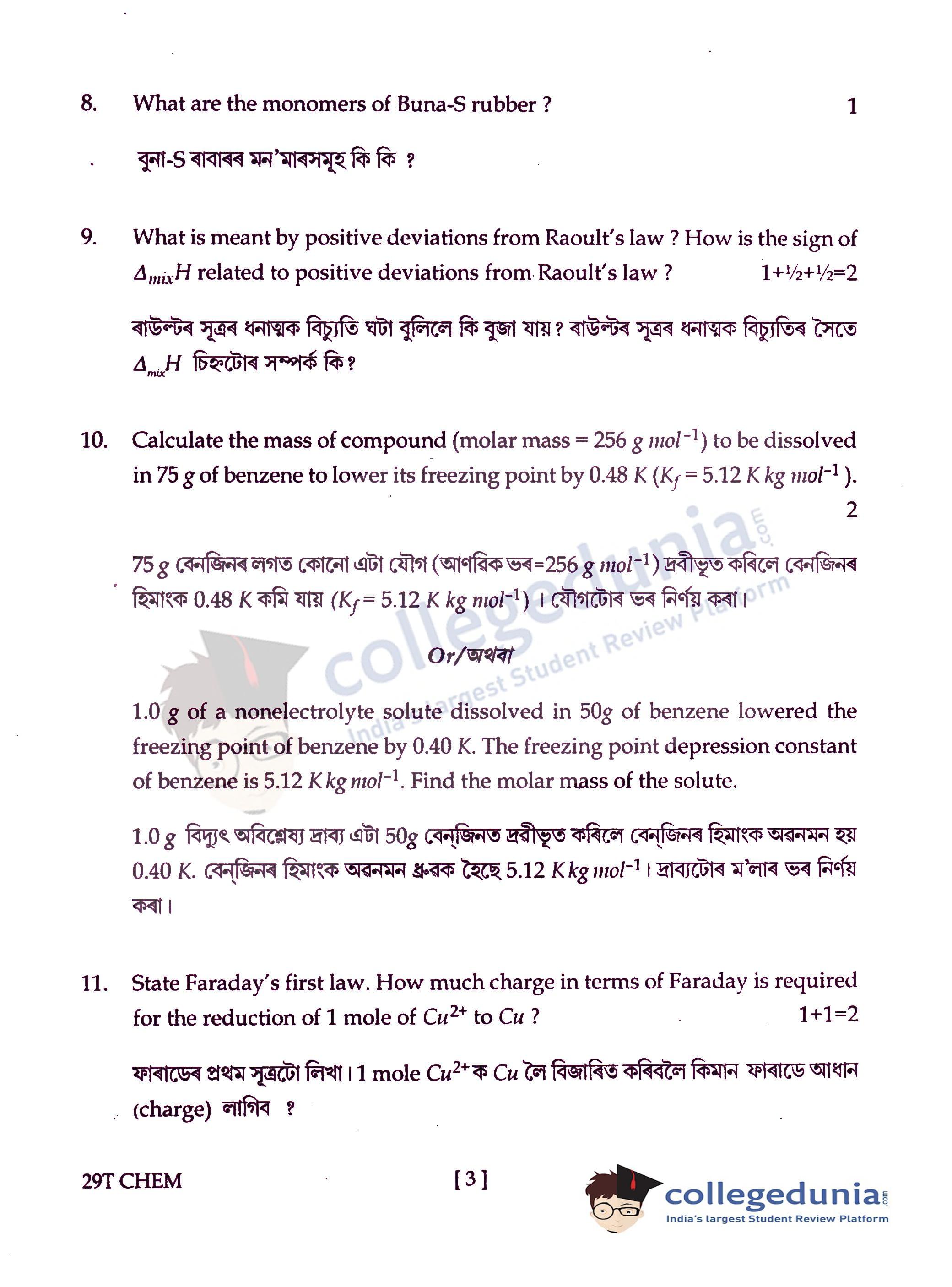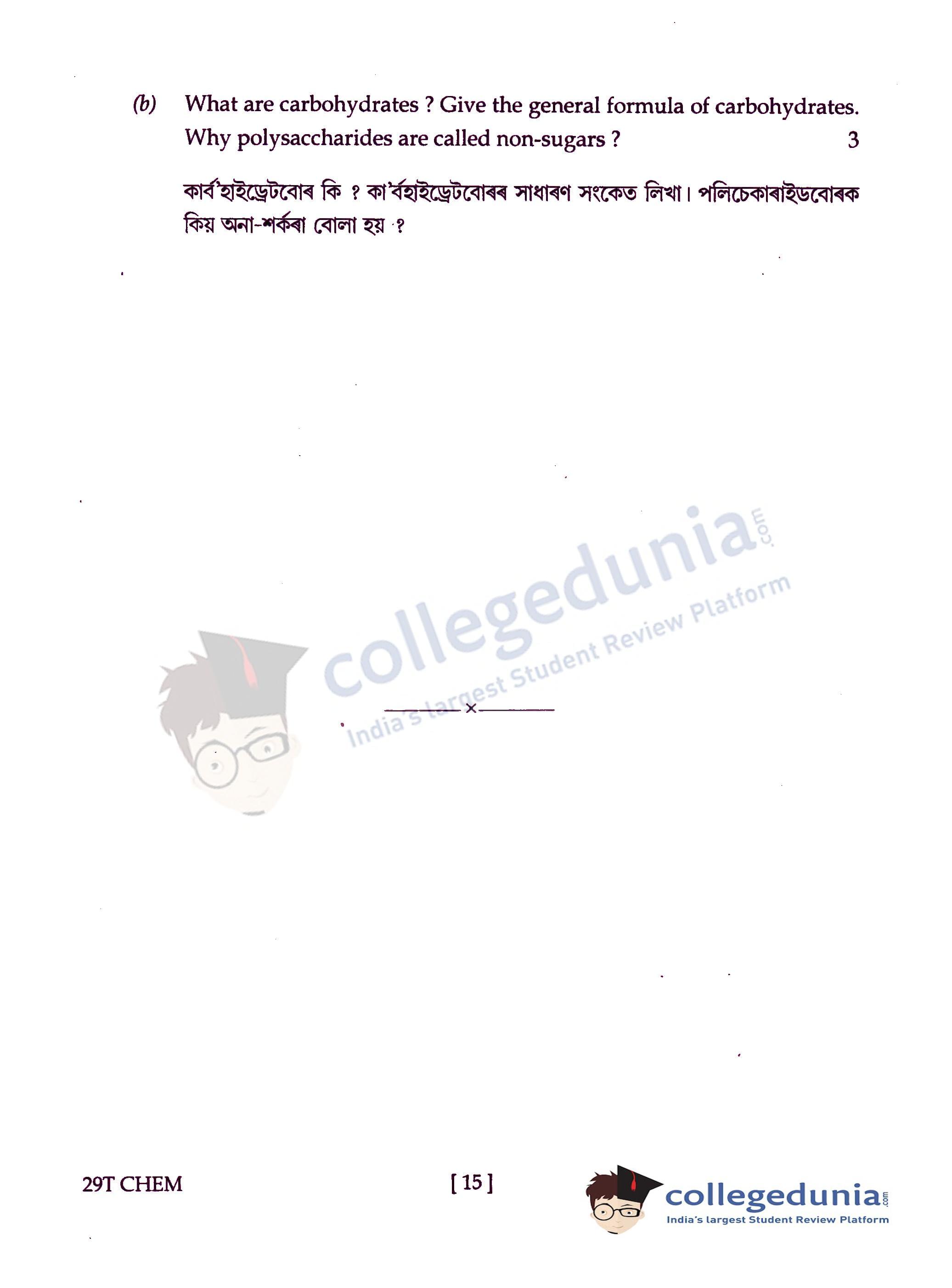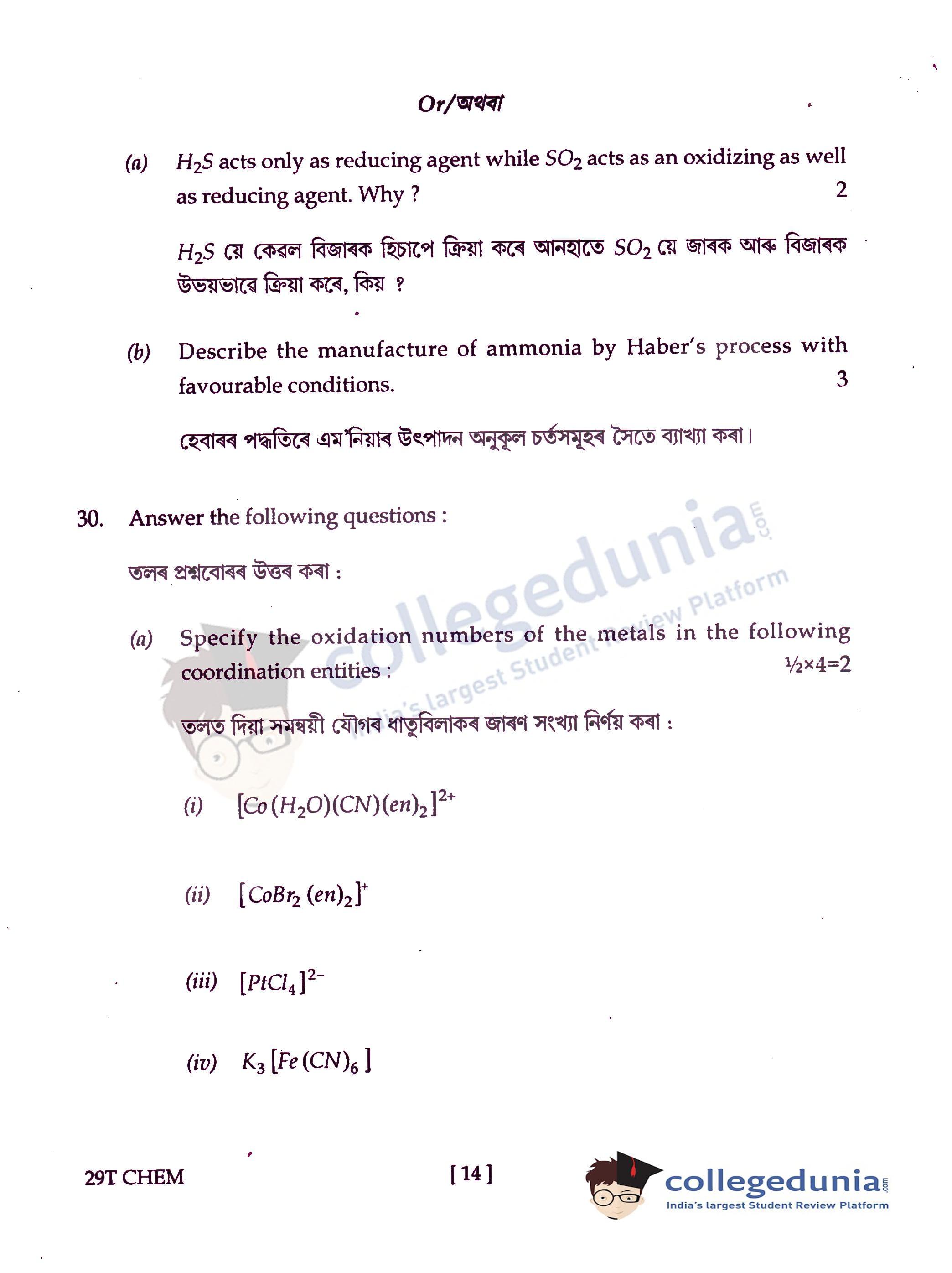 Assam HS 2nd Year Chemistry Question Paper 2019 with Answer Key (February 15)