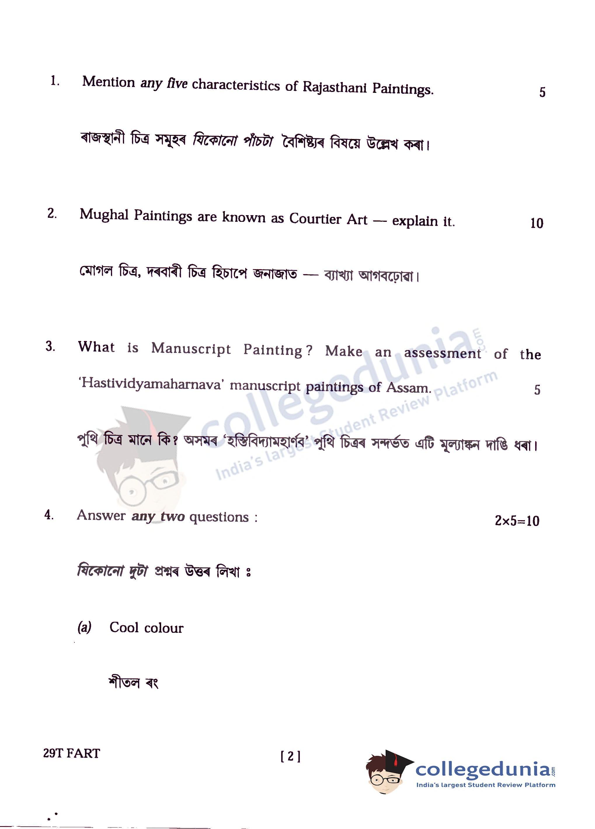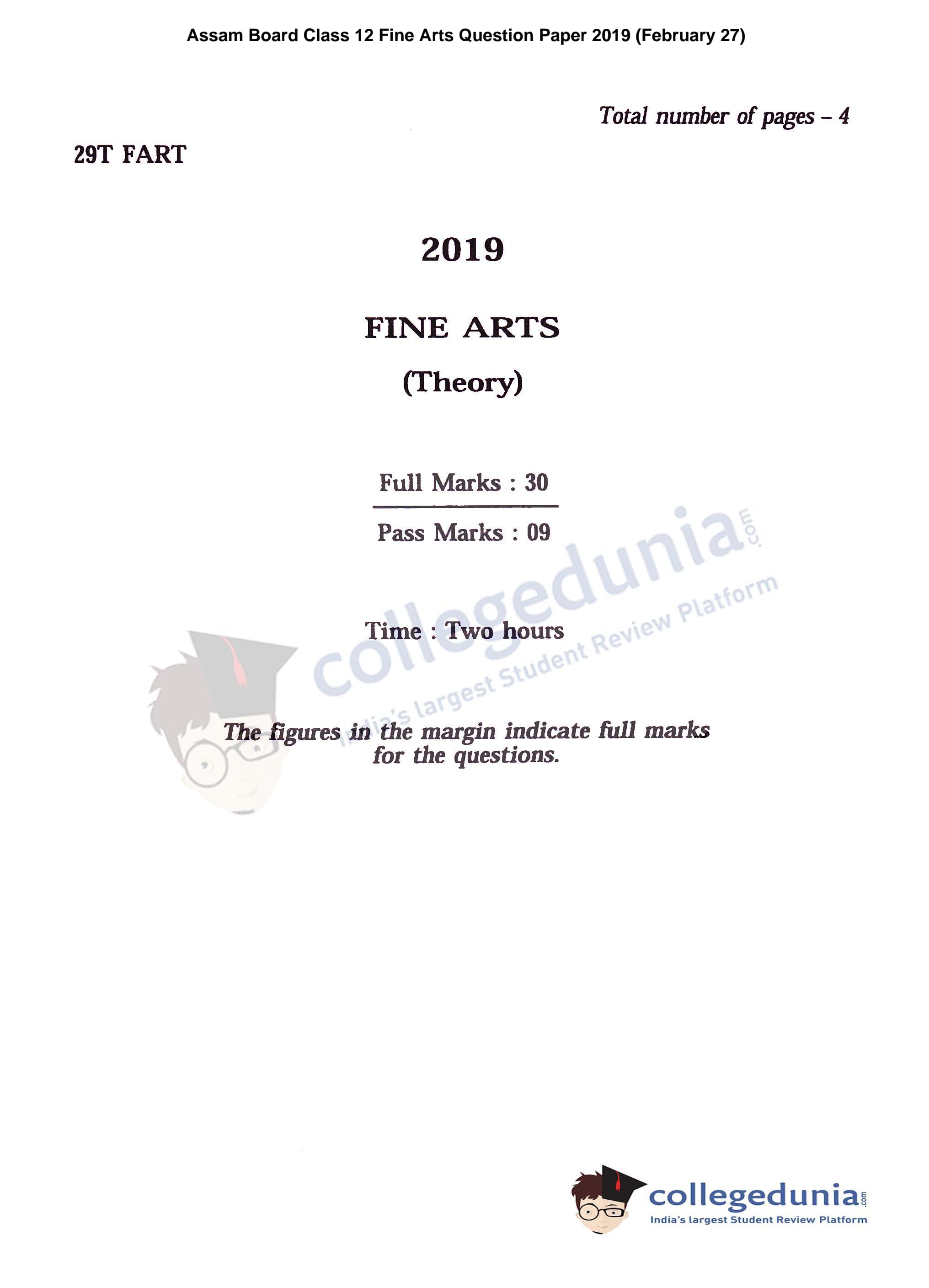 Assam HS 2nd Year Fine Arts Question Paper 2019 with Answer Key (February 27)