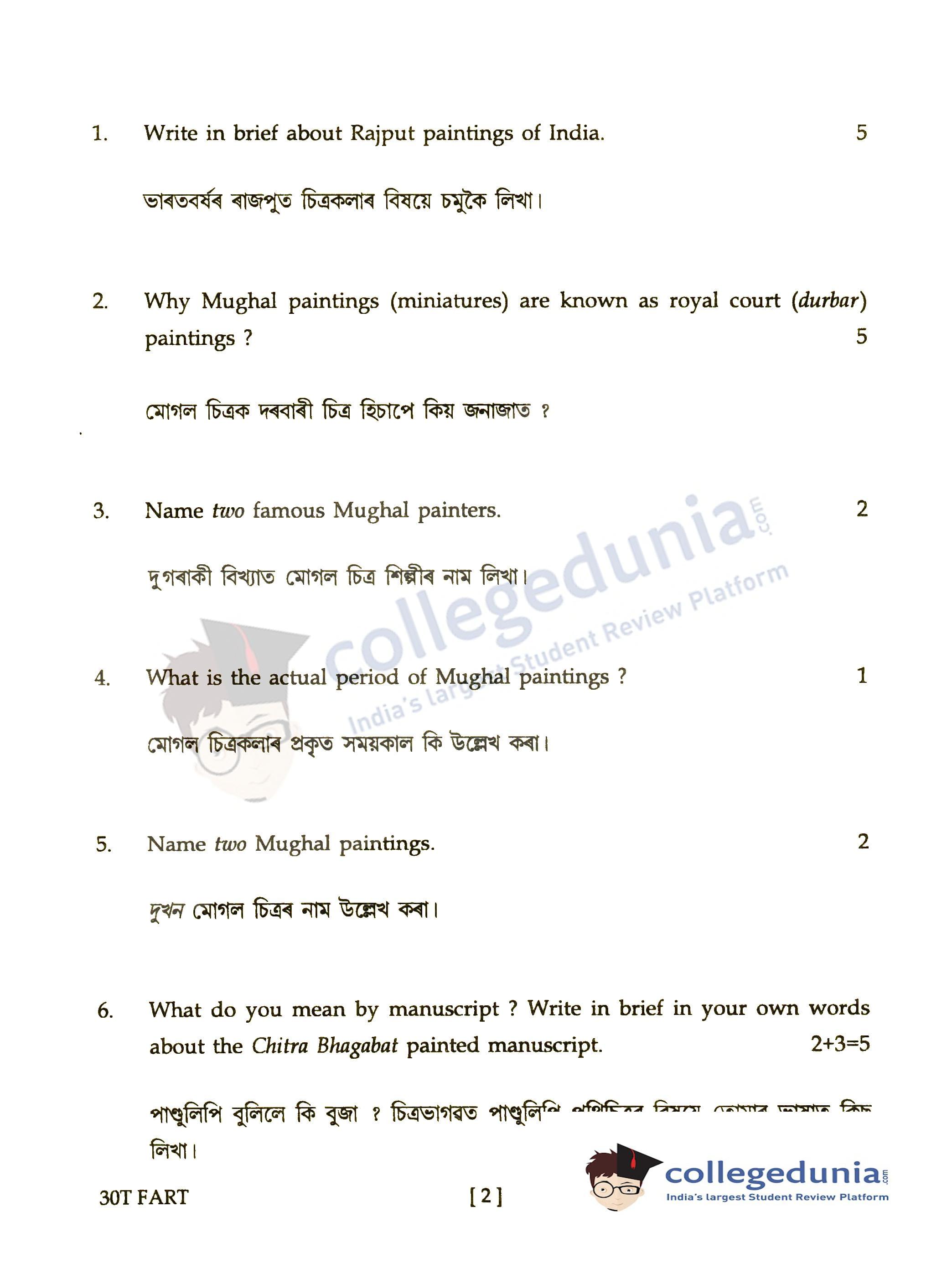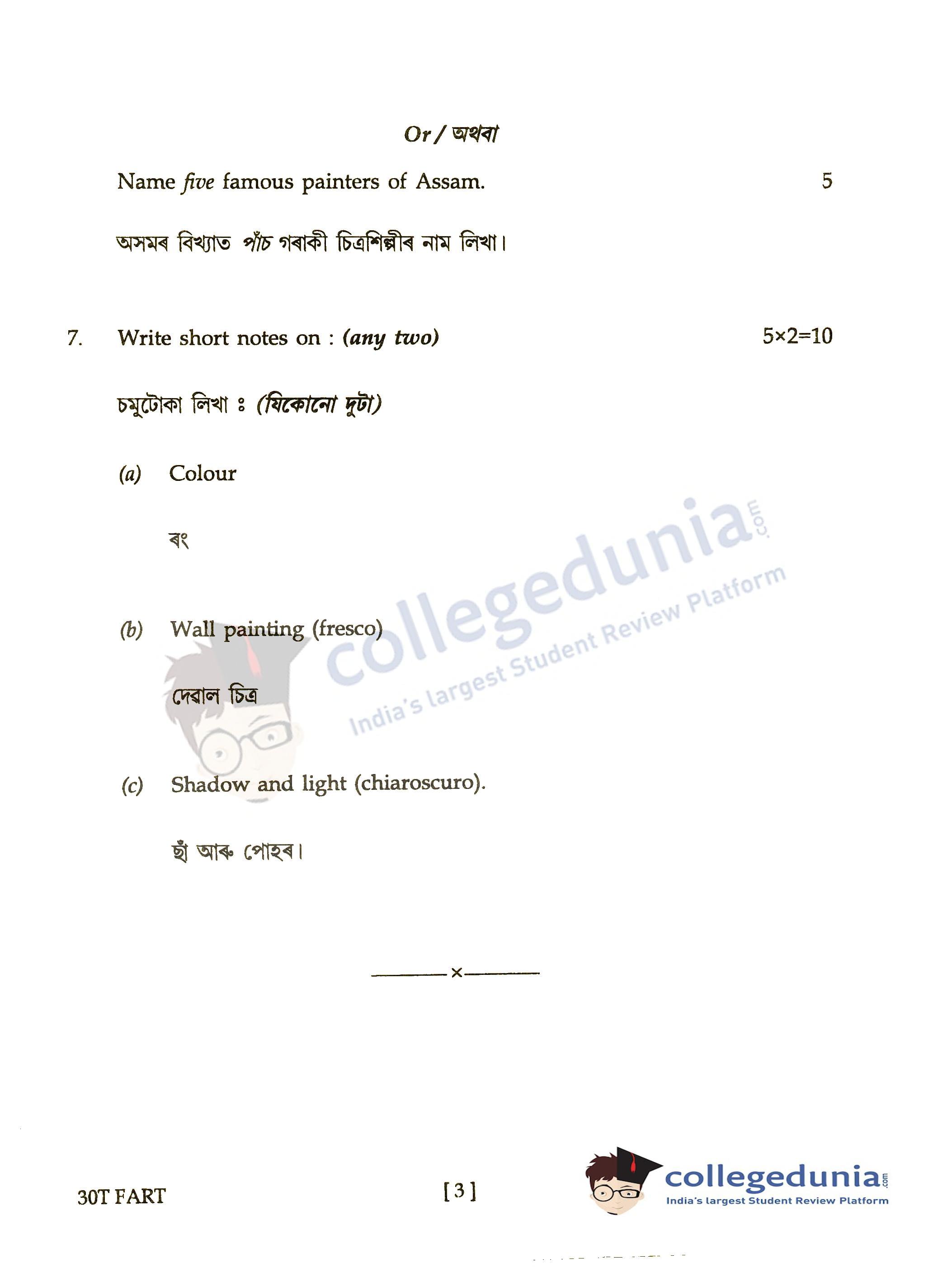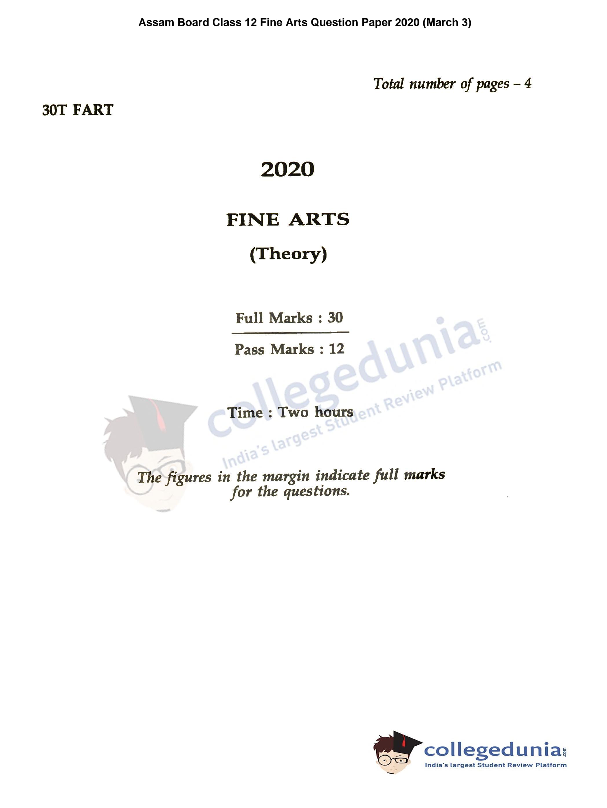Assam HS 2nd Year Fine Arts Question Paper 2020 with Answer Key (March 3)