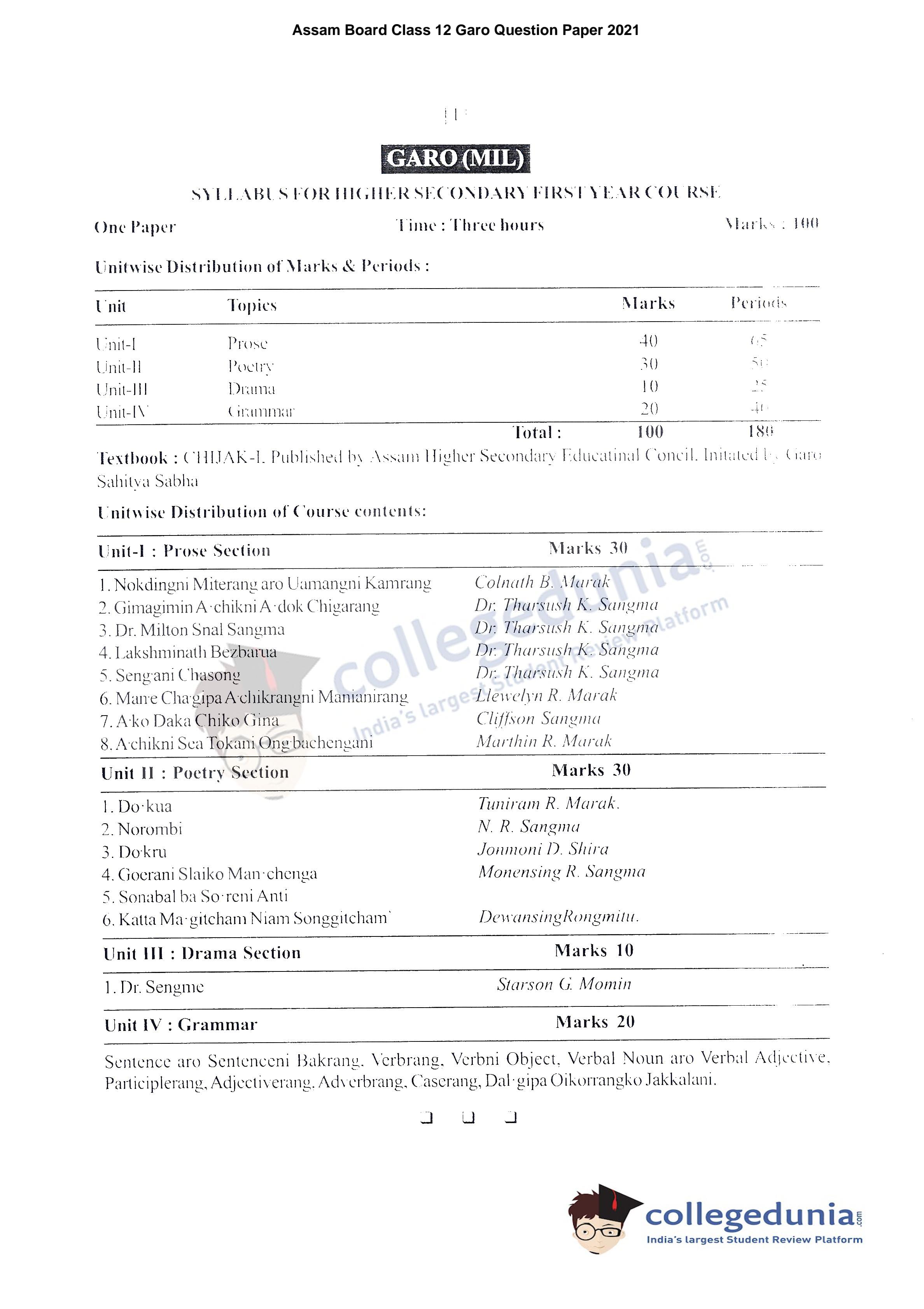 | Assam HS 2nd Year Garo Question Paper 2021 PDF | Assam HS 2nd Year Garo Answer Key 2021 PDF |