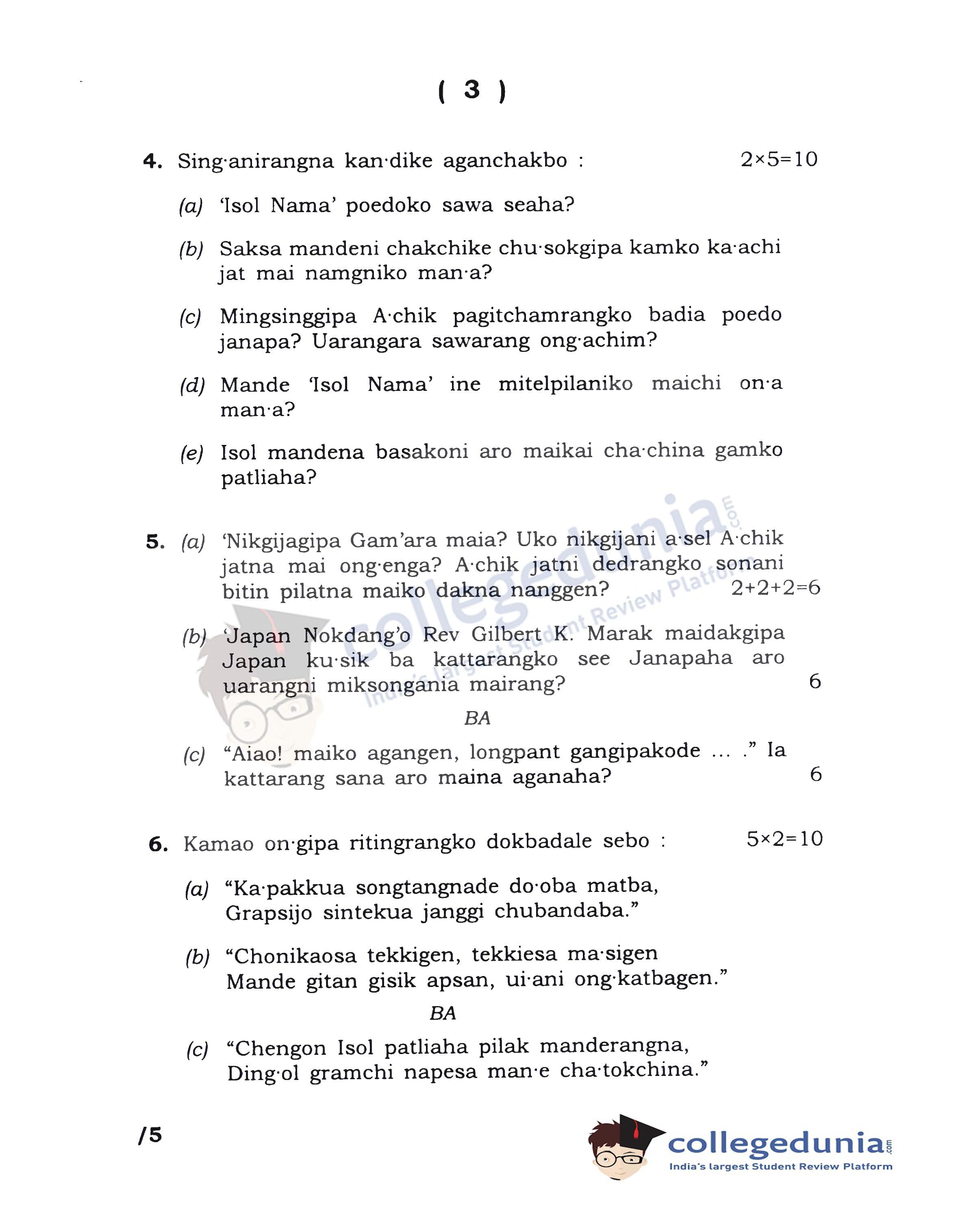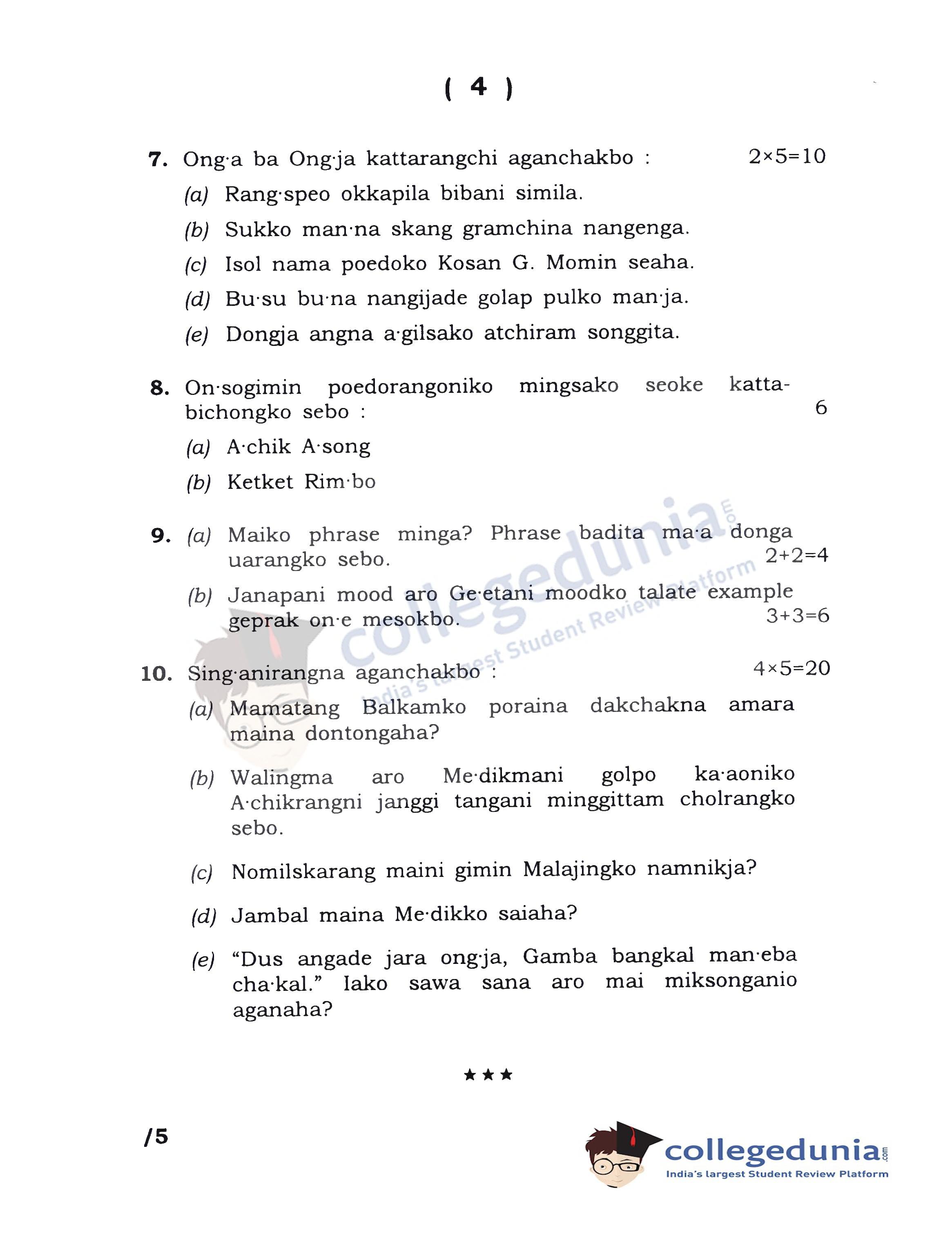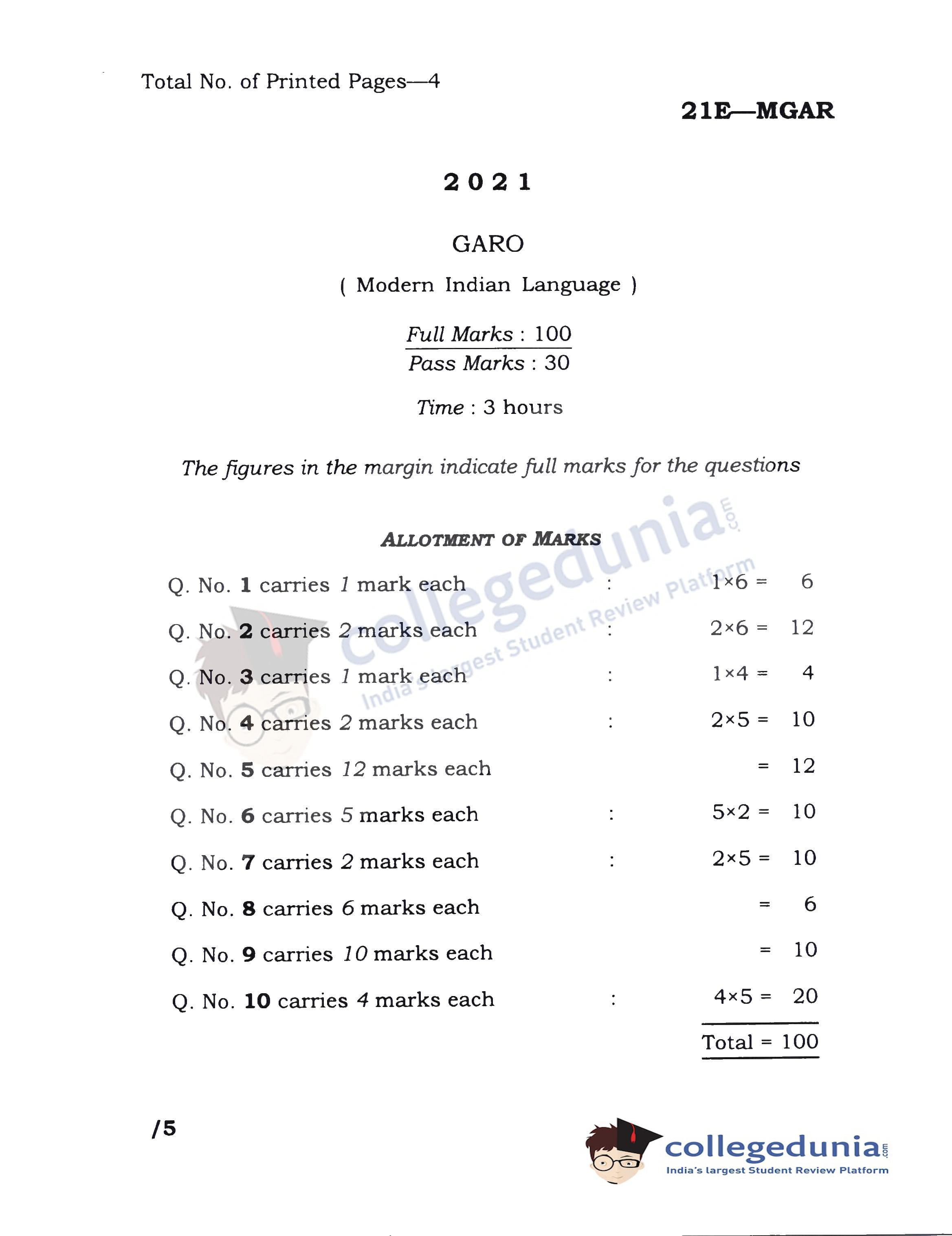 Assam HS 2nd Year Garo Question Paper 2021 with Answer Key is available for download. The exam was conducted by the Assam Higher Secondary Education Council (AHSEC). The medium of paper was Garo. The question paper comprised a total of 10 questions.