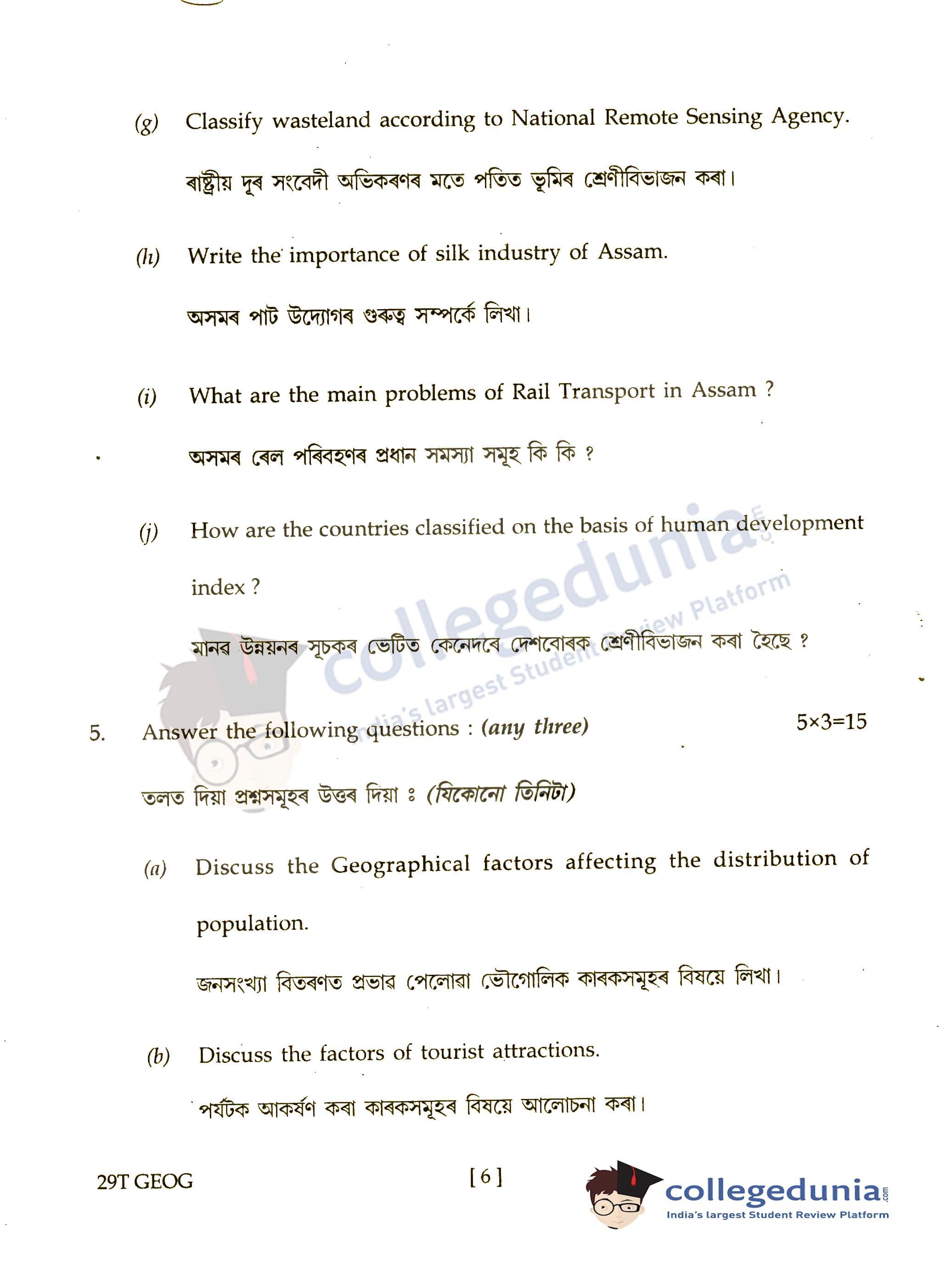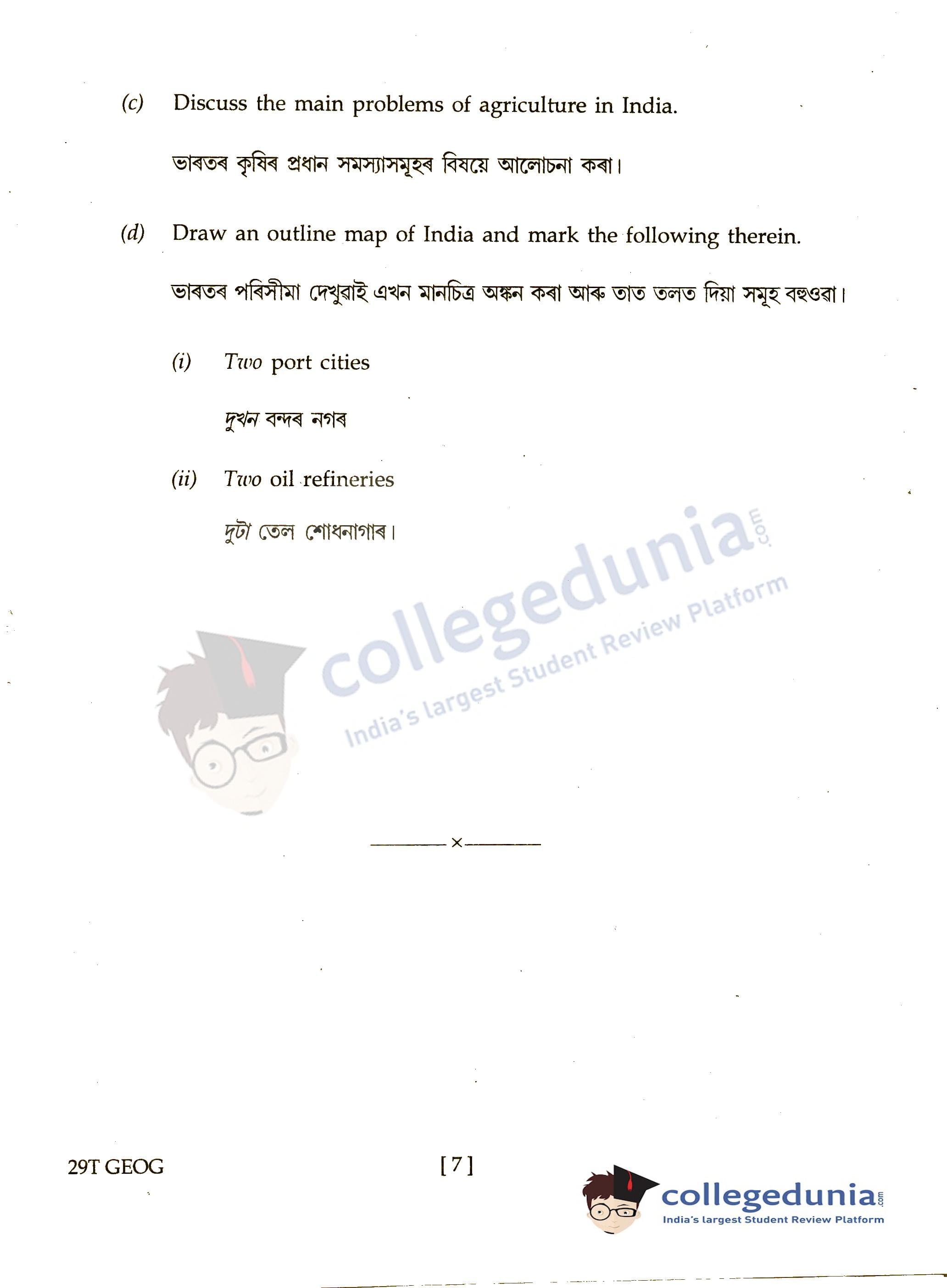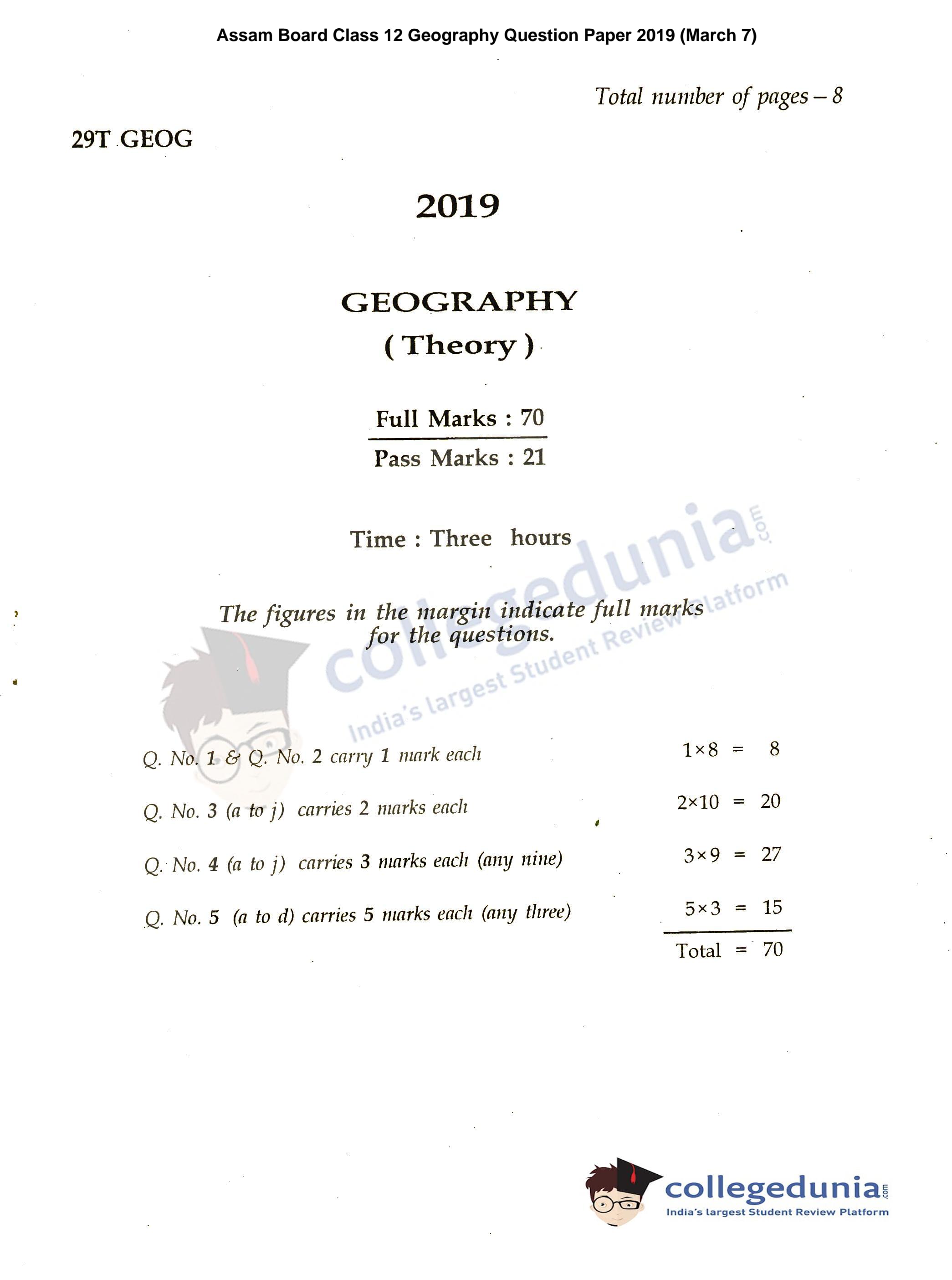 Assam HS 2nd Year Geography Question Paper 2019 with Answer Key (March 7)