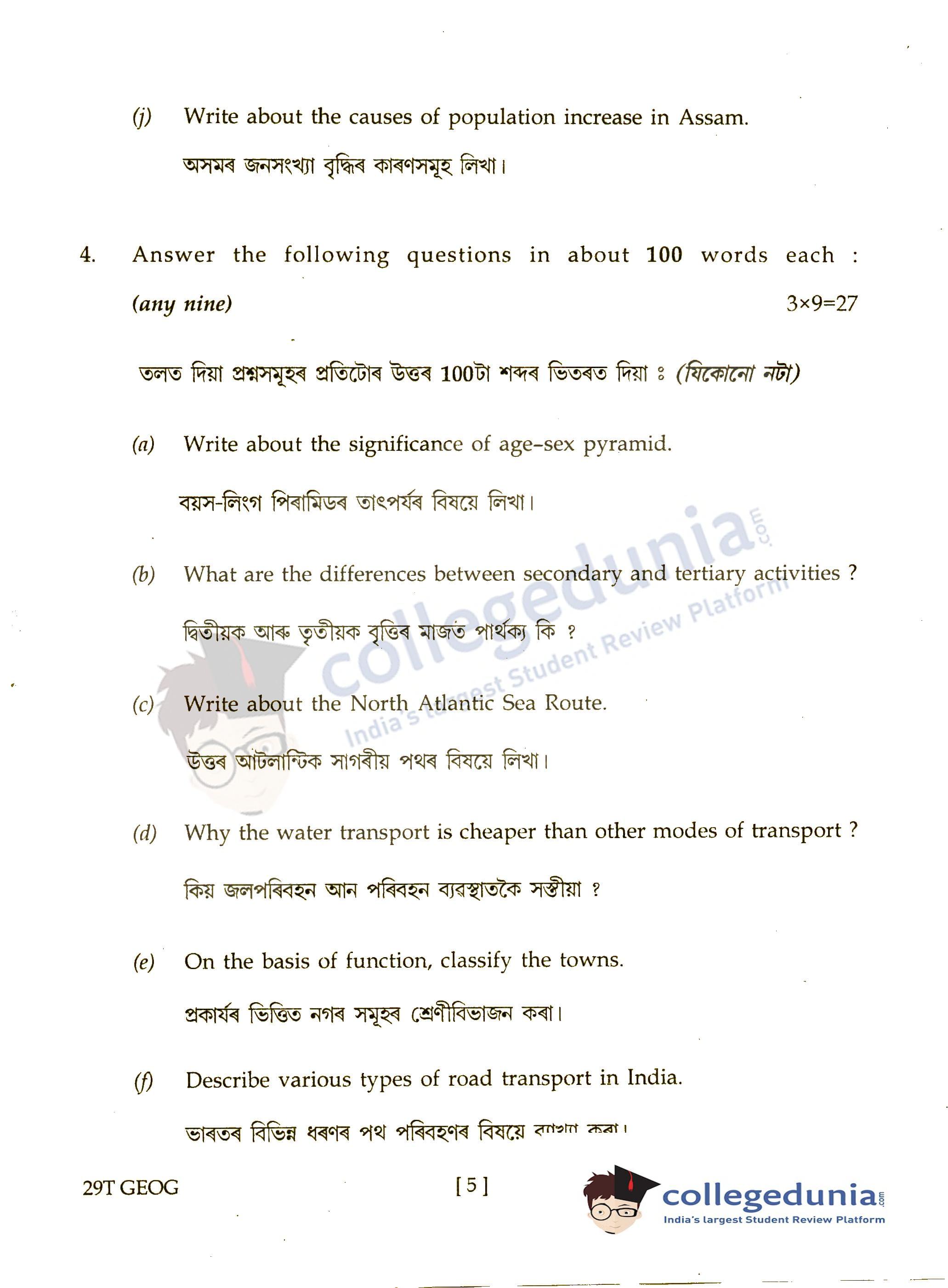 Assam HS 2nd Year Geography Question Paper 2019 with Answer Key is available for download. The exam was conducted by the Assam Higher Secondary Education Council (AHSEC) on March 7, 2019 in the Morning Session 9 AM to 12 PM. The medium of paper was English. The question paper comprised a total of 5 questions.