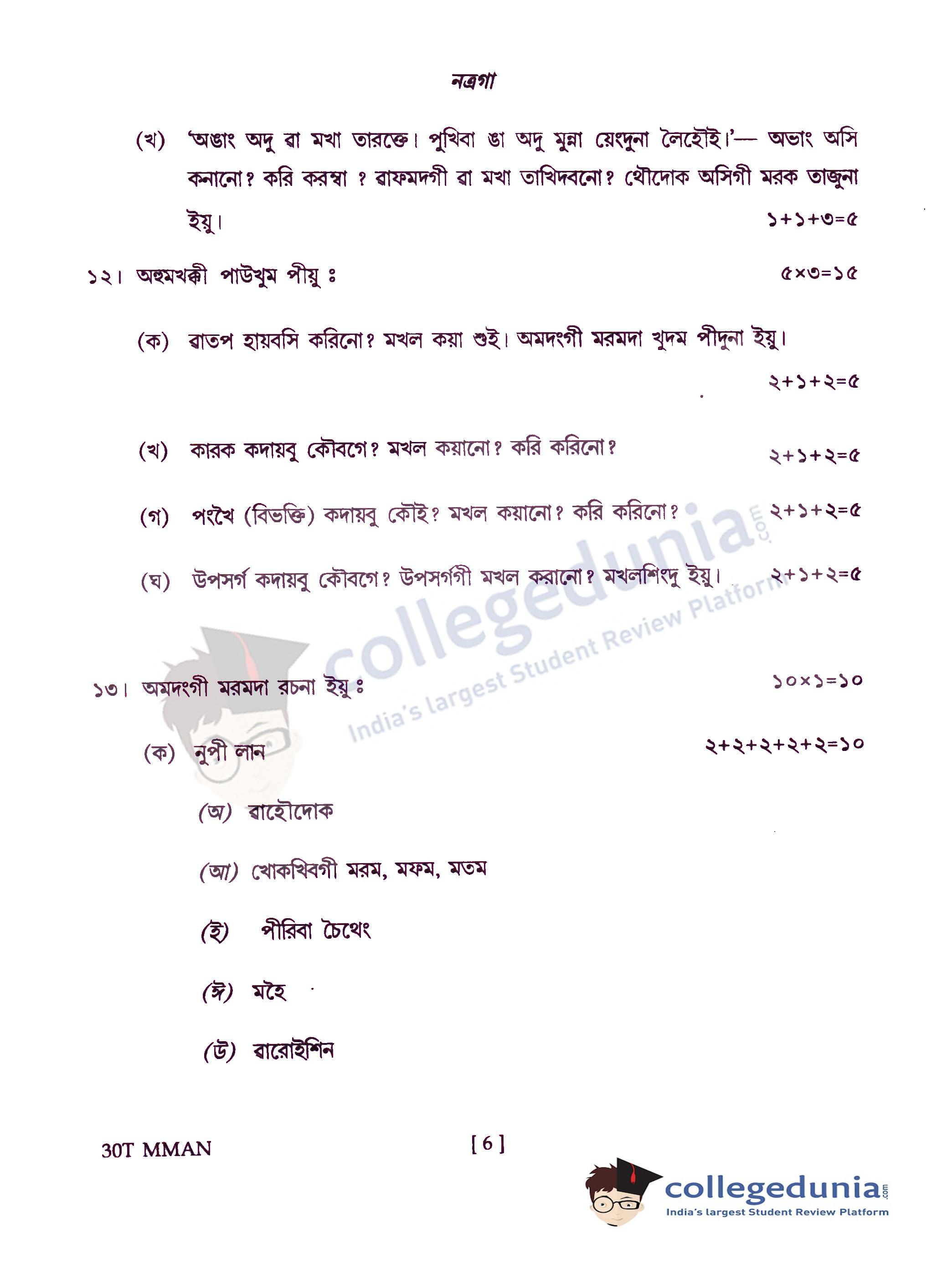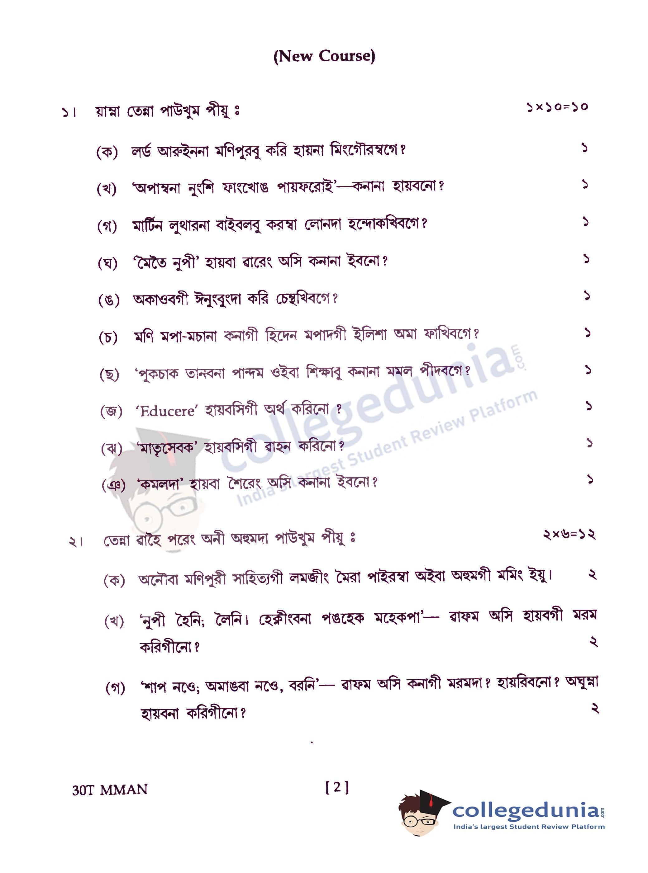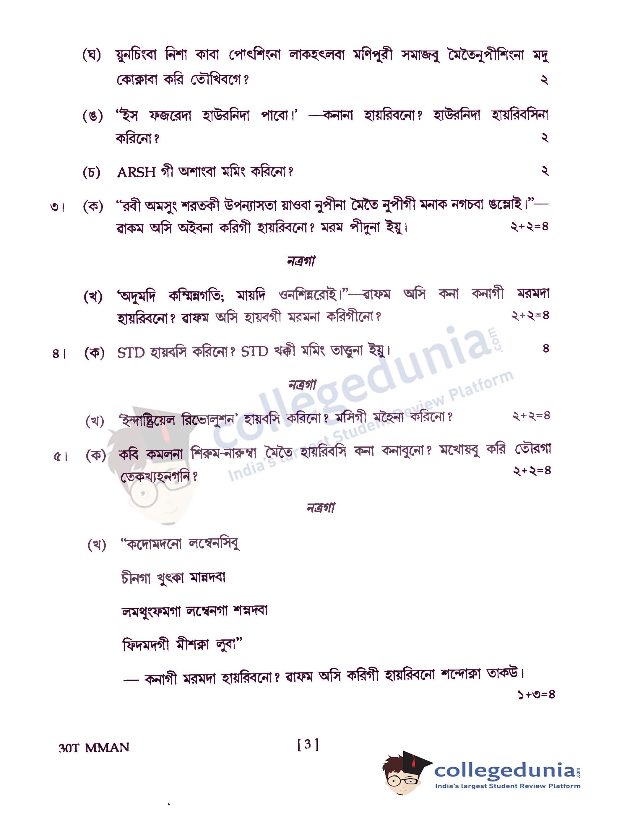 Assam HS 2nd Year Manipuri Question Paper 2020 with Answer Key is available for download. The exam was conducted by the Assam Higher Secondary Education Council (AHSEC) on February 24, 2020 in the Afternoon Session 1:30 PM to 4:30 PM. The medium of paper was Manipuri. The question paper comprised a total of 13 questions.