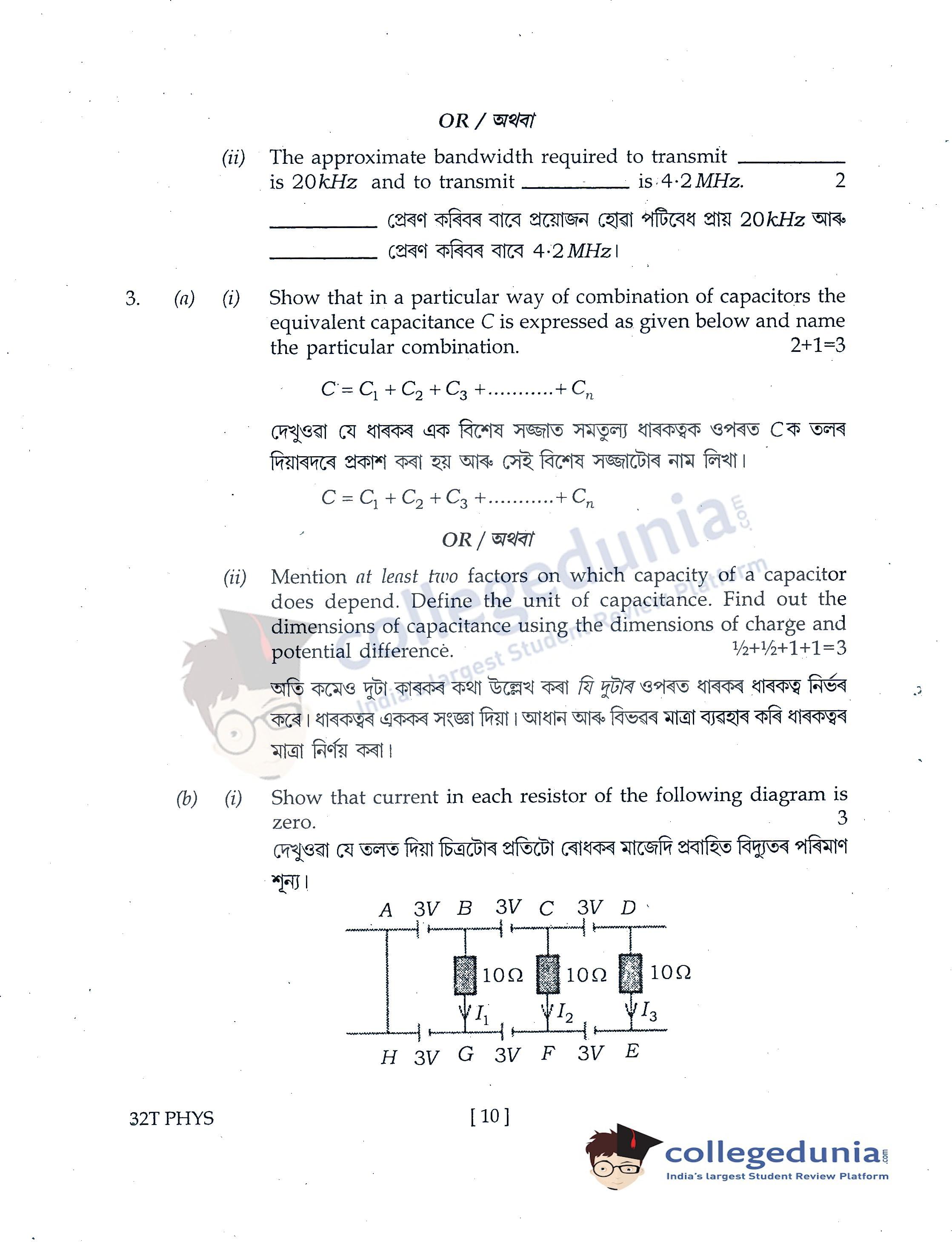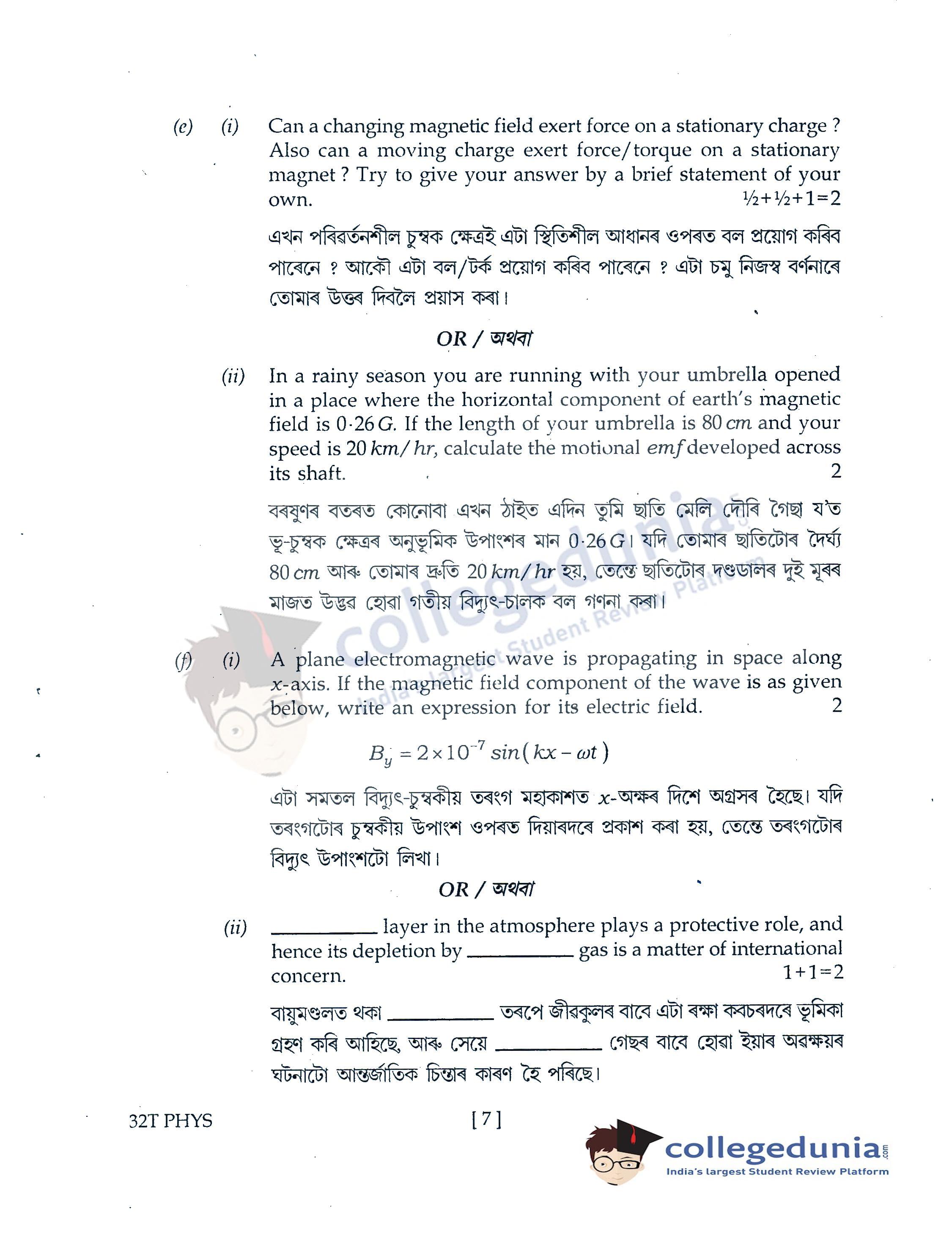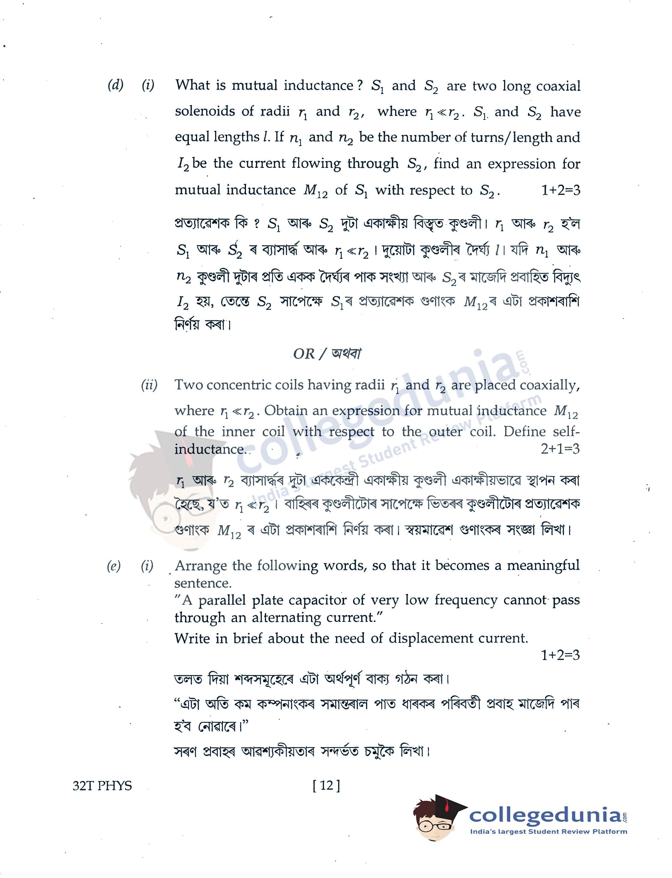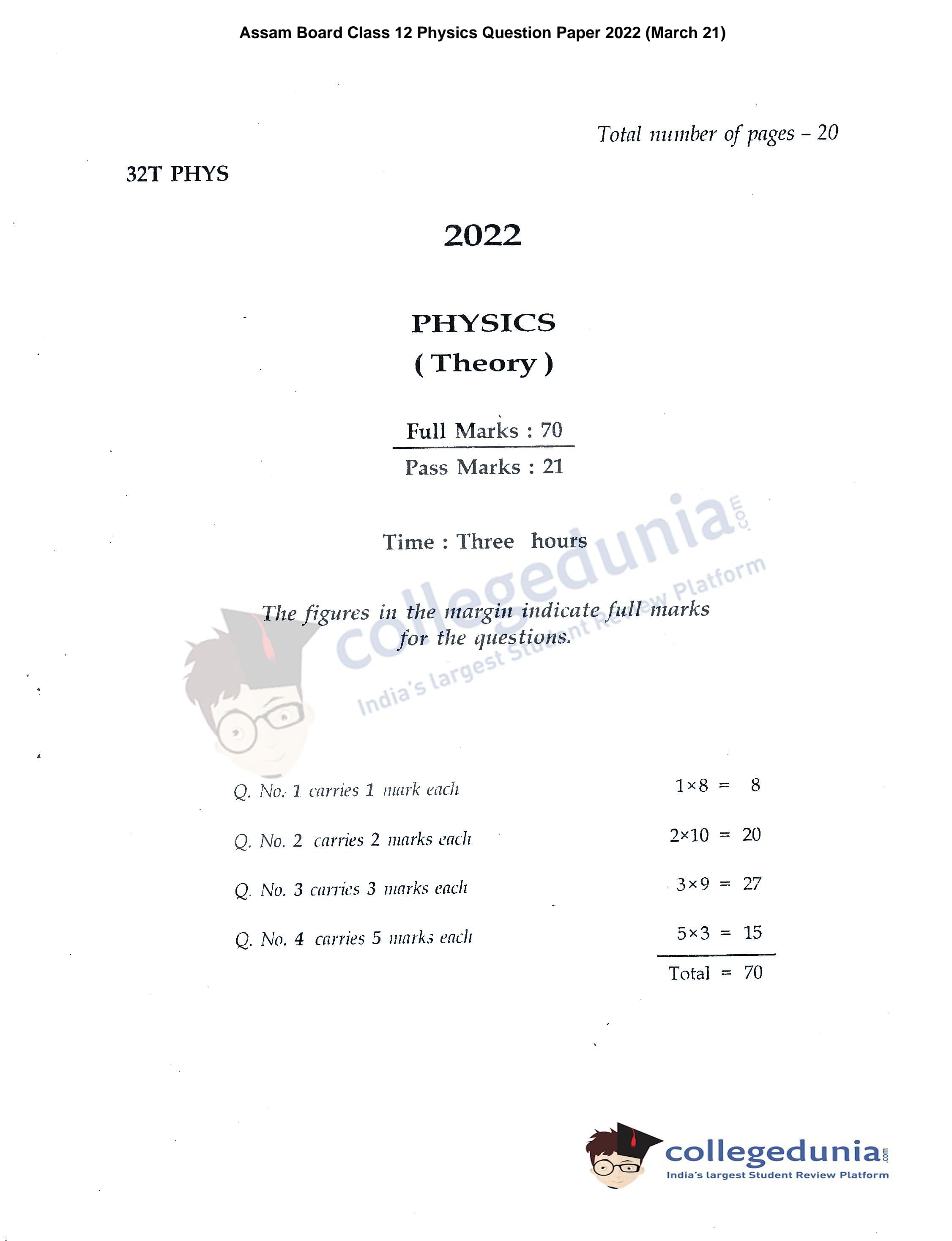 Assam HS 2nd Year Physics Question Paper 2022 with Answer Key (March 21)