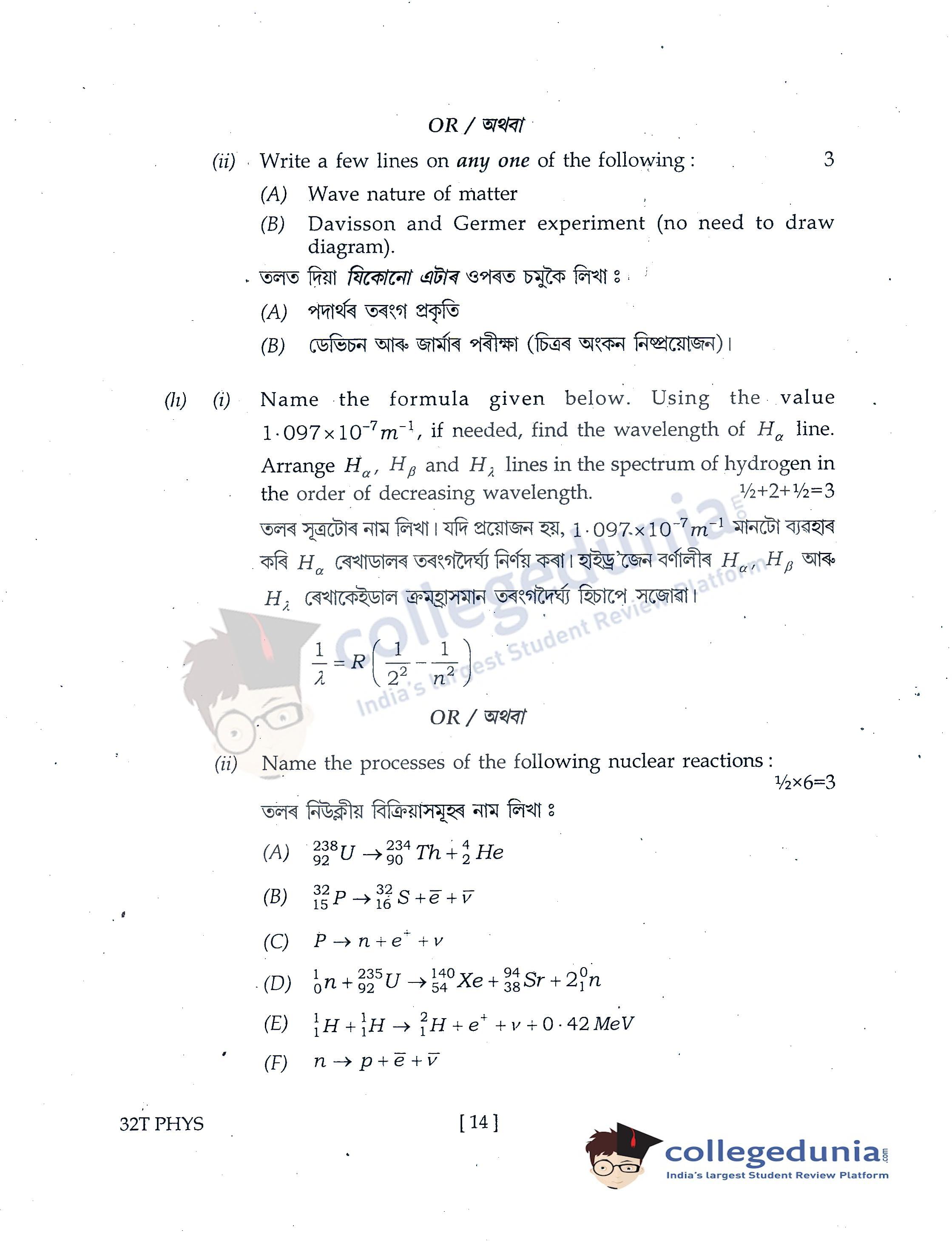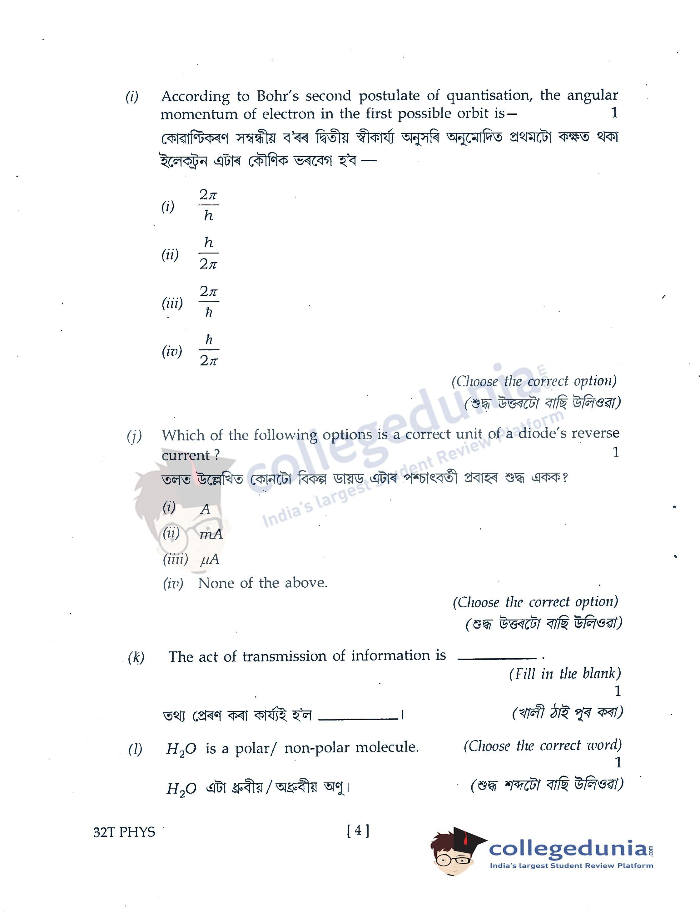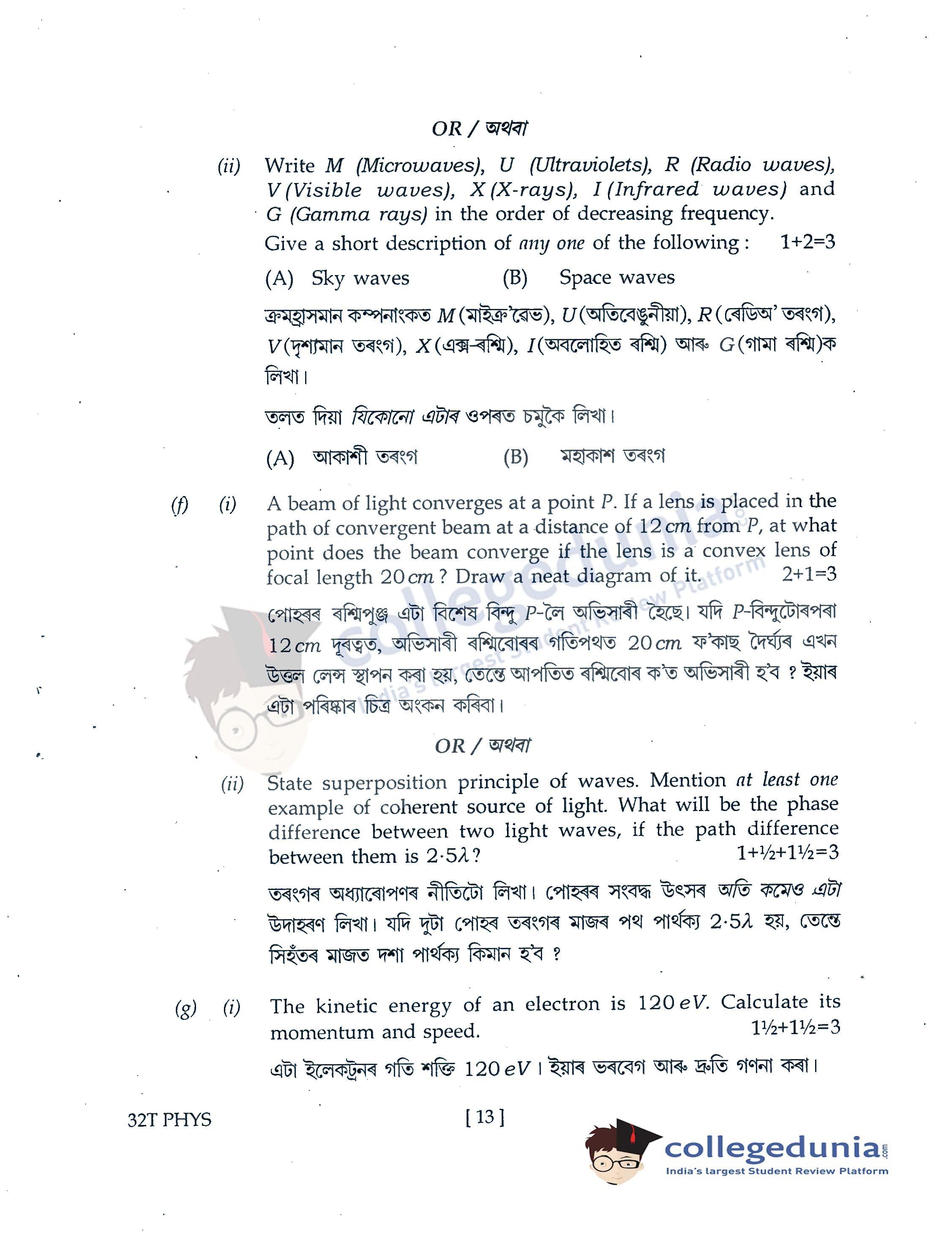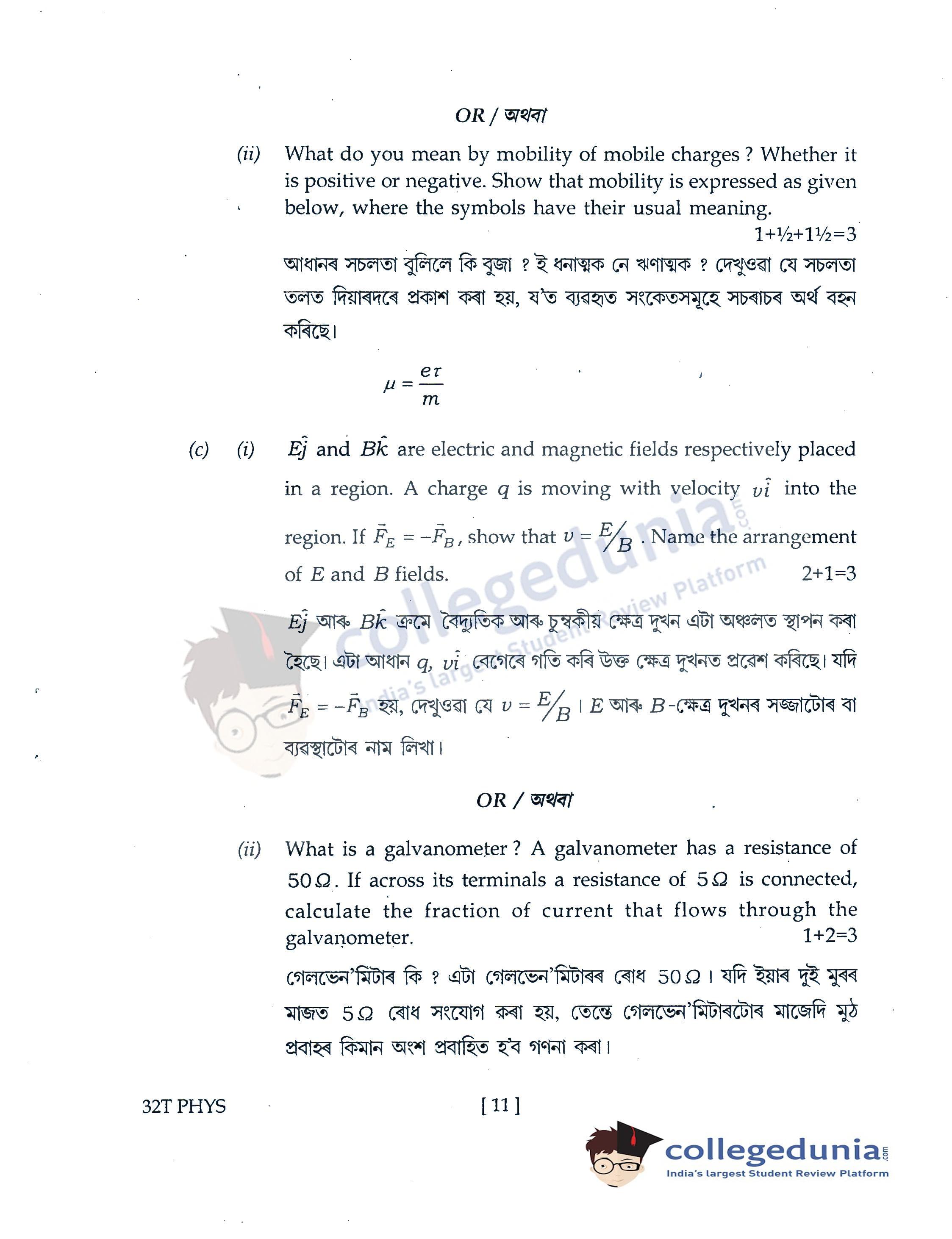 Assam HS 2nd Year Physics Question Paper 2022 with Answer Key (March 21)