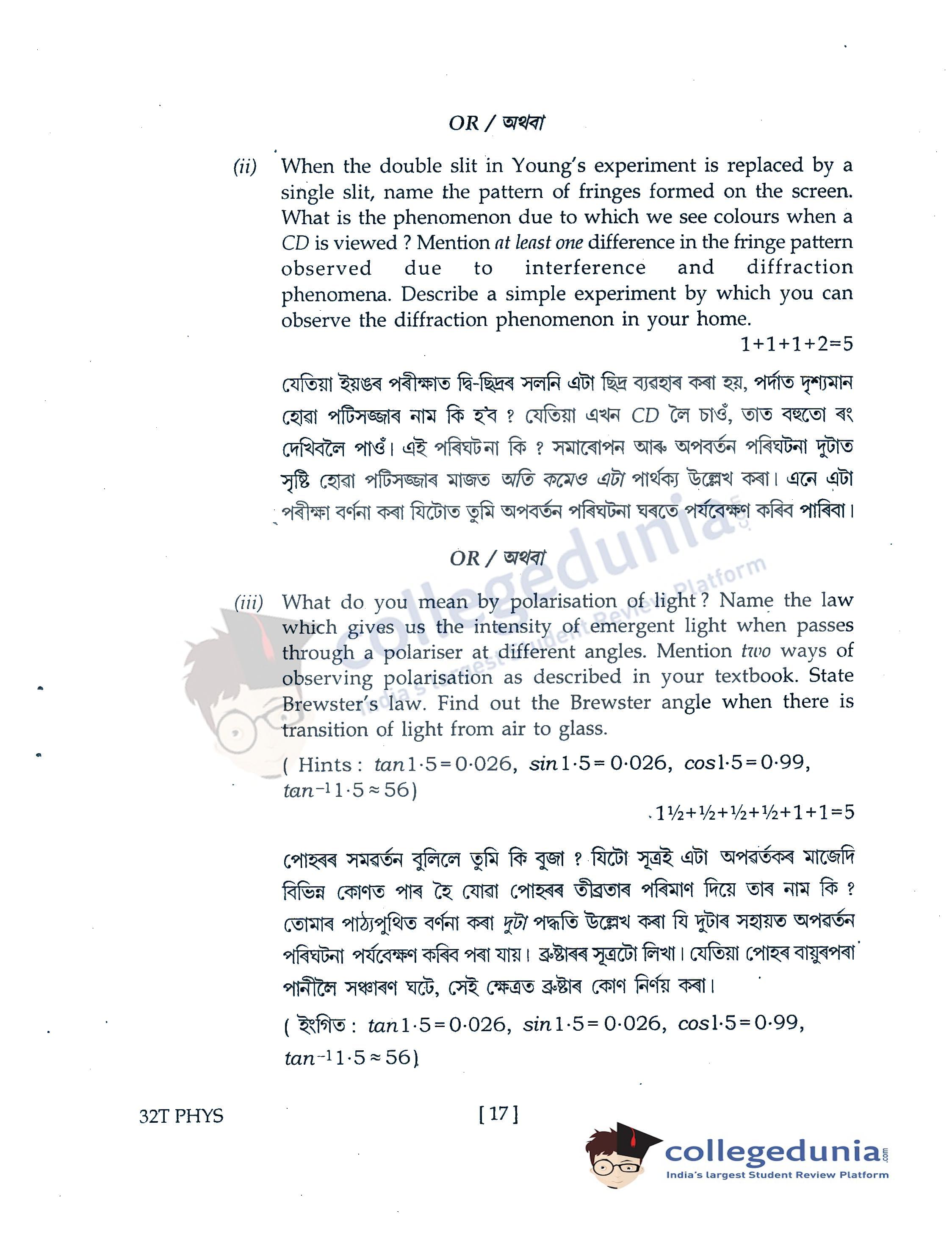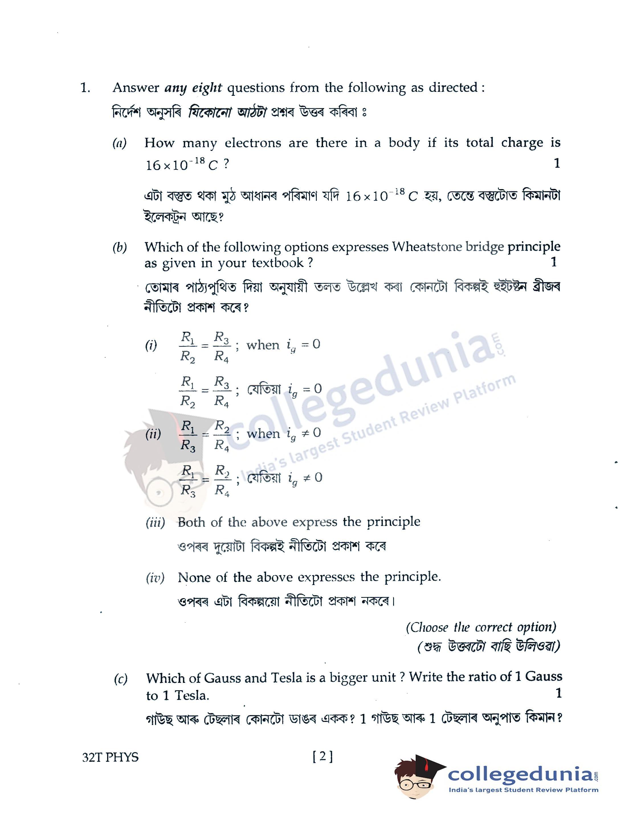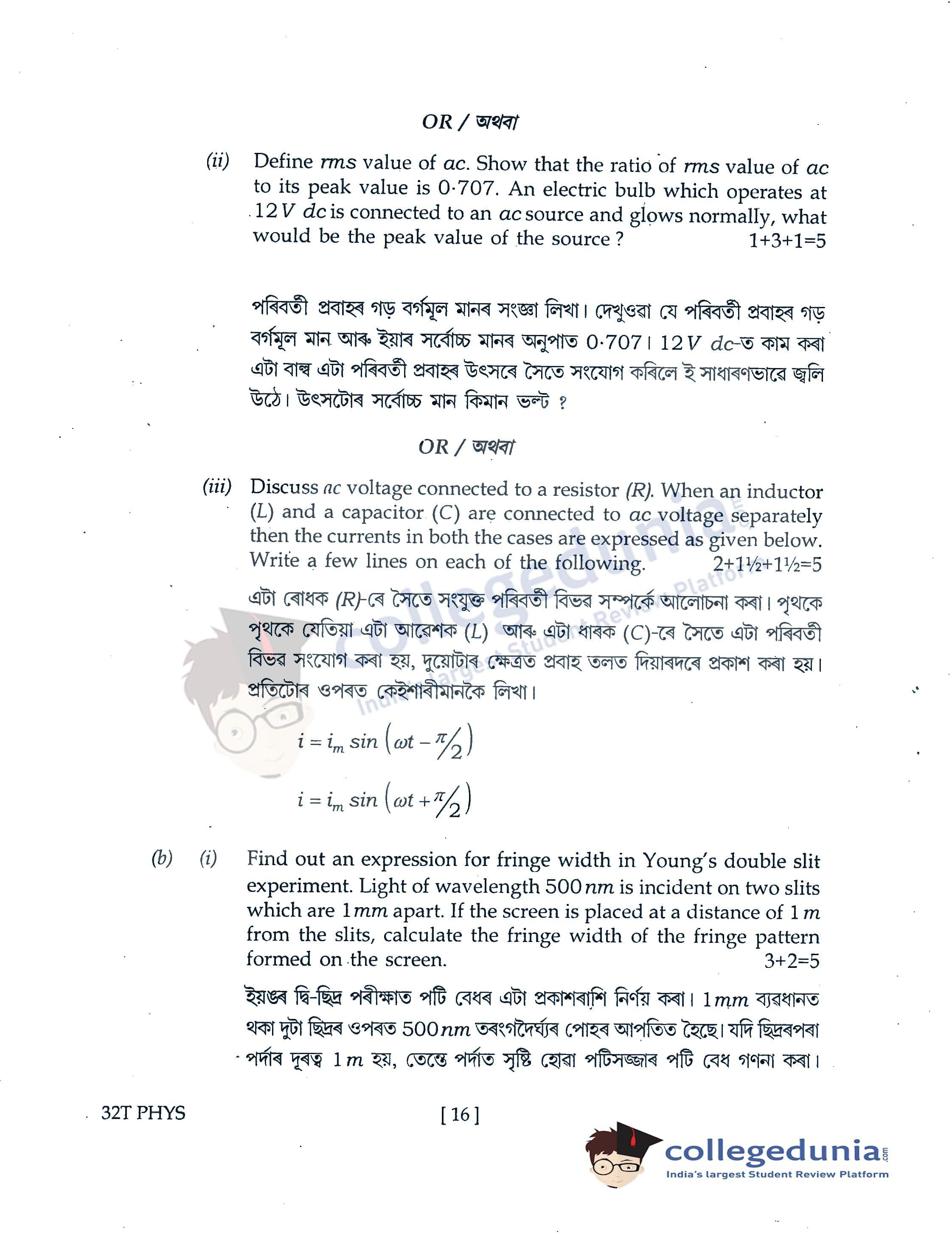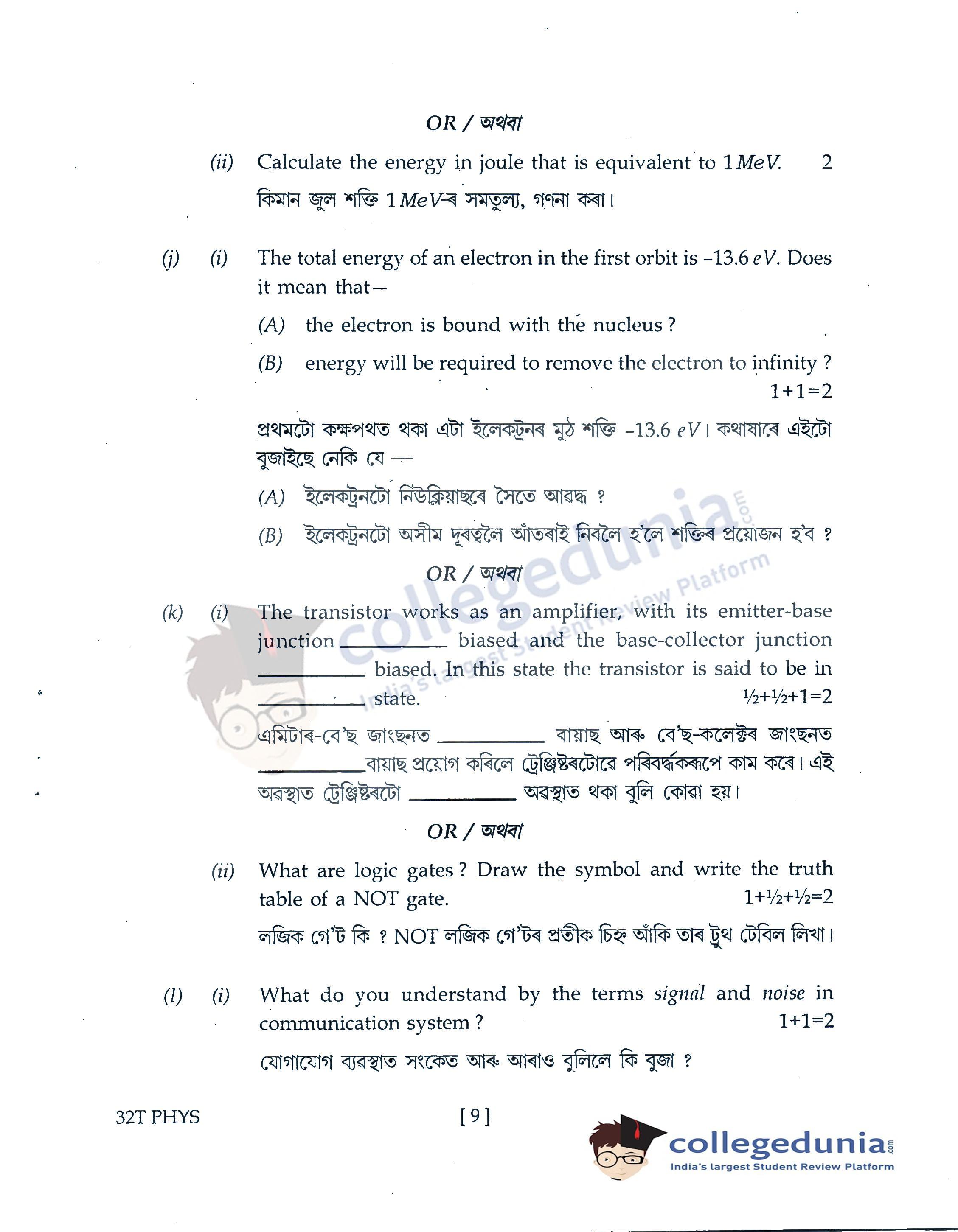 Assam HS 2nd Year Physics Question Paper 2022 with Answer Key (March 21)