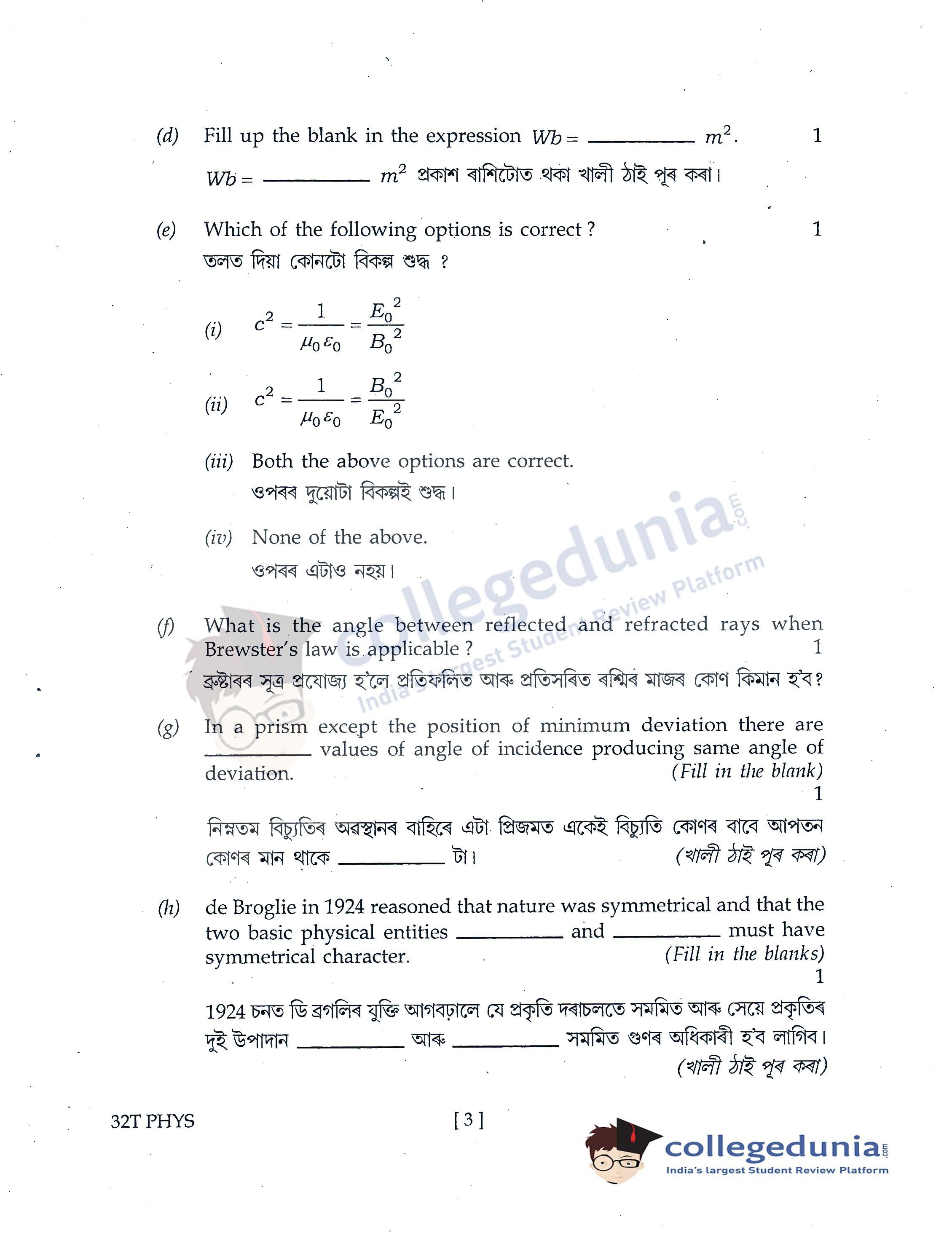 Assam HS 2nd Year Physics Question Paper 2022 with Answer Key is available for download. The exam was conducted by the Assam Higher Secondary Education Council (AHSEC) on March 21, 2022 in the Afternoon Session 1:30 PM to 4:30 PM. The medium of paper was English. The question paper comprised a total of 4 questions.