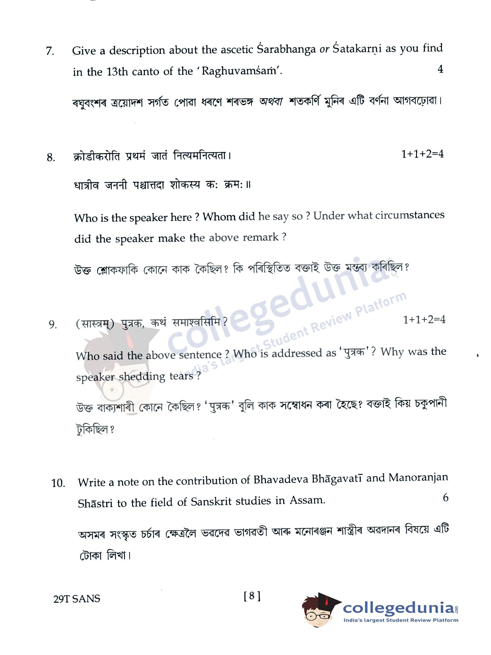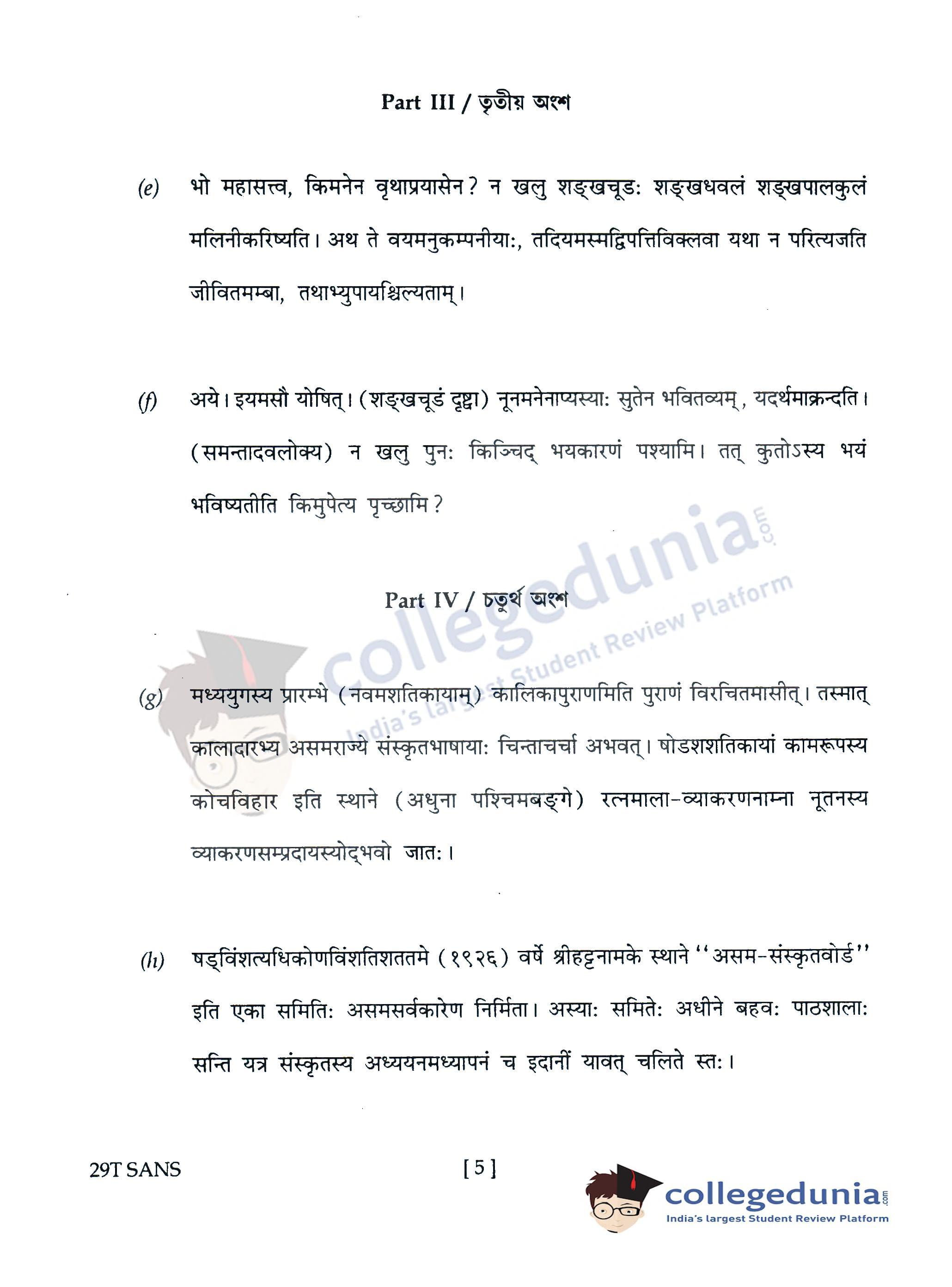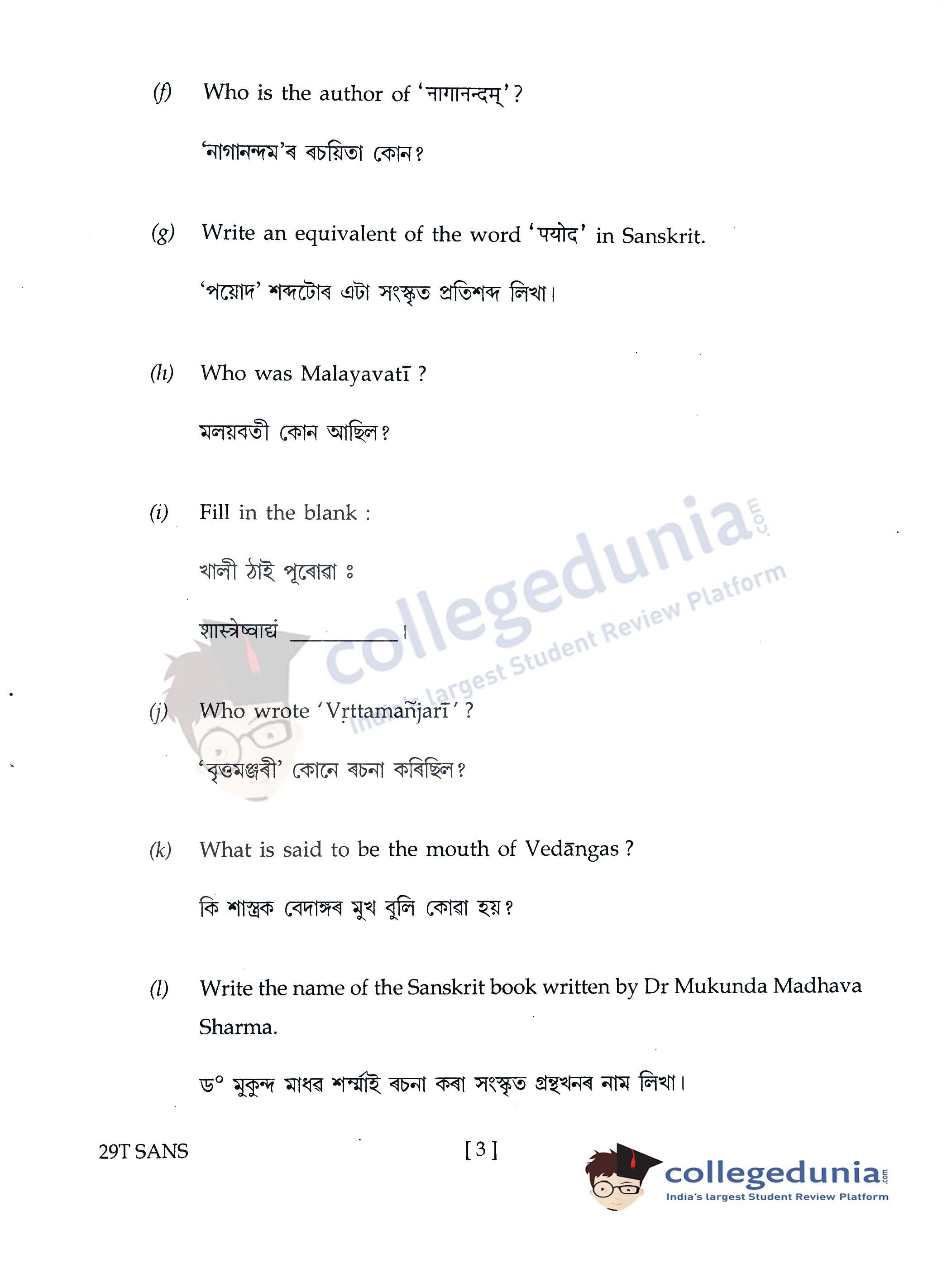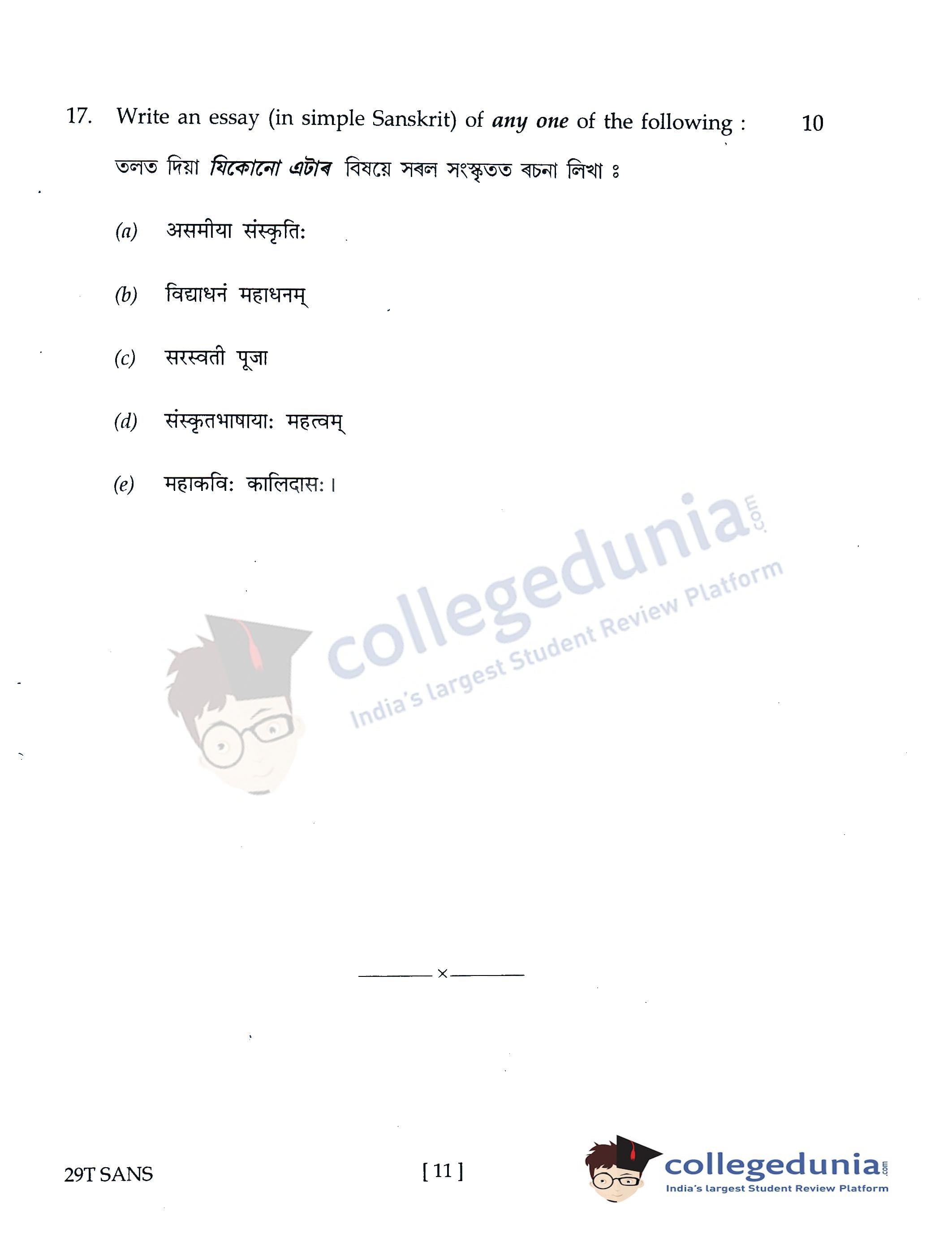 Assam HS 2nd Year Sanskrit Question Paper 2019 with Answer Key (February 16)