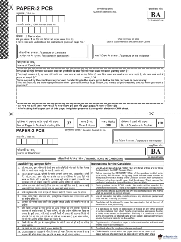UPCET 2016 PAPER 2 PCB Question paper with answer key pdf conducted on April 17, 2016 for Code BA is available for download. The exam was successfully organized by Dr. APJ Abdul Kalam Technical University, Uttar Pradesh (AKTU). The question paper comprised a total of 150 questions divided among three sections.
