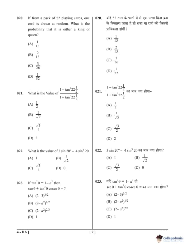 UPCET 2016 PAPER 4 Question Paper with Answer Key PDFs