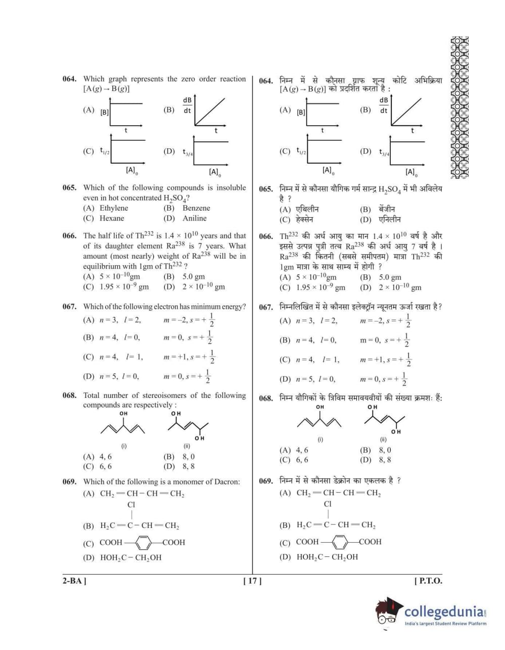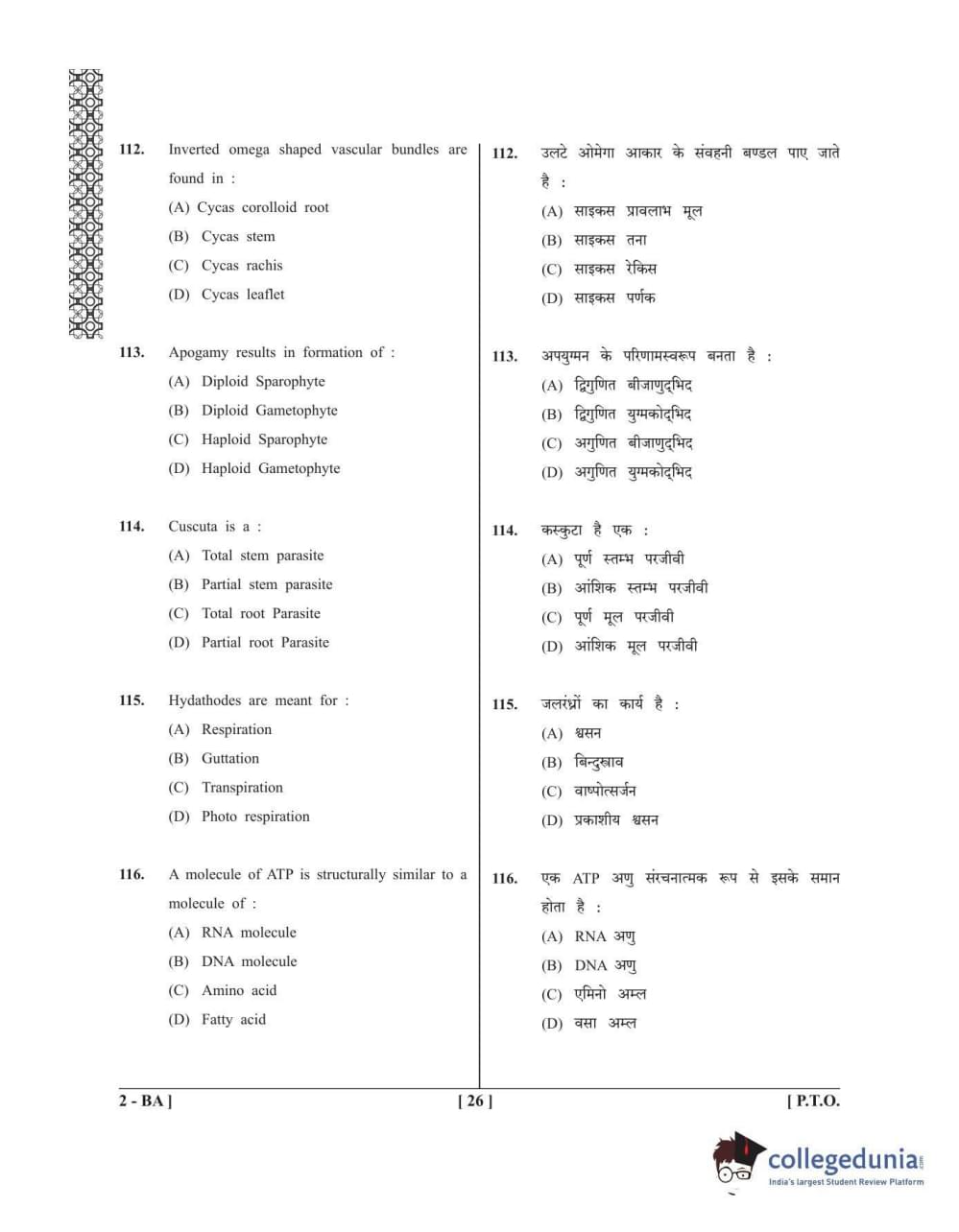 UPCET 2017 PAPER 2 PCB Question paper with answer key pdf conducted on April 26, 2017 for Code BA is available for download. The exam was successfully organized by Dr. APJ Abdul Kalam Technical University, Uttar Pradesh (AKTU). The question paper comprised a total of 150 questions divided among three sections.