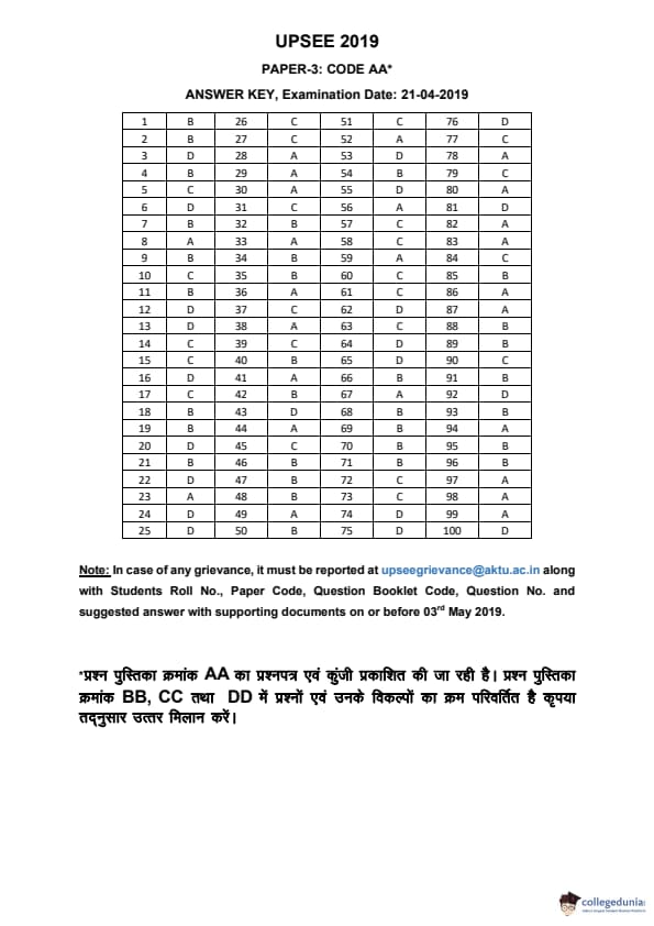 UPCET 2019 PAPER 3 Question paper with answer key pdf conducted on April 21, 2019 for Code AA is available for download. The exam was successfully organized by Dr. APJ Abdul Kalam Technical University, Uttar Pradesh (AKTU). The question paper comprised a total of 100 questions.