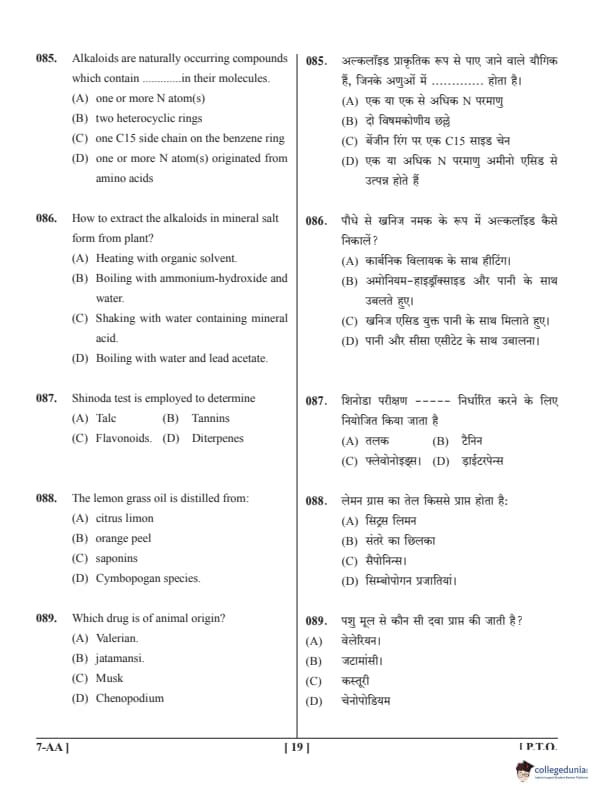 UPCET 2019 PAPER 7 Question Paper with Answer Key PDFs