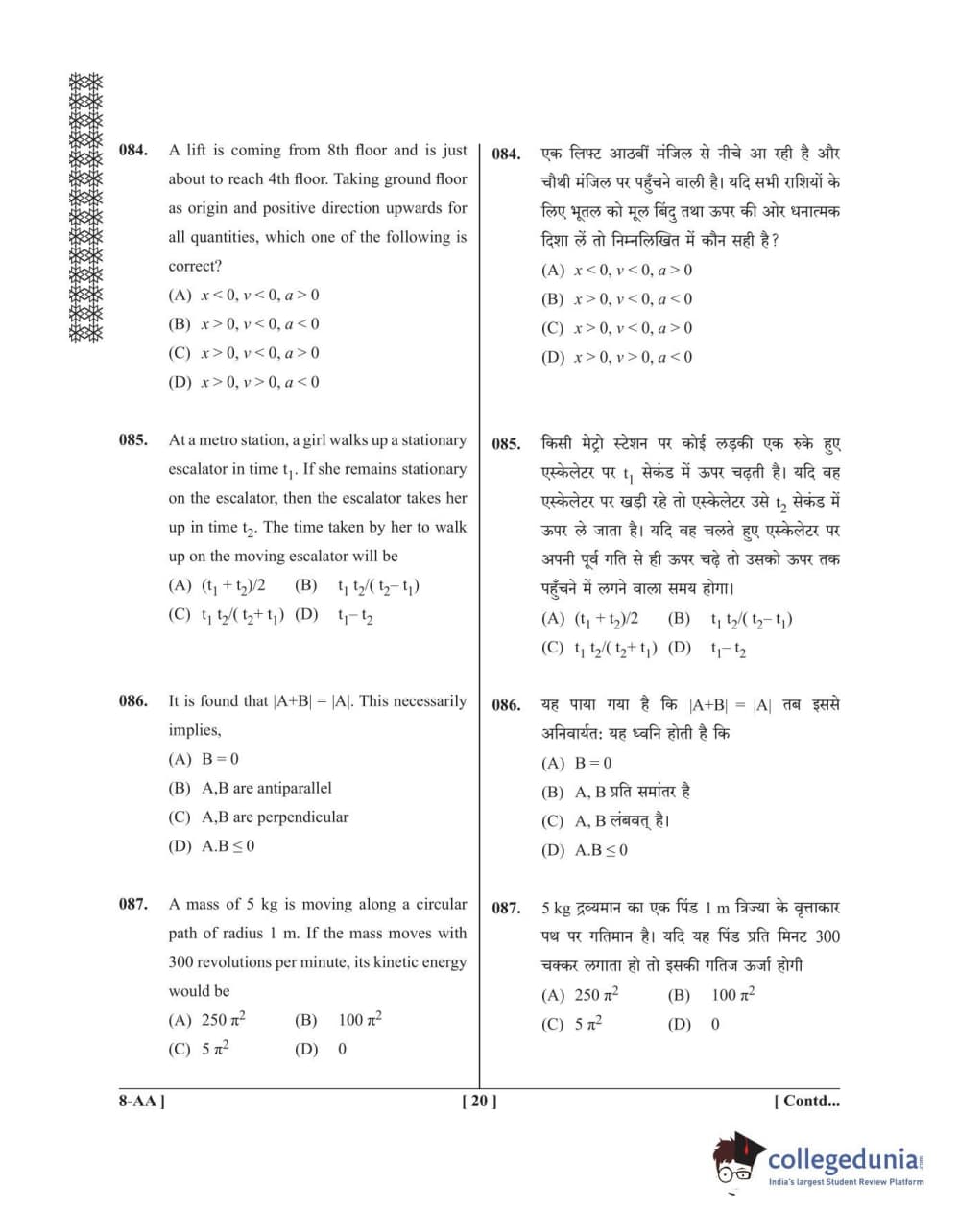 UPCET 2020 PAPER 8 Question paper with answer key pdf conducted on September 20, 2020 for Code AA is available for download. The exam was successfully organized by Dr. APJ Abdul Kalam Technical University, Uttar Pradesh (AKTU). The question paper comprised a total of 100 questions.