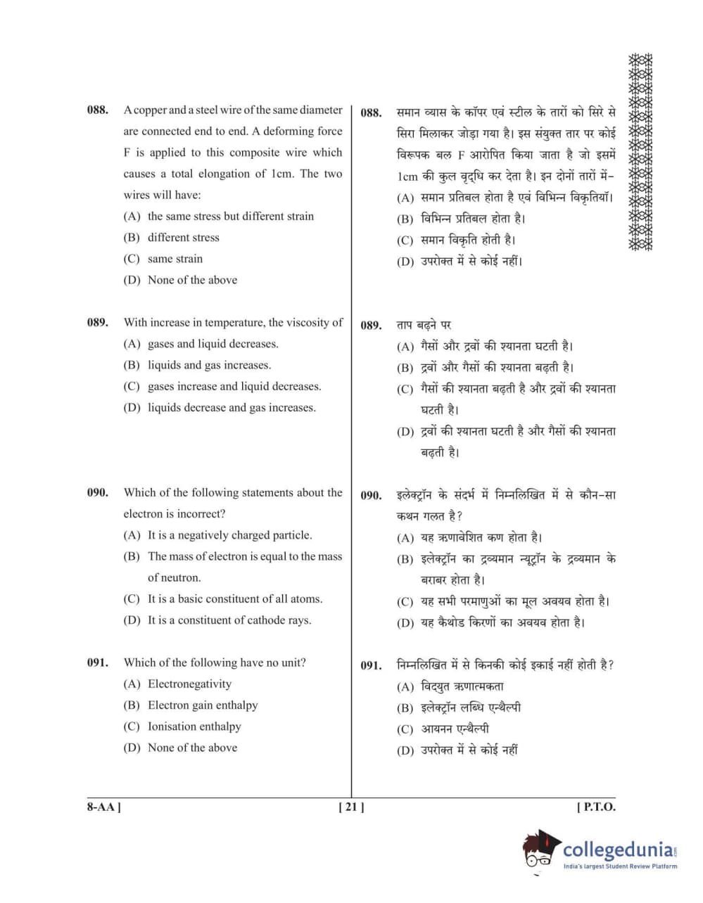 UPCET 2020 PAPER 8 Question Paper with Answer Key PDFs