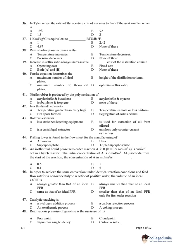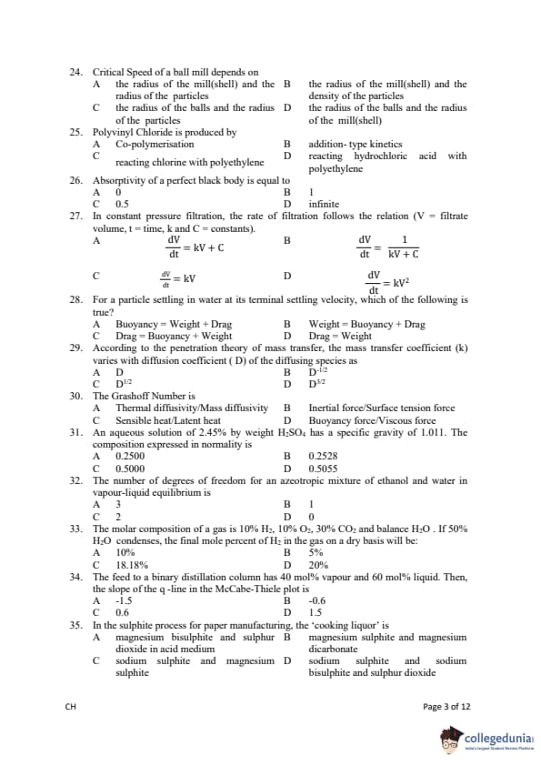 Gujarat PGECET 2019 CHEMICAL ENGINEERING (CH) Question Paper with Answer Key PDFs