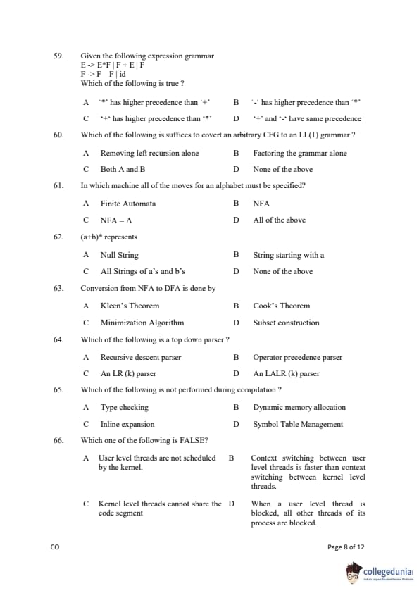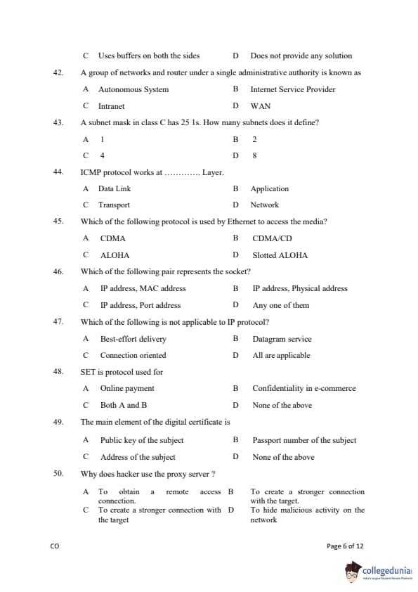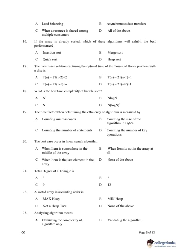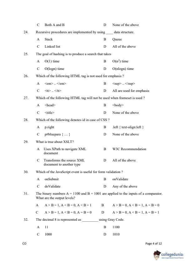 Gujarat PGECET 2019 COMPUTER ENGINEERING (CO) Question Paper with Answer Key PDFs