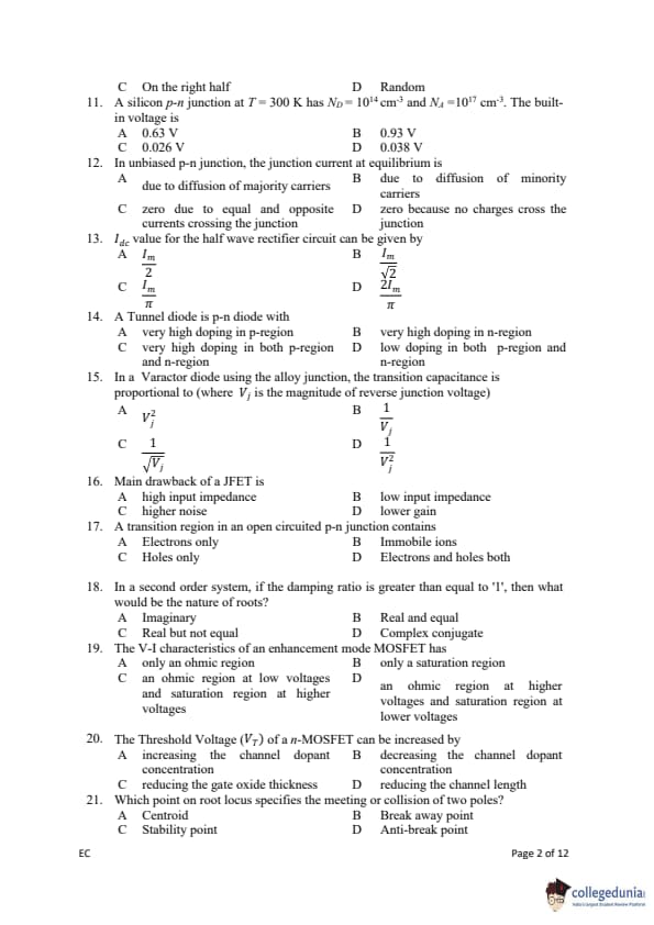 Gujarat PGECET 2019 ELECTRONICS & COMMUNICATION ENGINEERING (EC) Question Paper with Answer Key PDFs