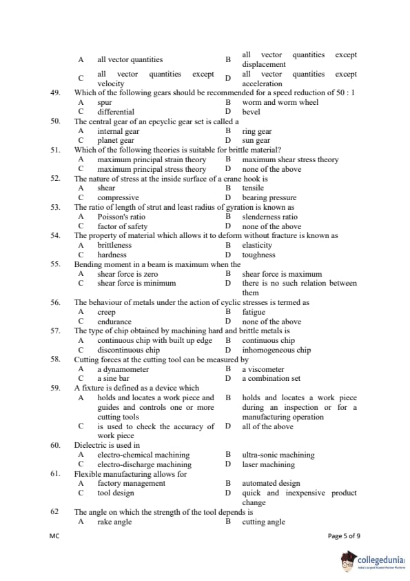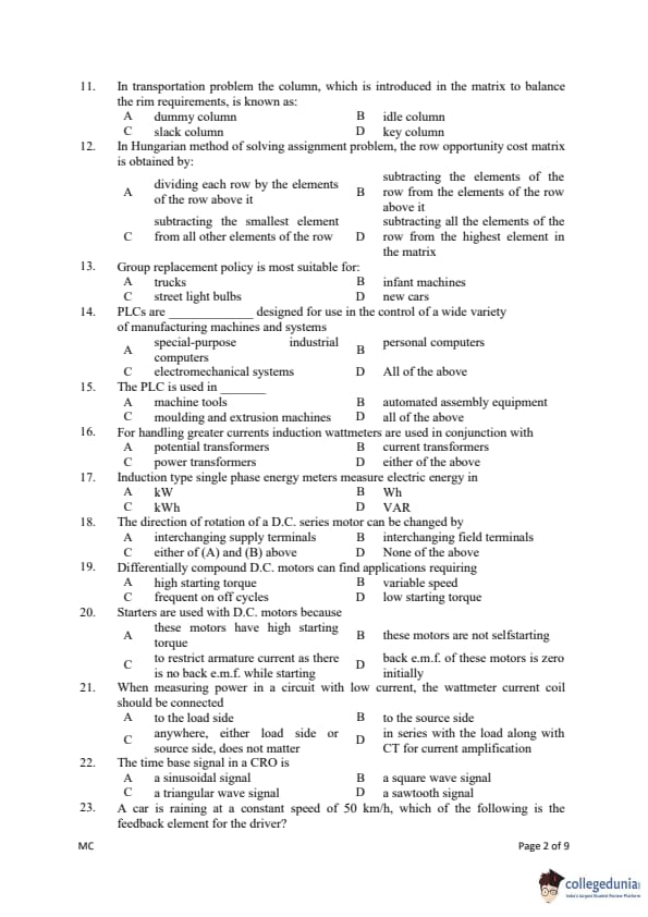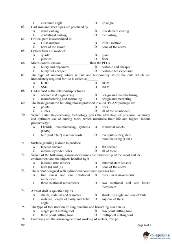 Gujarat PGECET 2019 MECHATRONICS (MC) Question paper with answer key pdf conducted on July 14, 2019 is available for download. The exam was successfully organized by Admission Committee for Professional Courses (ACPC). The question paper comprised a total of 100 questions.