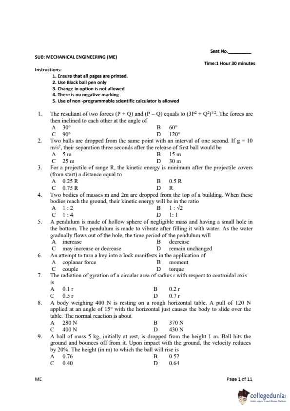 | Gujarat PGECET 2019 ME Question Paper PDF | Gujarat PGECET 2019 ME Answer Key PDF |