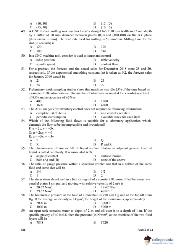 Gujarat PGECET 2019 MECHANICAL ENGINEERING (ME) Question Paper with Answer Key PDFs