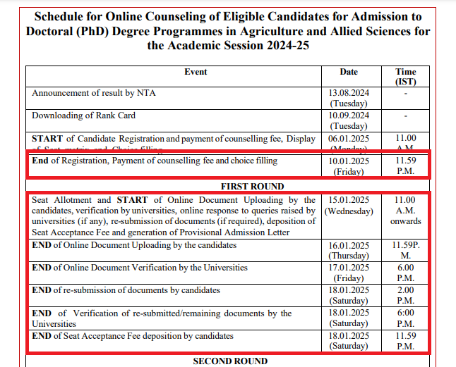 ICAR PG/PhD Counselling 2024-25 Schedule