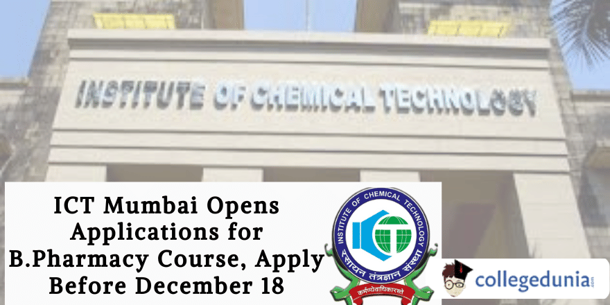 The Institute of Chemical Technology is now accepting applications from applicants for its B.Pharmacy program. Candidates who meet the requirements may apply by completing the Google form below and sending a demand draft to the Institute of Chemical Technology, Mumbai by December 18, 2024, with the appropriate fee paid according to their category.