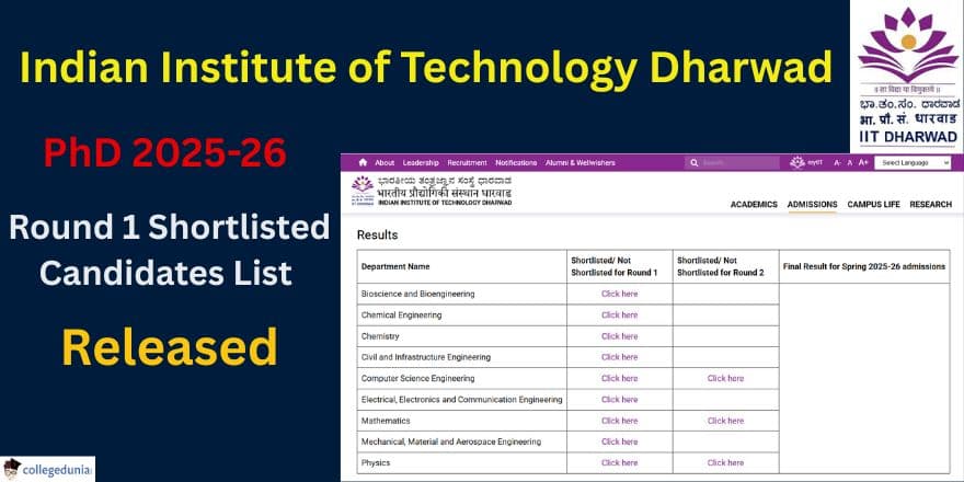 The Indian Institute of Technology (IIT) Dharwad has released the list of both shortlisted and not shortlisted candidates for rounds 1 and 2 of the PhD programs. Candidates can download the list at the official website of IIT Dharwad (iitdh.ac.in).