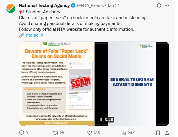 - The NTA will conduct JEE Main 2026 Paper 2A/2B tomorrow, for B.Arch and B.Planning.