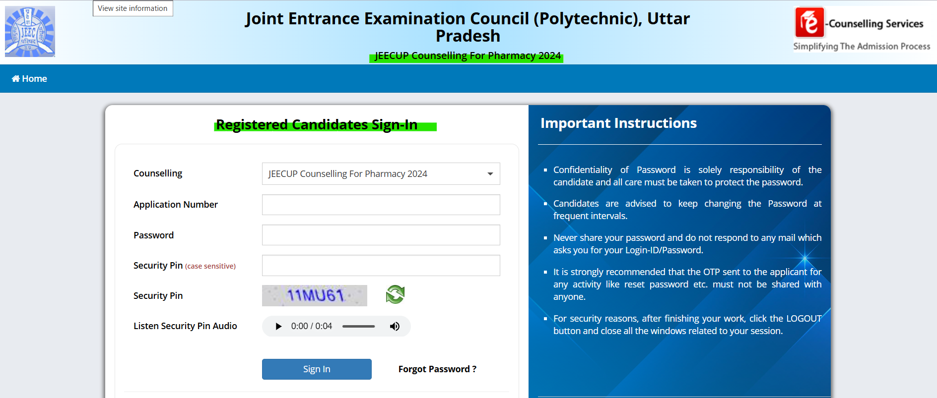 - Login: Visit the official JEECUP counselling portal and log in using your credentials.
