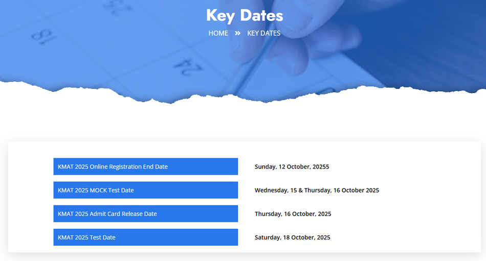 KMAT 2025 Exam Date | October 18, 2025 | Saturday |