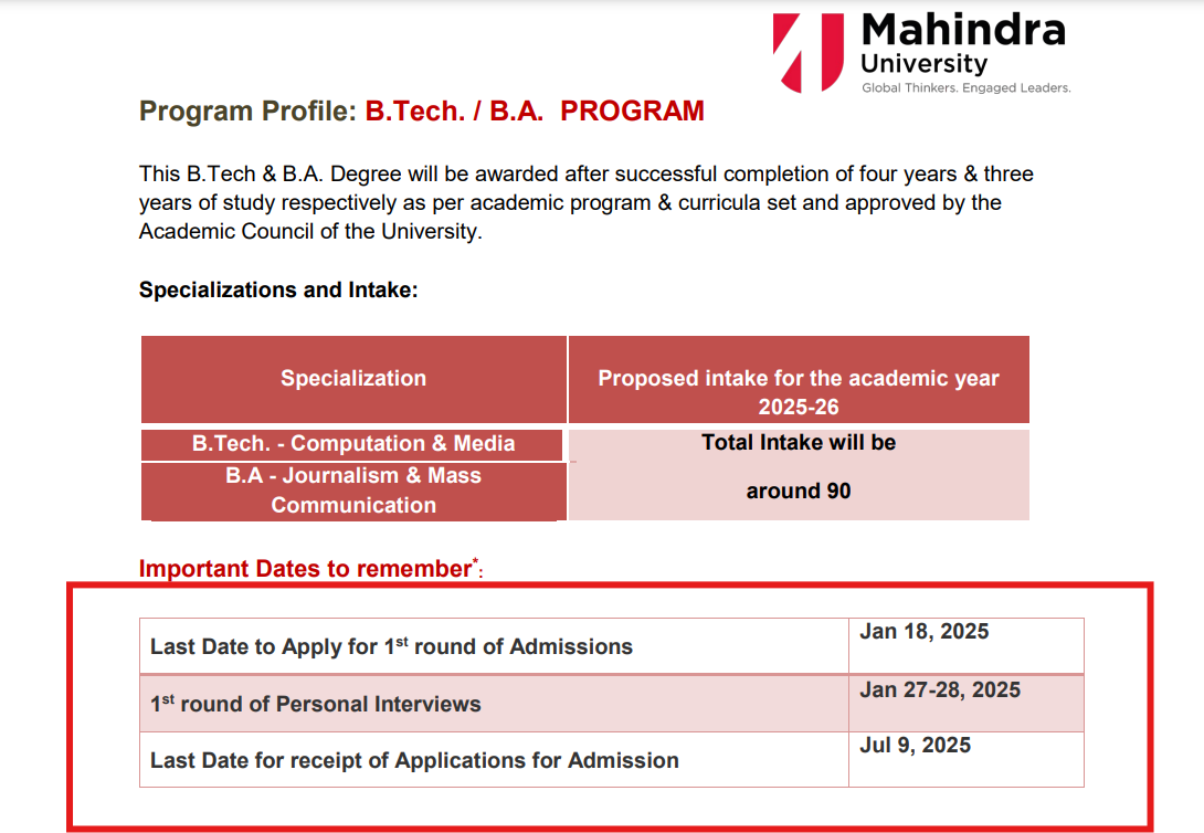 For more information, candidates can visit the official website: @mahindrauniversity.edu.in.